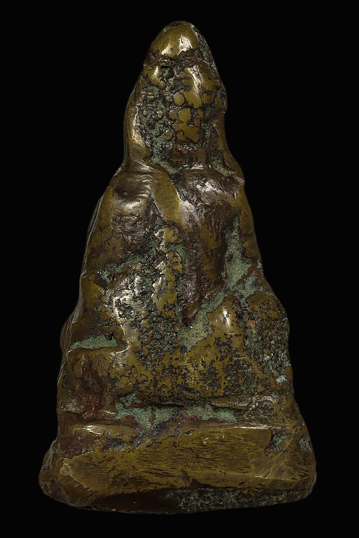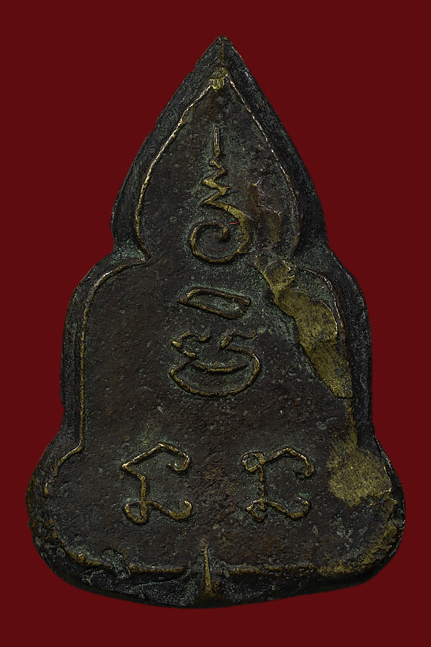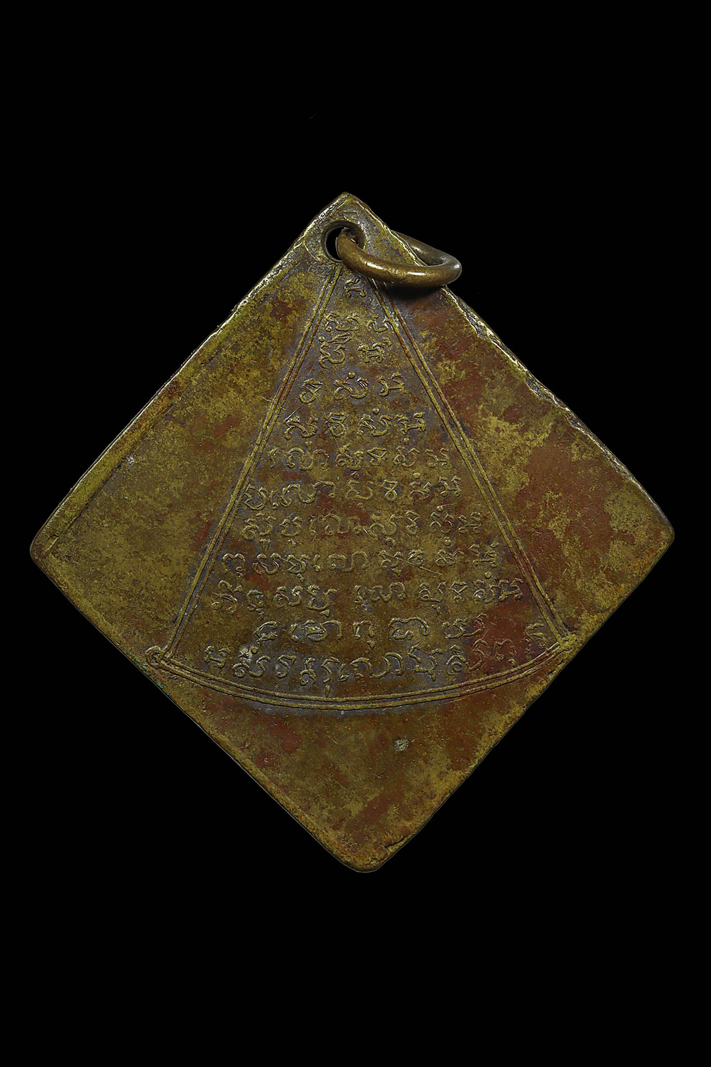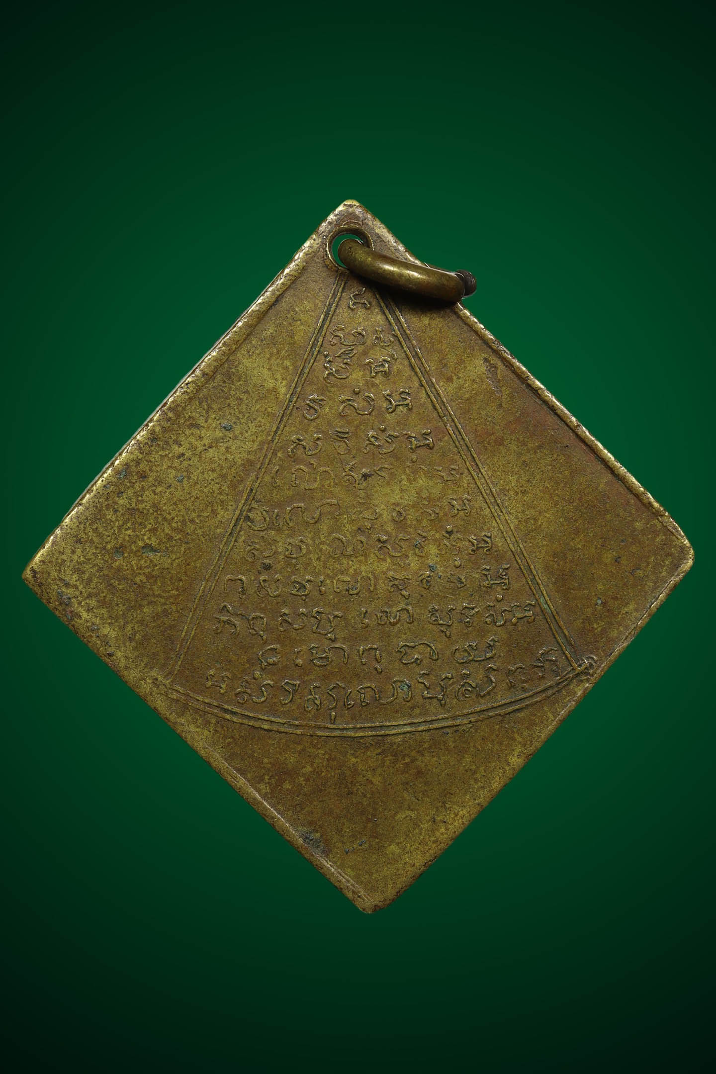 เหรียญหล่อสามเหลี่ยมหลวงพ่อเพชร วัดท่าหลวง พิมพ์มือแปร ปี 2481 เนื้อโลหะผสม จังหวัดพิจิตร (KA1419)