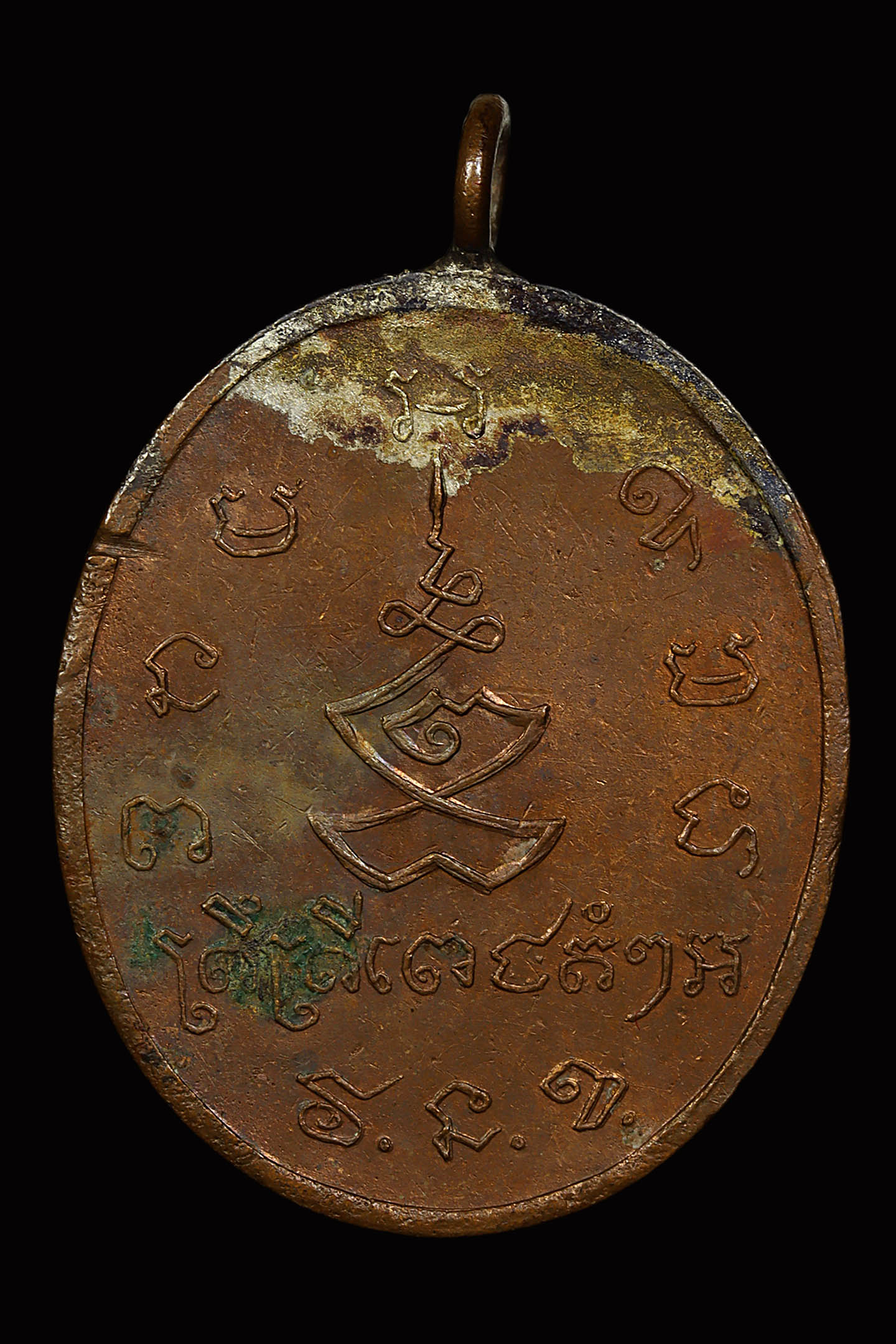 พระอธิการลา วัดโพธิ์ศรี รุ่นแรก ปี 2468 เนื้อทองแดงกะไหล่ทอง จังหวัดสิงห์บุรี (KA1017)