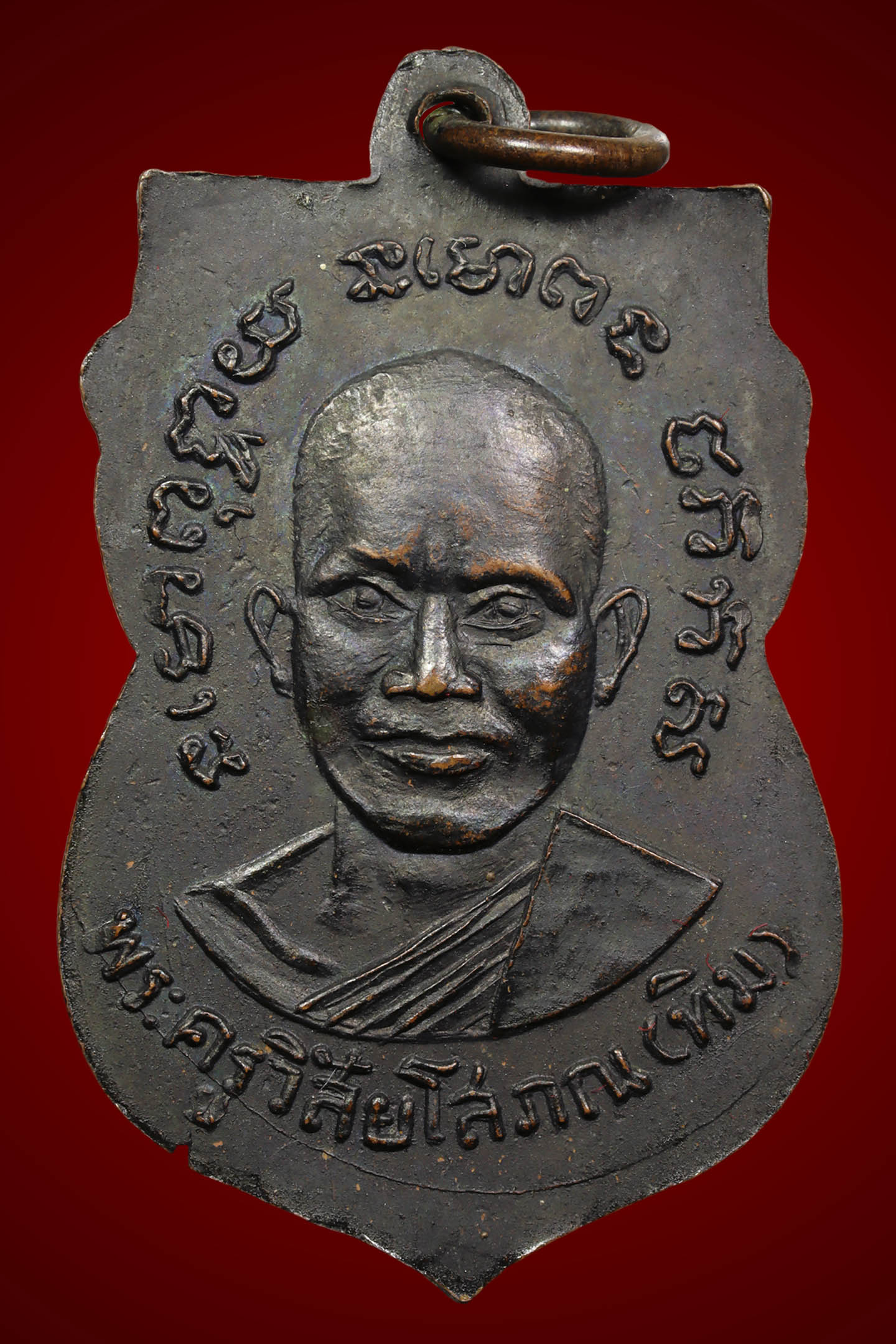 เหรียญหลวงพ่อแดง วัดเขาบันไดอิฐ รุ่นแรก ปี 2503 เนื้อทองแดงรมดำ จังหวัดเพชรบุรี