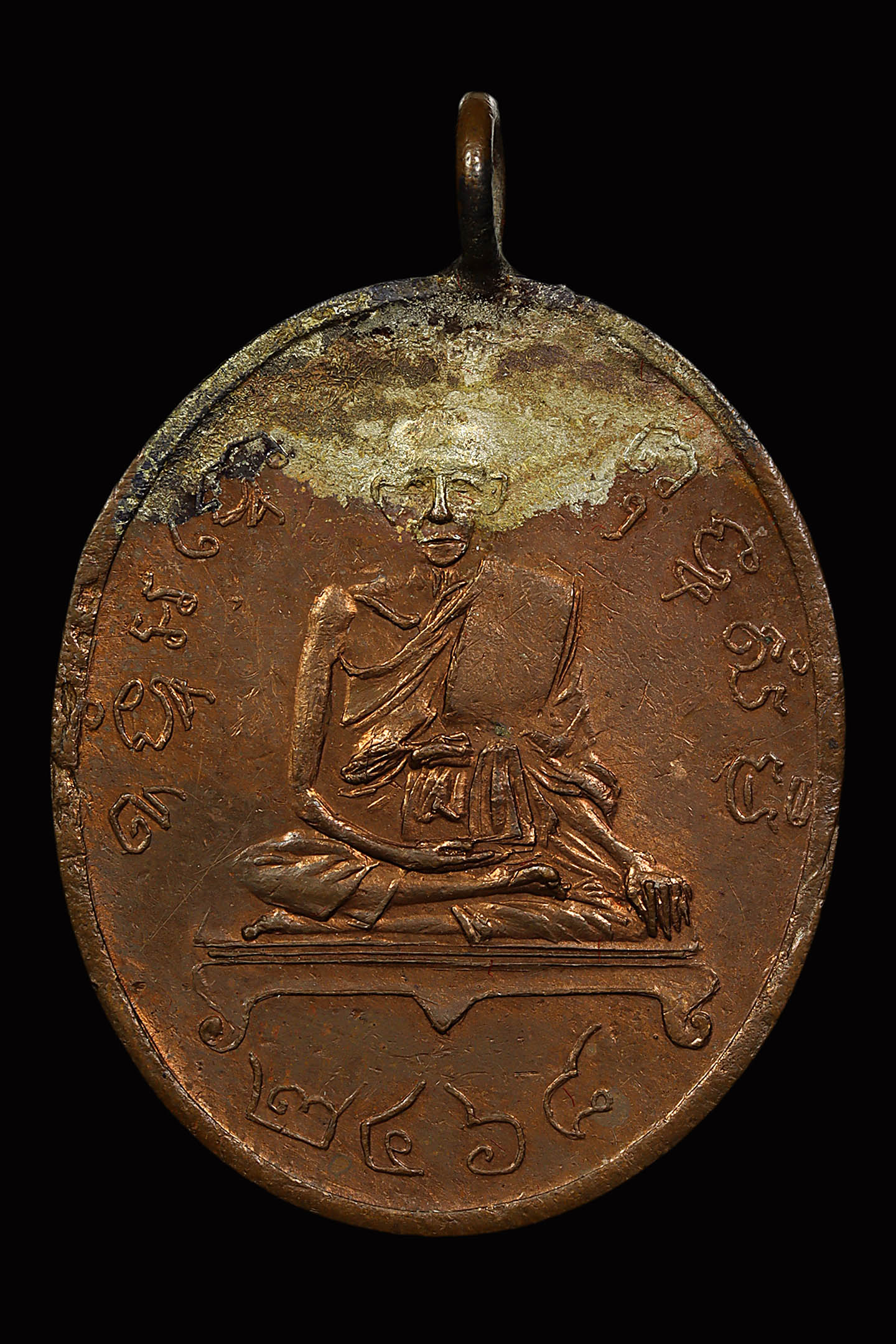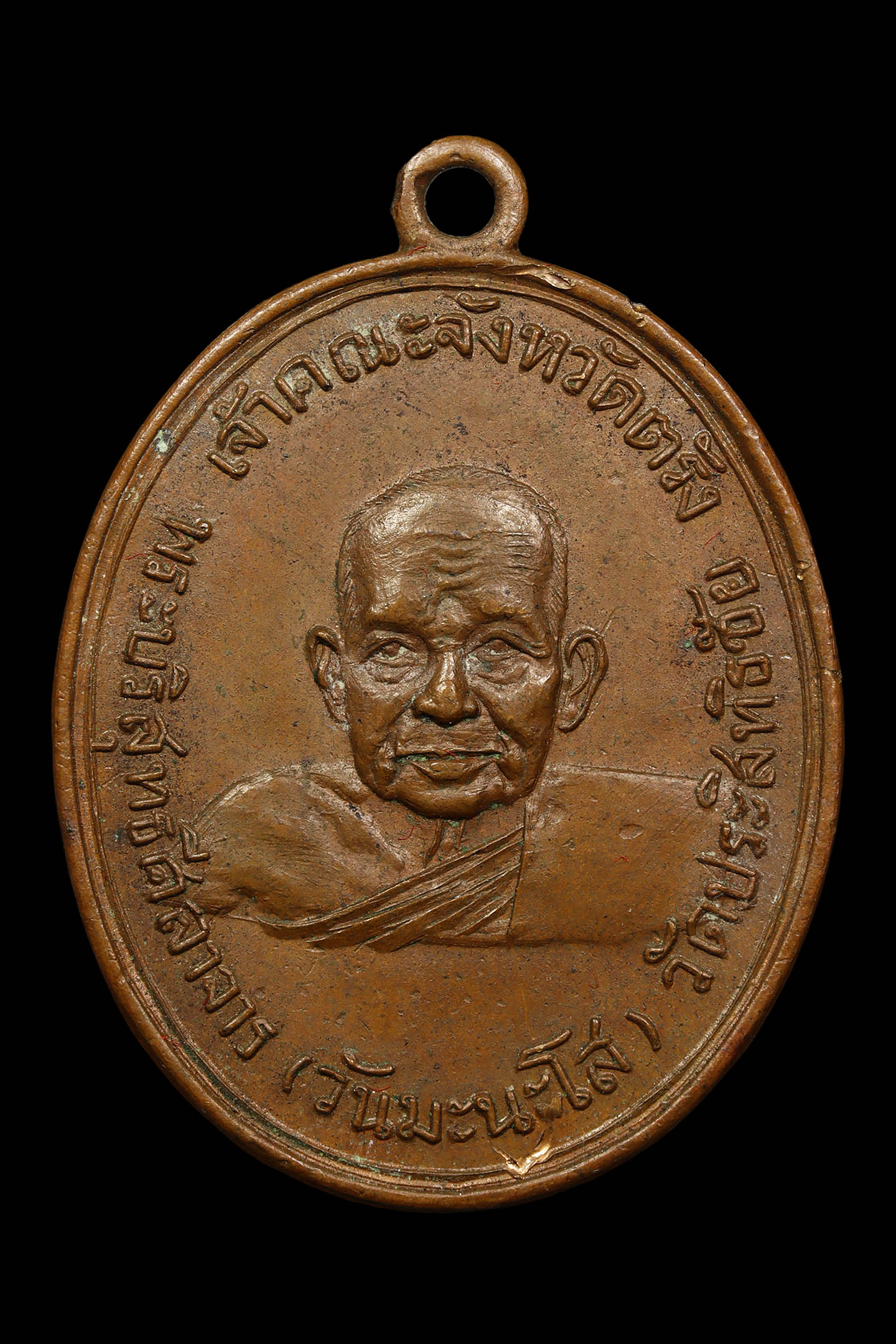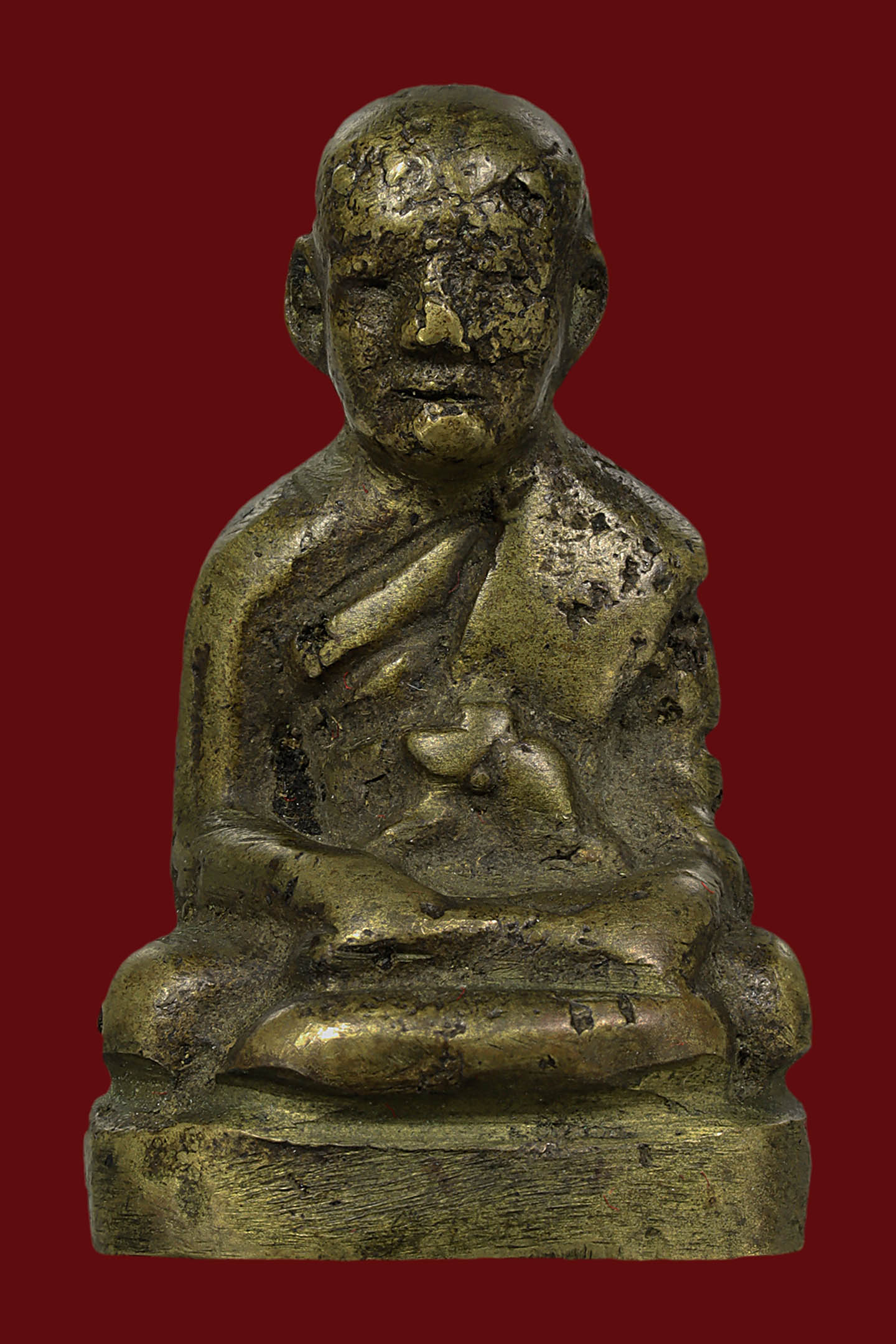 หลวงพ่อสงฆ์ วัดเจ้าฟ้าศาลาลอย รุ่นแรก บล็อกไข่ปลาเต็มนิยม ปี 2505 เนื้อทองแดงรมดำ จังหวัดชุมพร (KA1030)