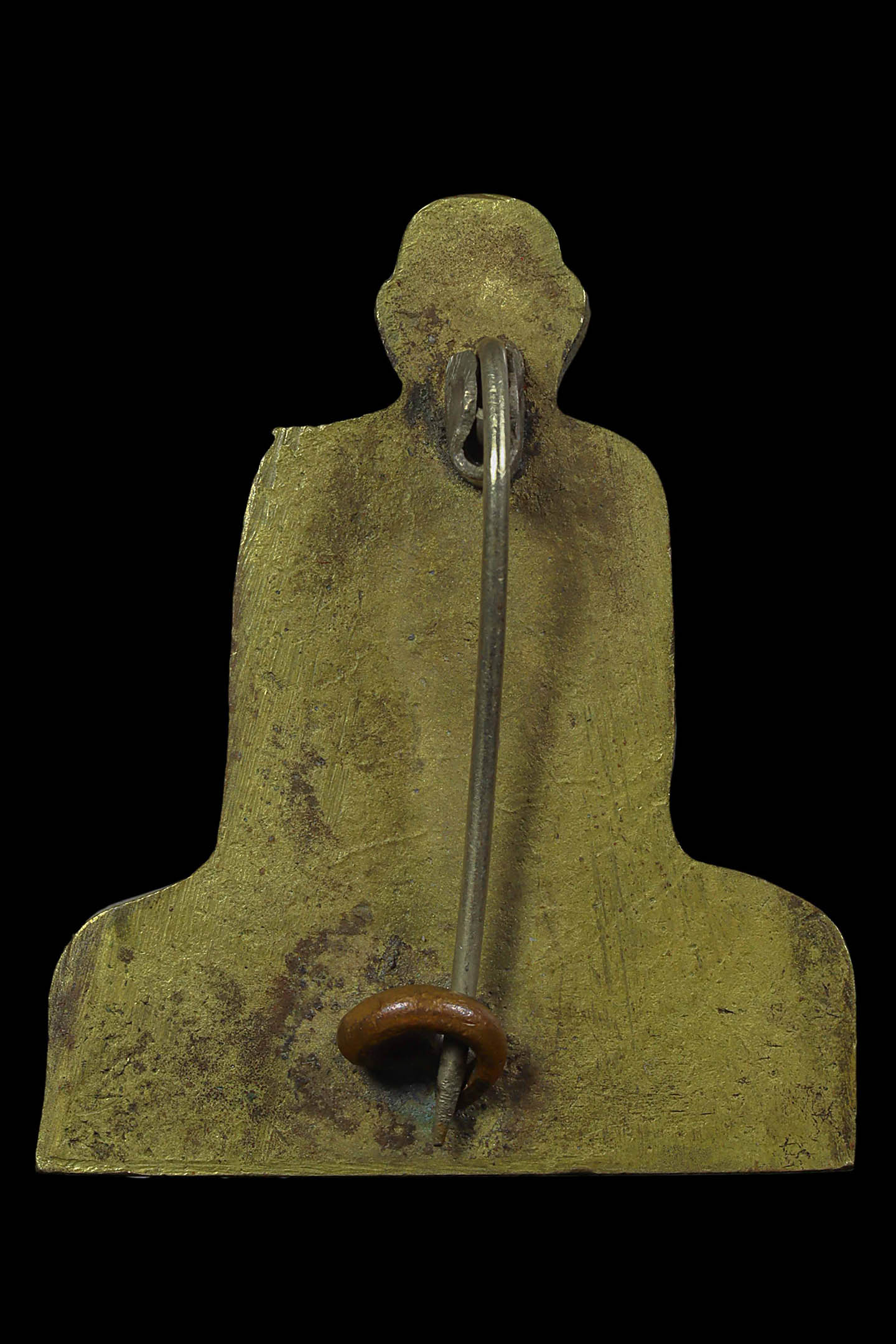 หลวงปู่ทวด วัดช้างให้ รุ่นหลังหนังสือเล็ก บล็อก ว.จุด ปี 2505 เนื้อทองเหลืองรมดำ จังหวัดปัตตานี (KA1328)
