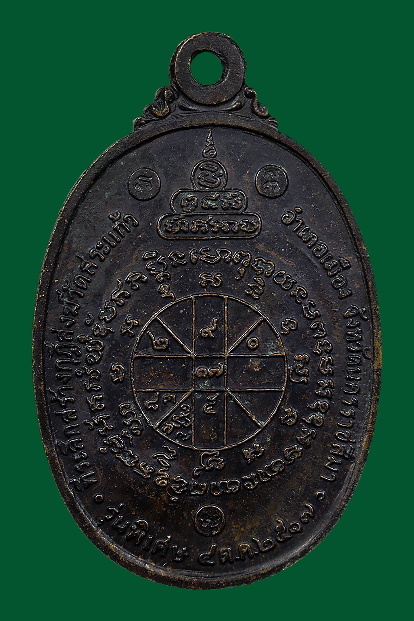 หลวงพ่อคูณ วัดบ้านไร่ รุ่นสร้างกุฏิวัดสระแก้ว บล็อก 5 แตก ปี 2517 เนื้อทองแดงรมดำ จังหวัดนครราชสีมา (KA1236)