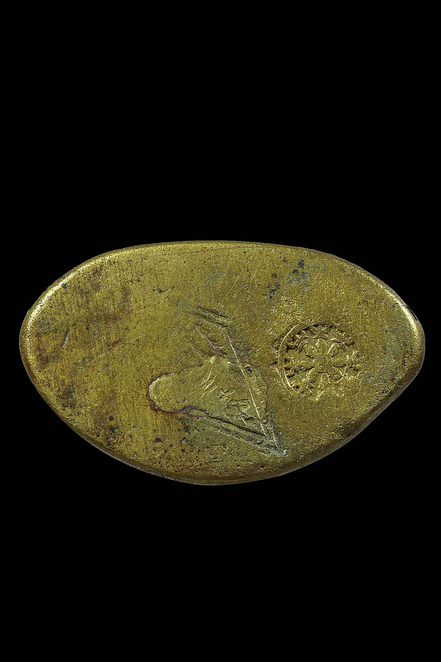 พระกริ่งหน้าอินเดียสมเด็จพระสังฆราชแพ วัดสุทัศน์ พิมพ์หน้าเล็ก ปร 2482 เนื้อโลหะผสม จังหวัดกรุงเทพมหานคร (KA1237)