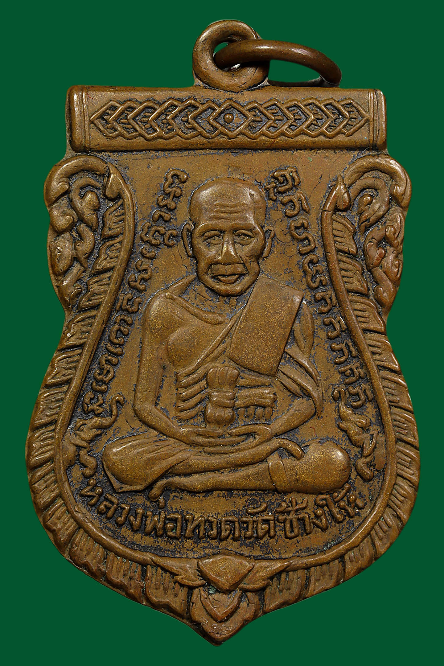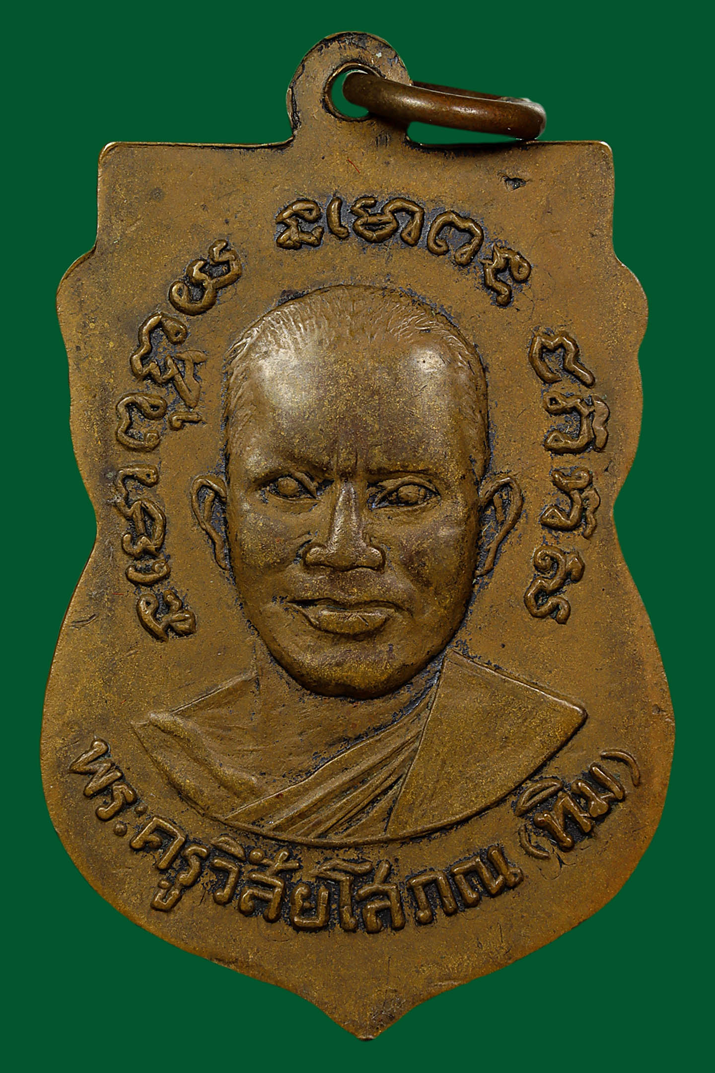 รูปหล่อปั้มหลวงปู่เขียว วัดหรงบล รุ่นแรก ปี 2513 เนื้อทองเหลืองรมดำ จังหวัดนครศรีธรรมราช (KA1160)