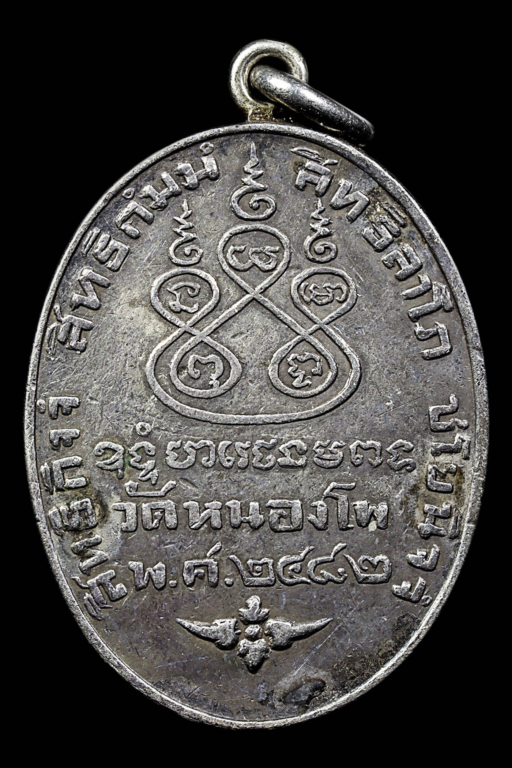 เหรียญรูปไข่หลวงพ่อเดิม วัดหนองโพ บล็อกดอกจันทน์โค้ง ปี 2482 เนื้อเงิน จ.นครสวรรค์