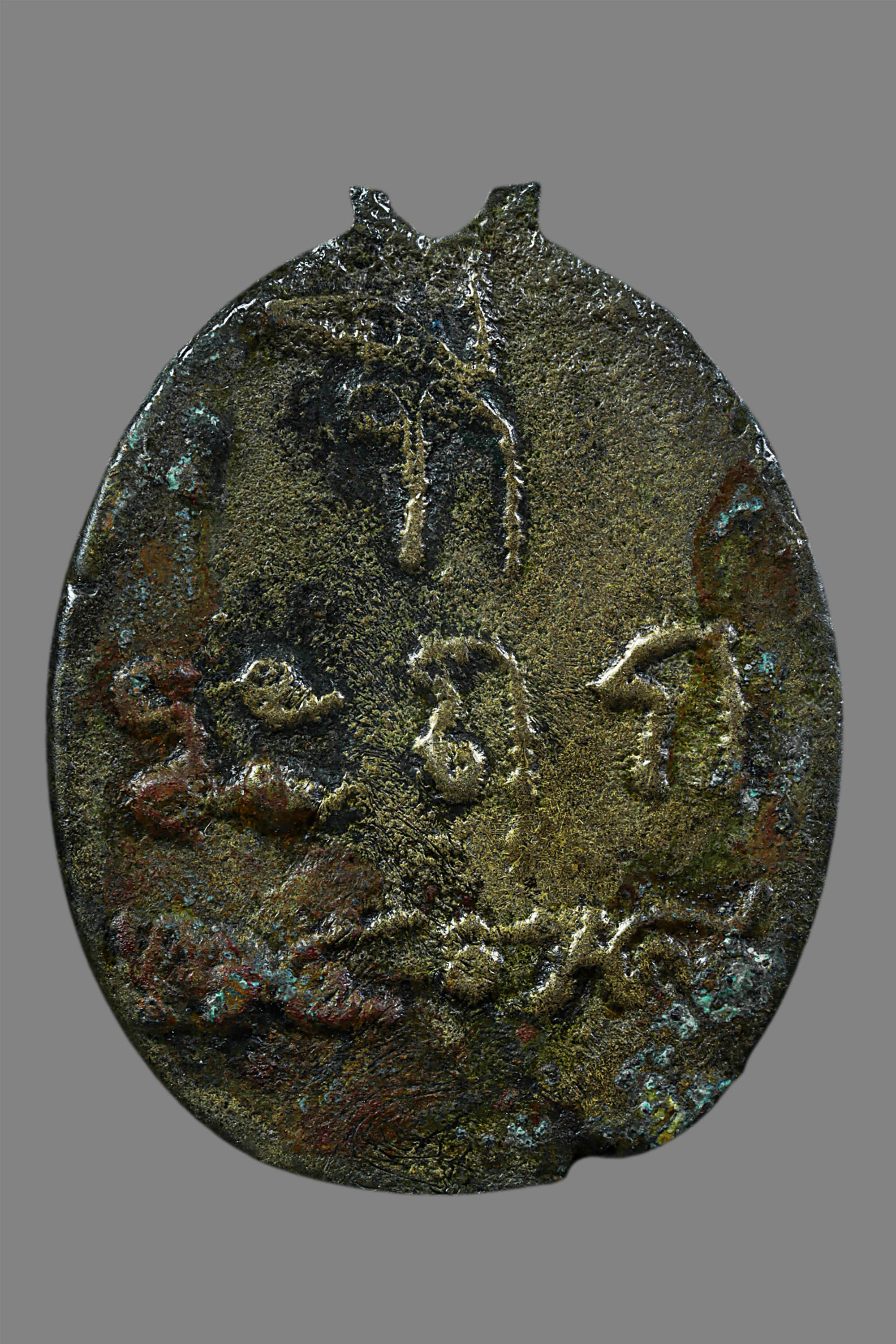 หลวงปู่ทวด วัดช้างให้ รุ่นหลังหนังสือใหญ่ บล็อกตัว ท. หลังเสาอากาศ ปี 2505 เนื้อโลหะผสม จังหวัดปัตตานี