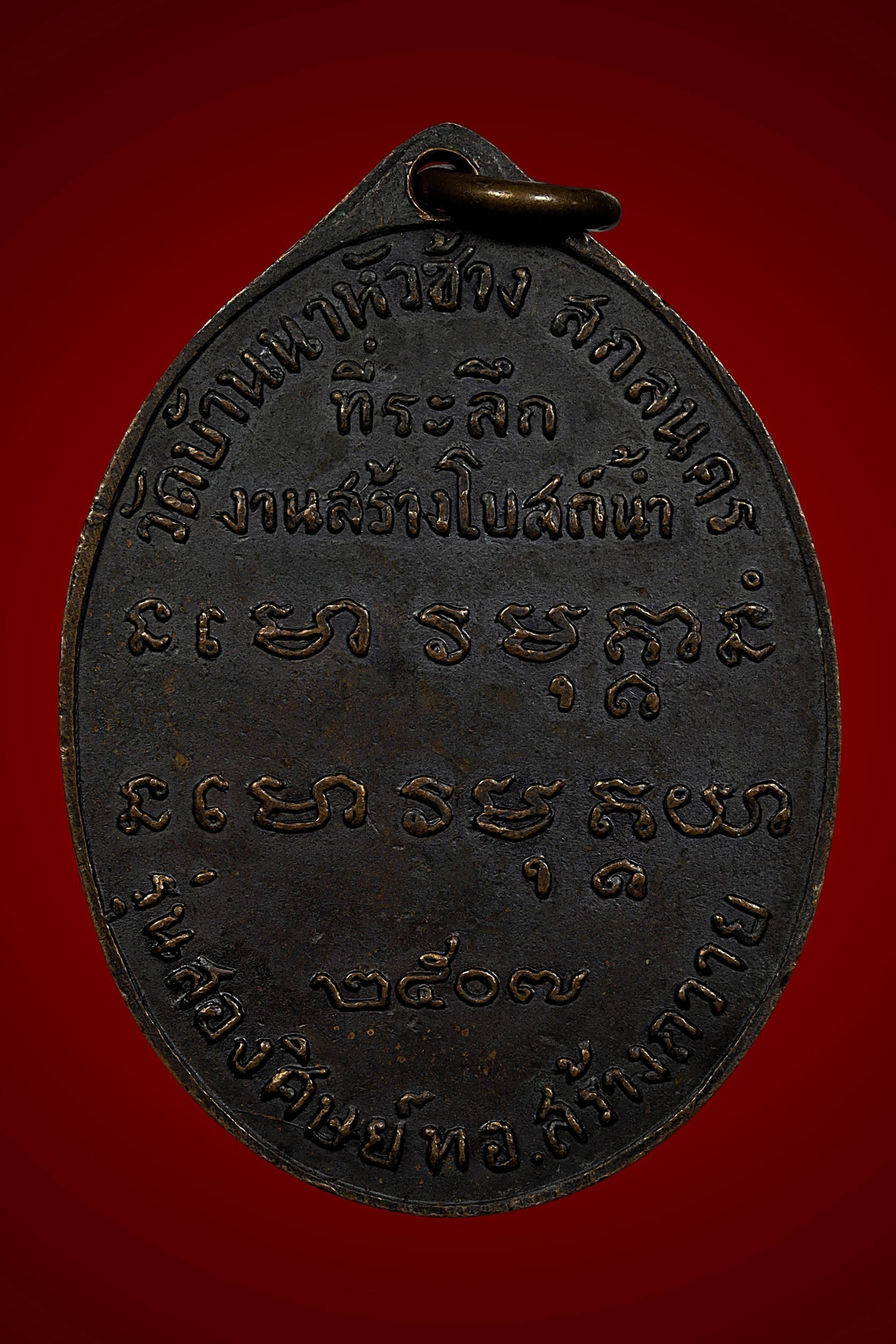 เหรียญพระอาจารย์ฝั้น วัดป่าอุดมสมพร รุ่น 2 บล็อกน้ำตัน ปี 2507 เนื้อทองแดงรมดำ จังหวัดสกลนคร