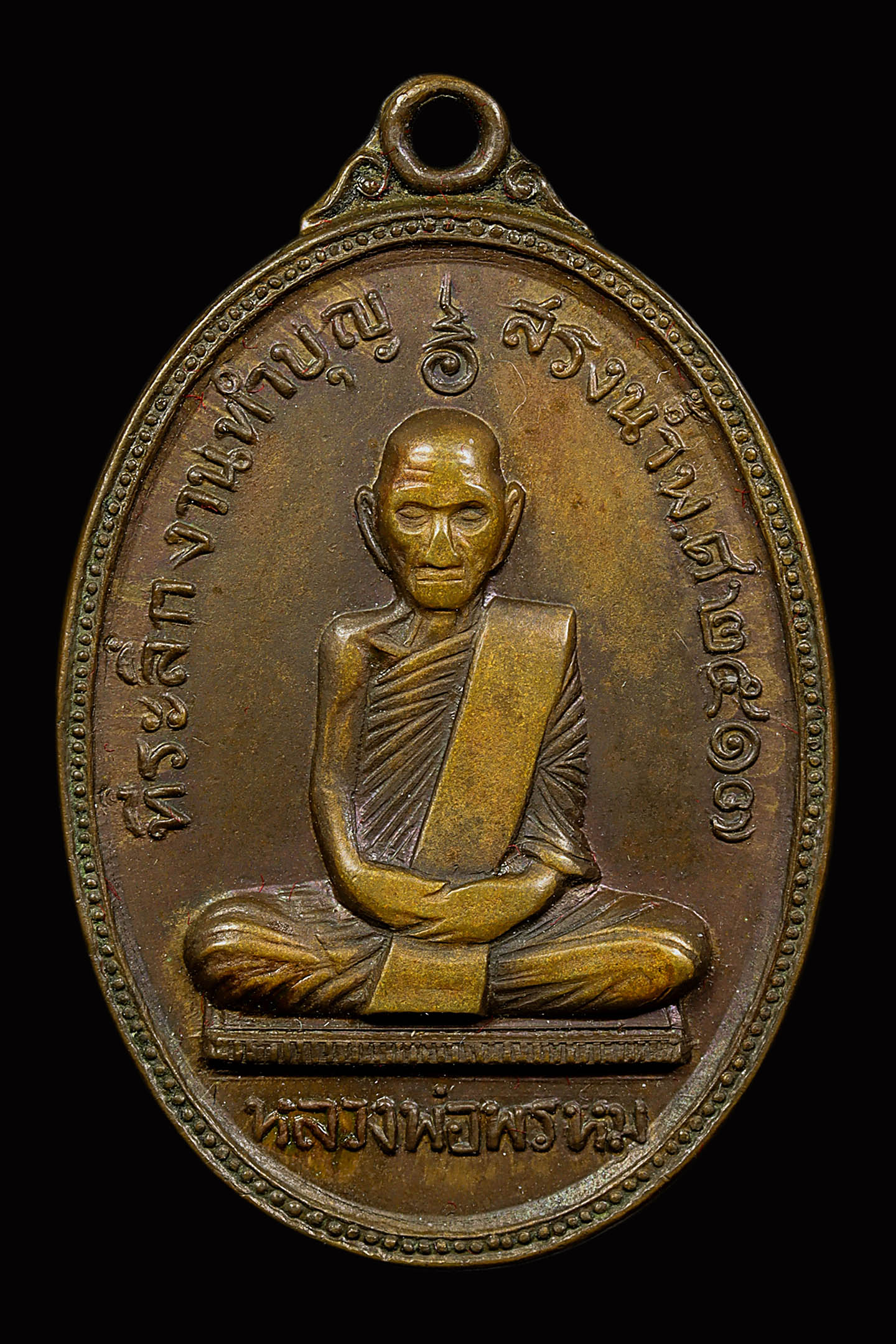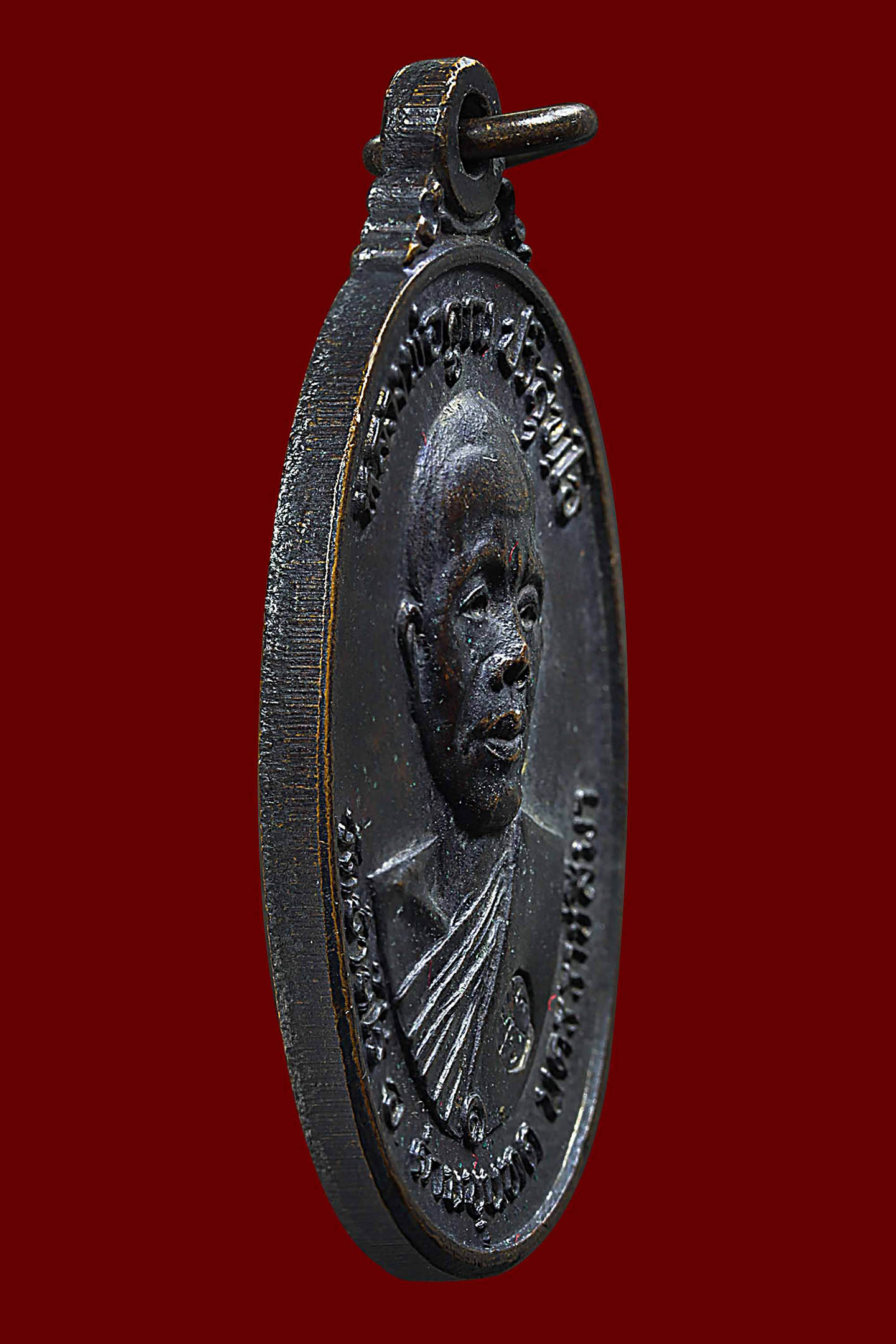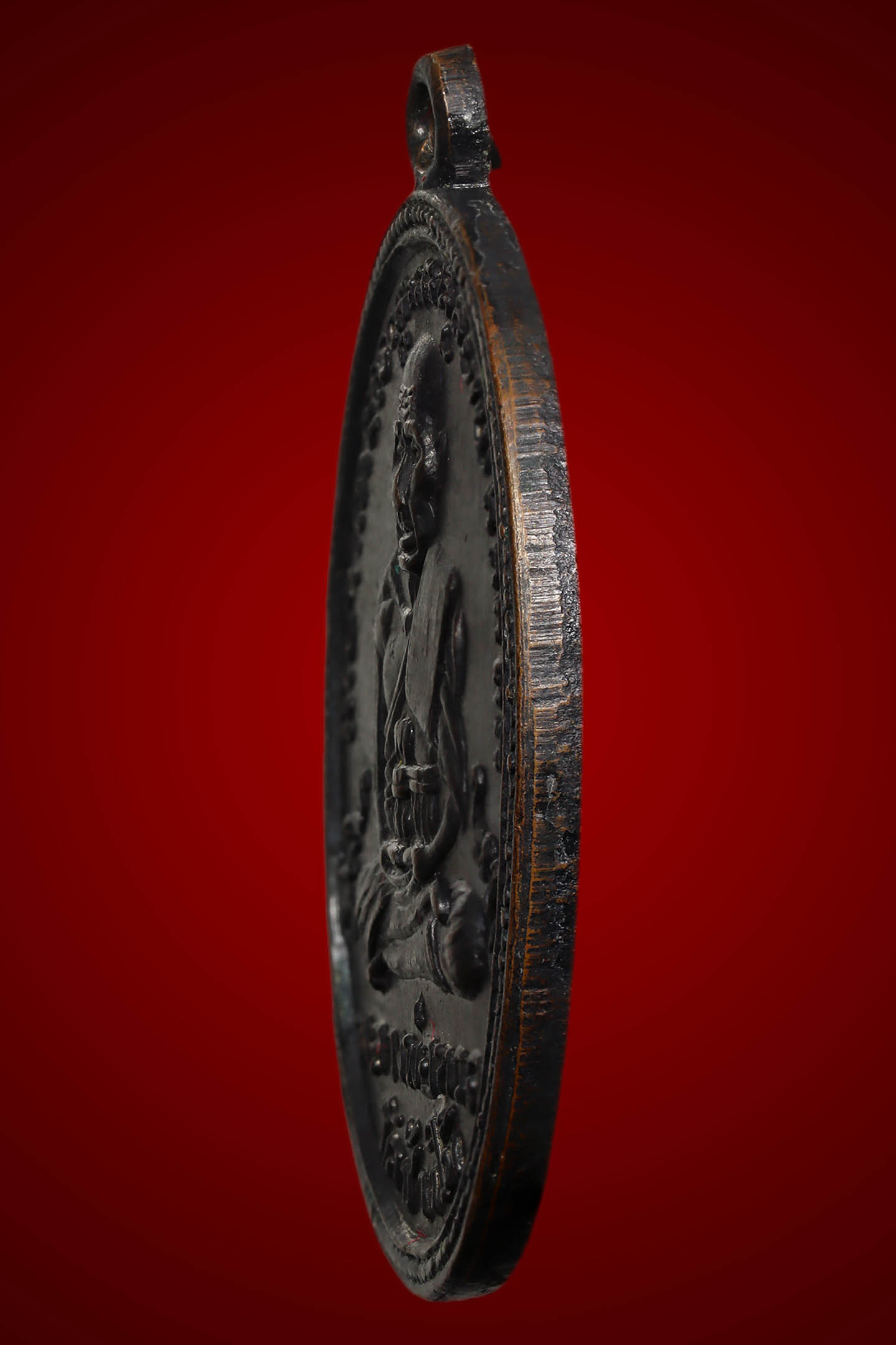 เหรียญหลวงพ่อแดง วัดเขาบันไดอิฐ รุ่นแรก ปี 2503 เนื้อทองแดงรมดำ จังหวัดเพชรบุรี