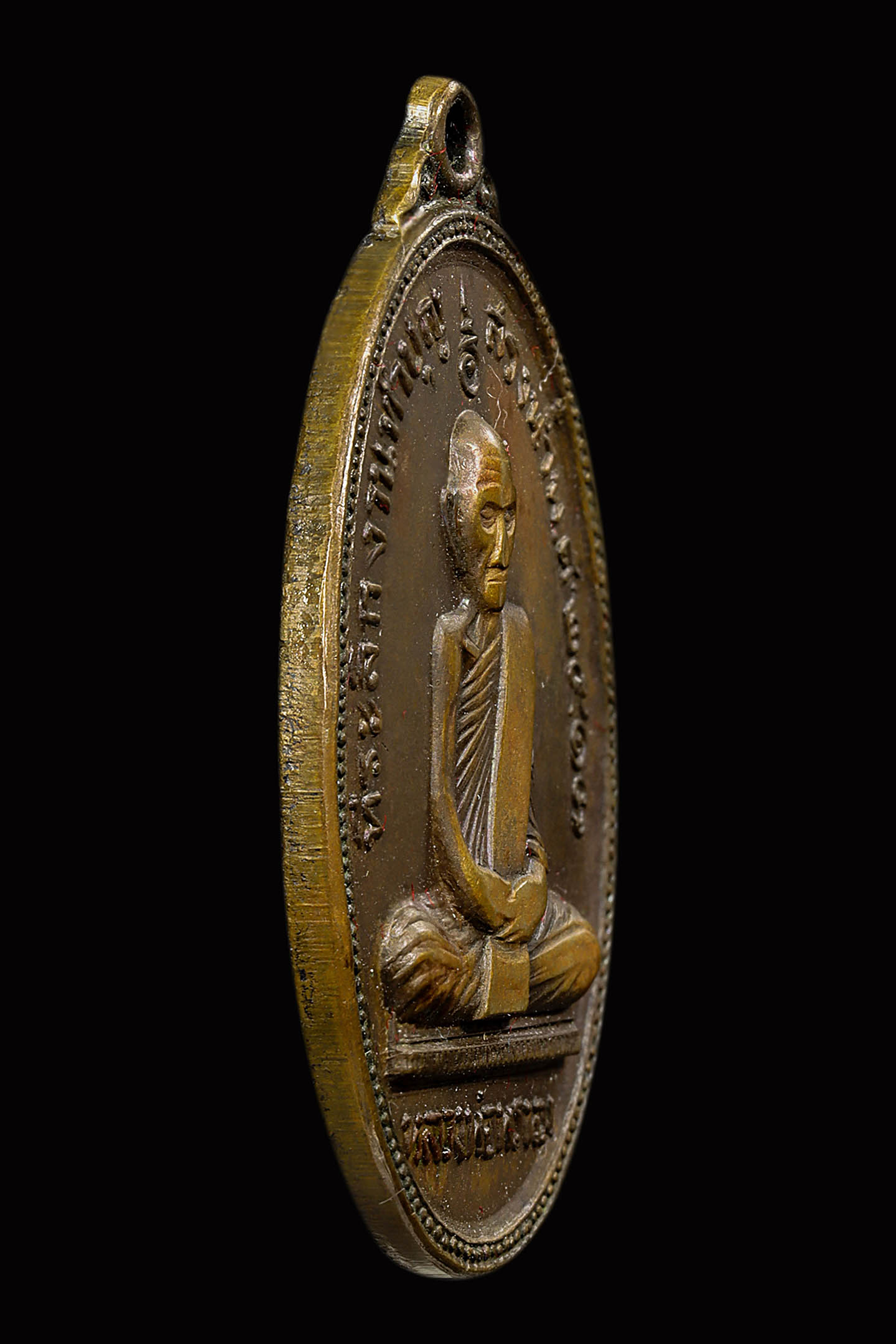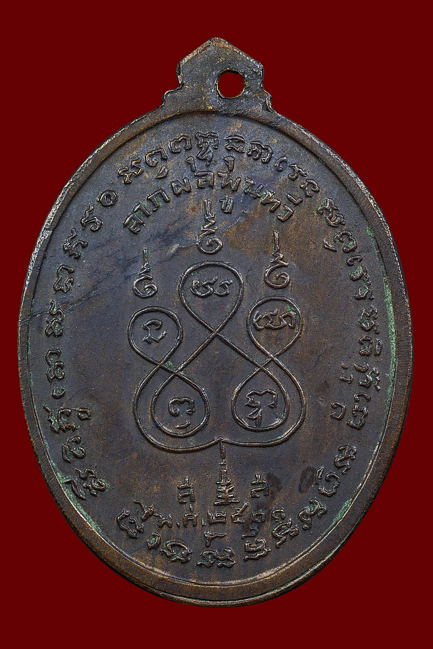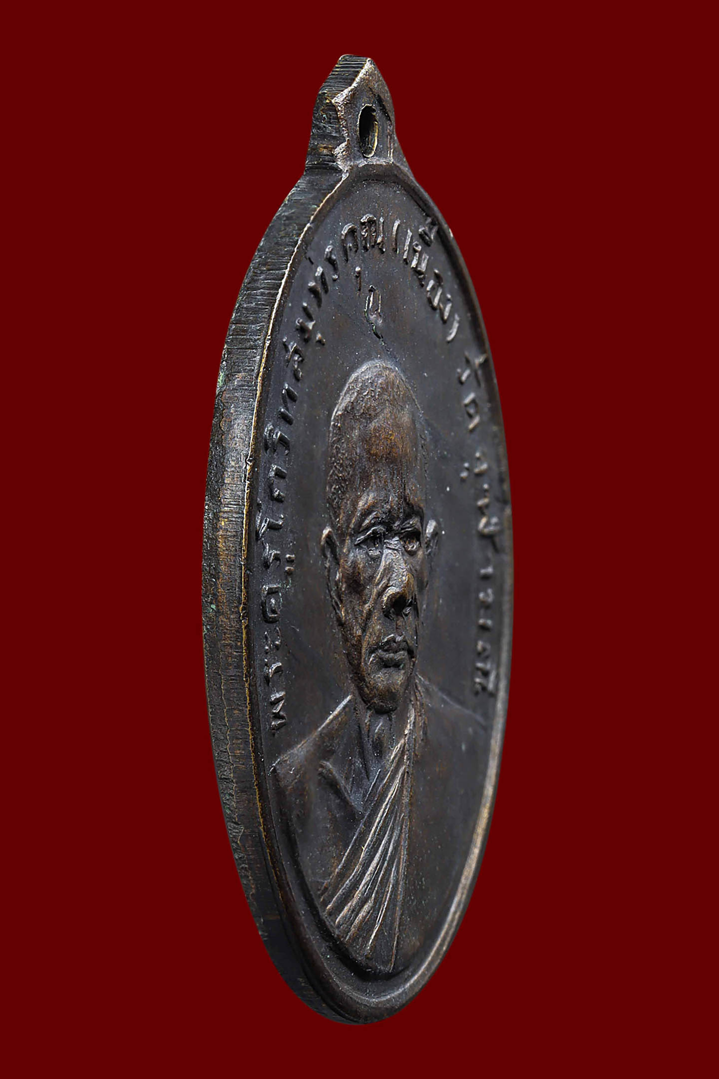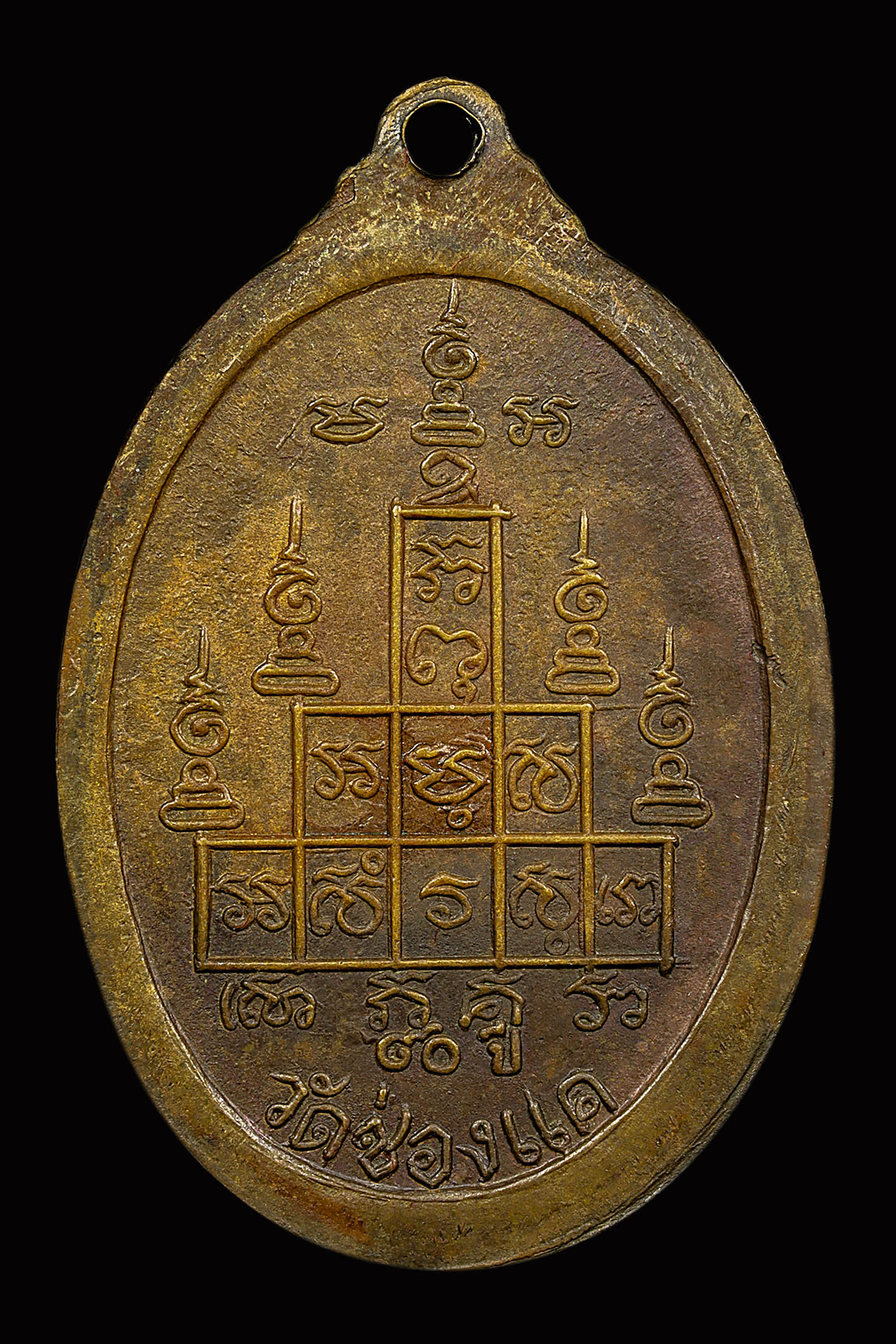 เหรียญหลวงพ่อแดง วัดเขาบันไดอิฐ รุ่นแรก ปี 2503 เนื้อทองแดงรมดำ จังหวัดเพชรบุรี