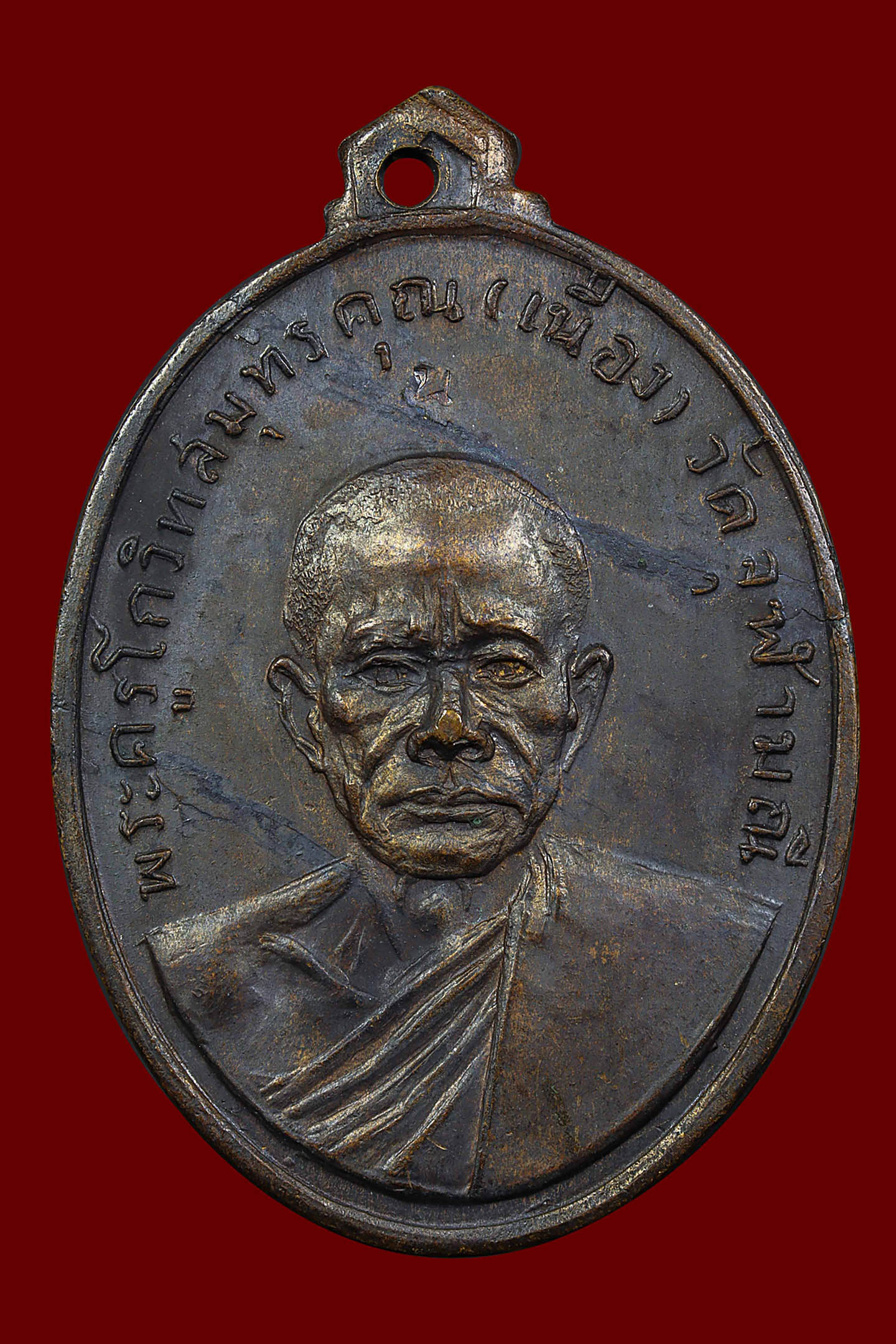หลวงพ่อเนื่อง วัดจุฬามณี รุ่นแรก ตอก น.บนหัว ปี 2511 เนื้อทองแดงรมดำ จังหวัดสมุทรสงคราม (KA1146)