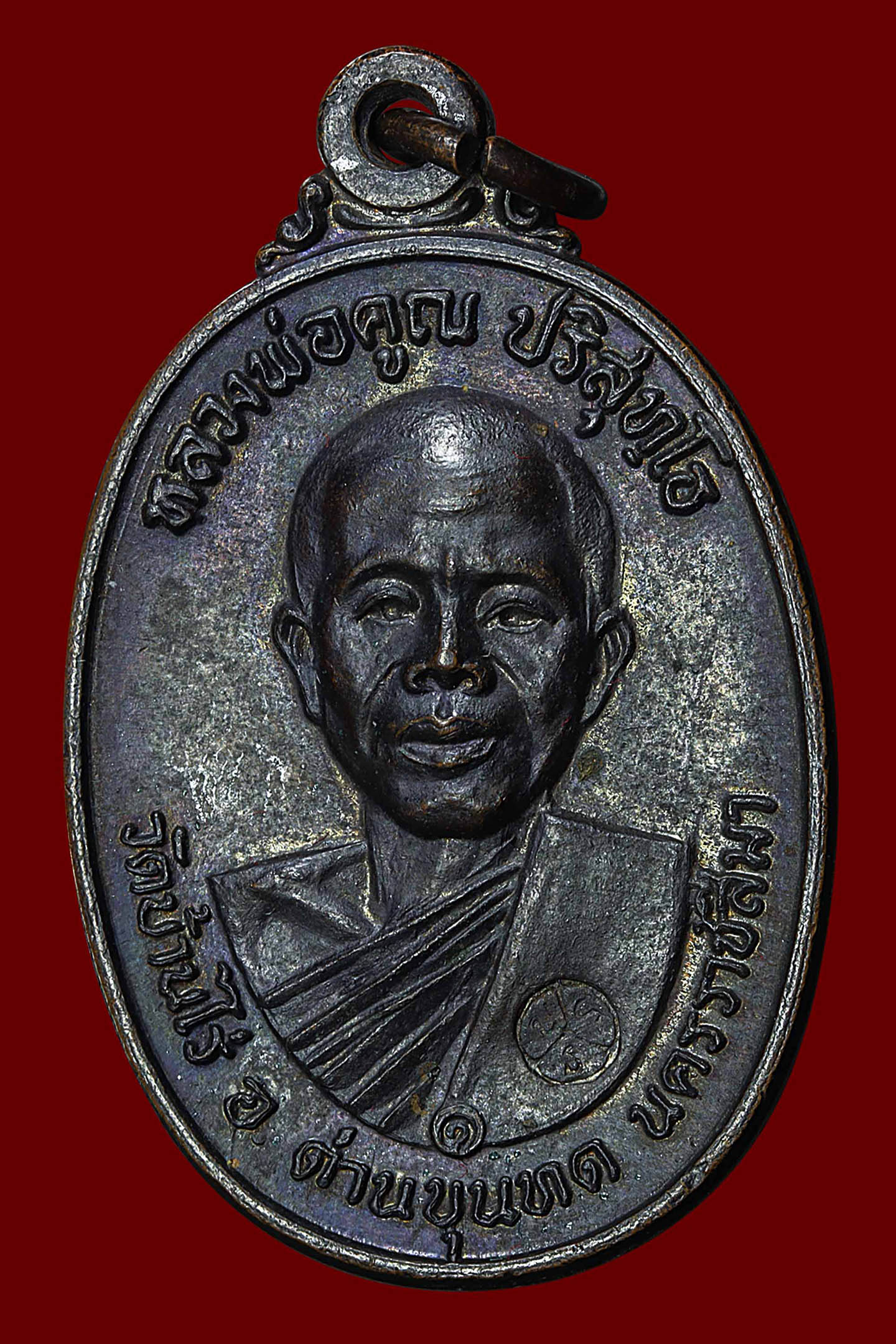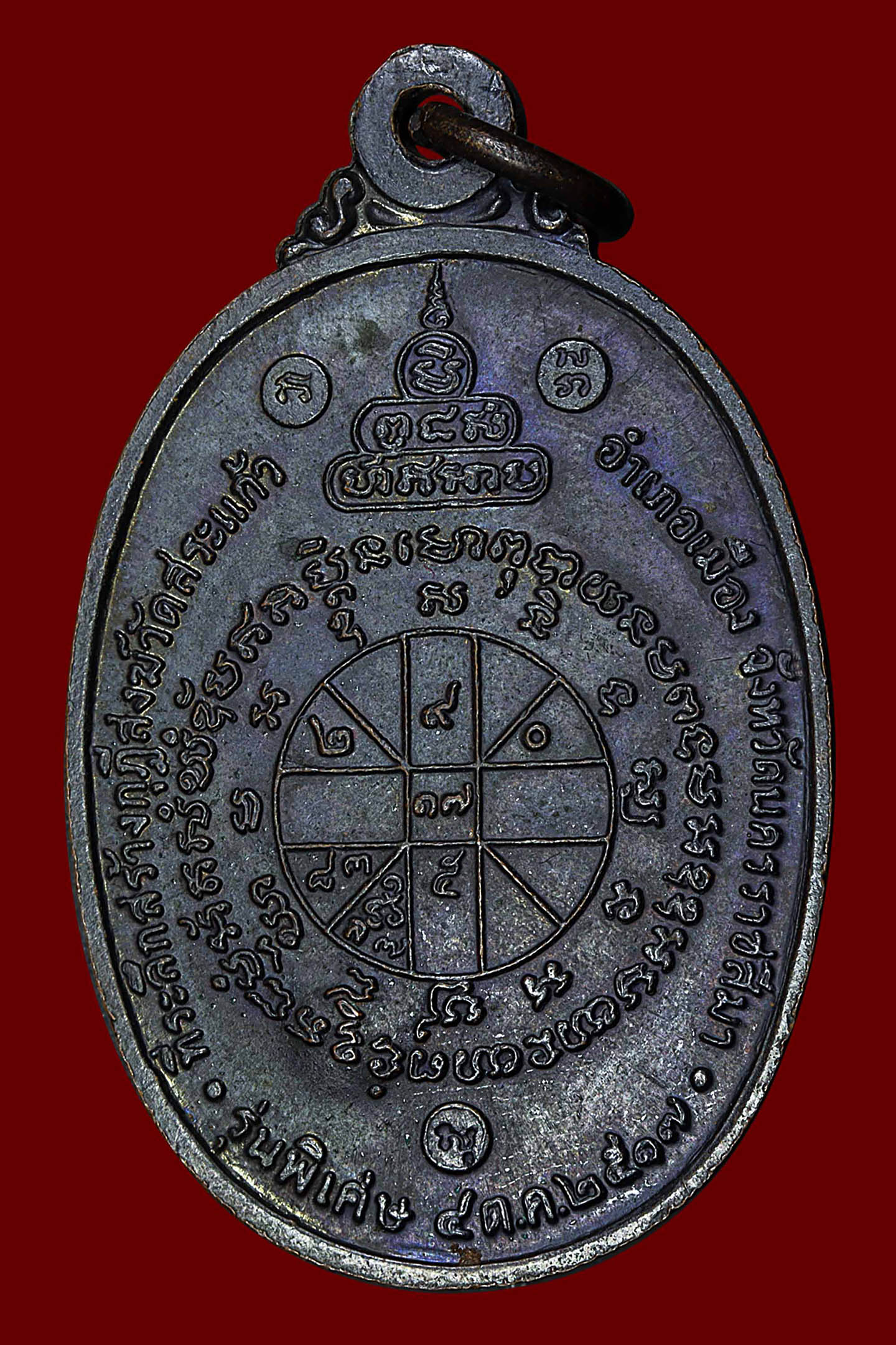 หลวงพ่อคูณ วัดบ้านไร่ รุ่นสร้างกุฏิวัดสระแก้ว บล็อกนวะไหล่จุด ปี 2517 เนื้อทองแดงรมดำ จังหวัดนครราชสีมา (KA1483)