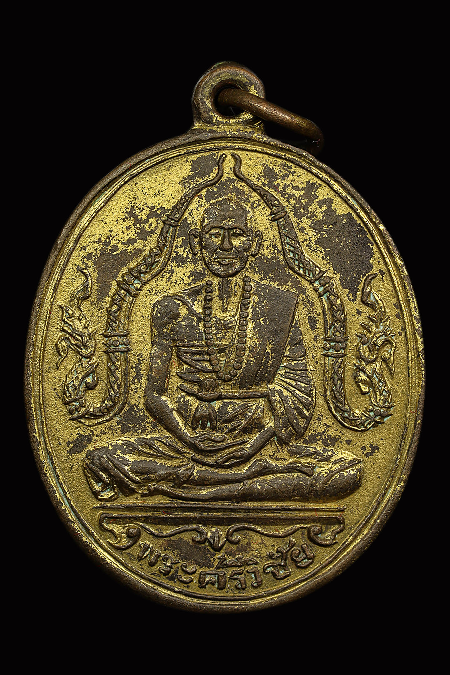 พระชัยวัฒน์หลวงปู่บุญ วัดกลางบางแก้ว พิมพ์คอหนอก เนื้อโลหะผสม จังหวัดนครปฐม (KA1468)