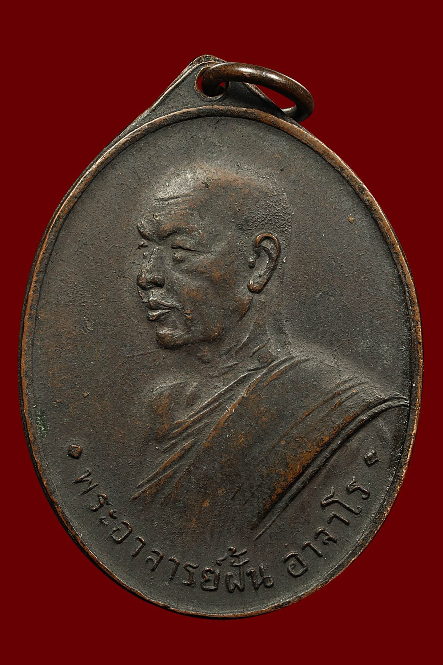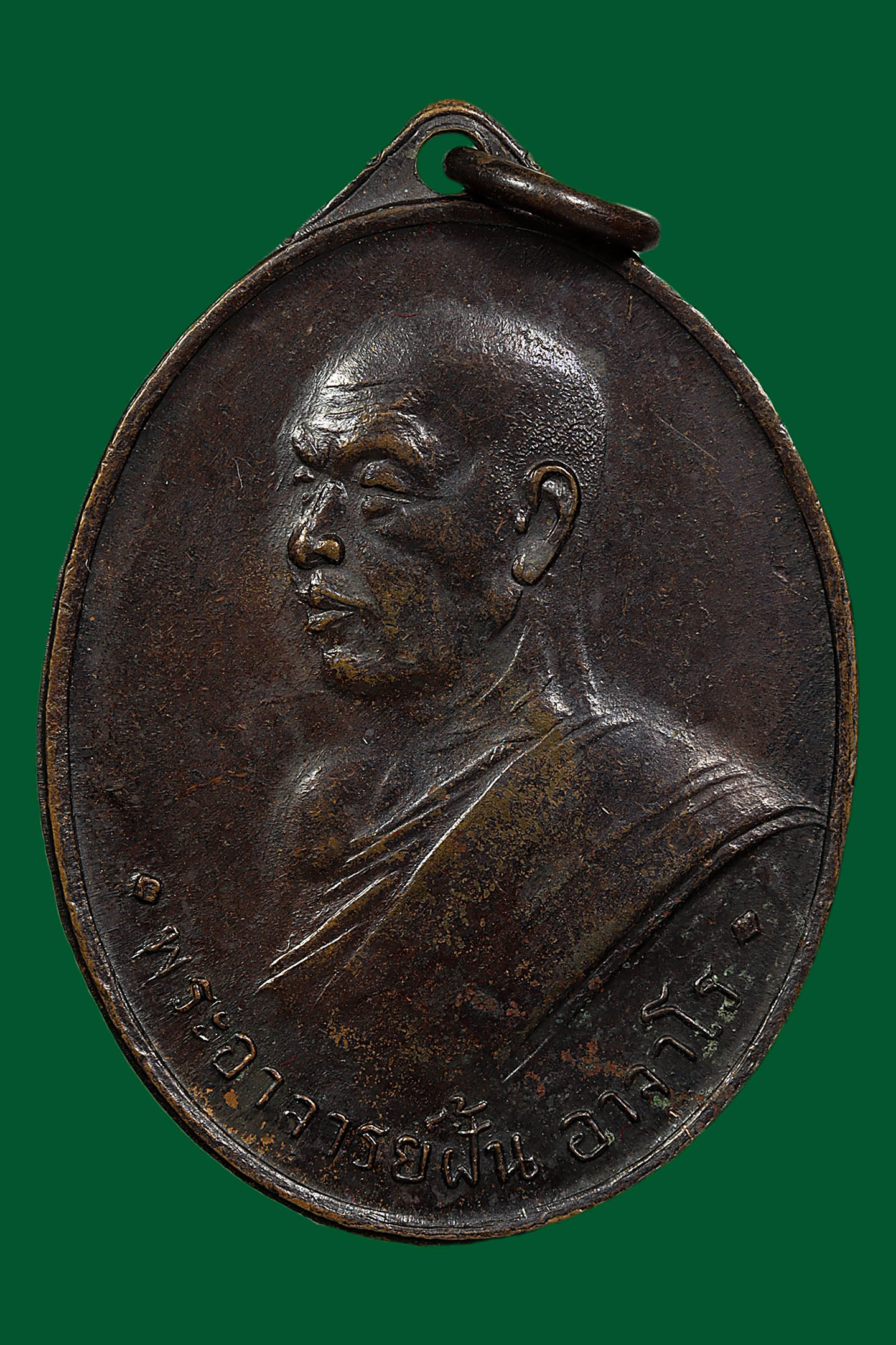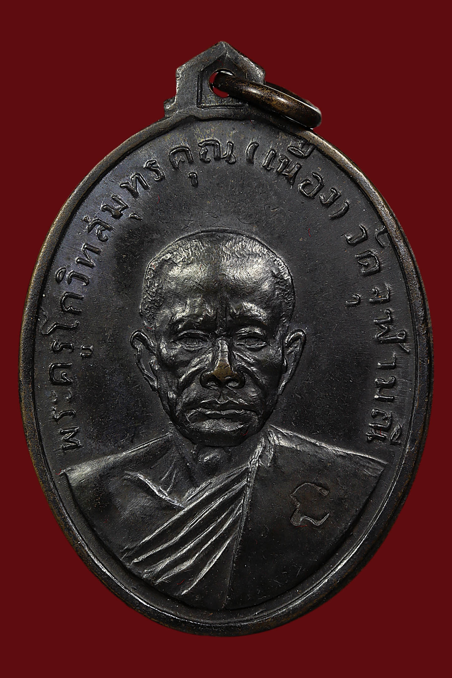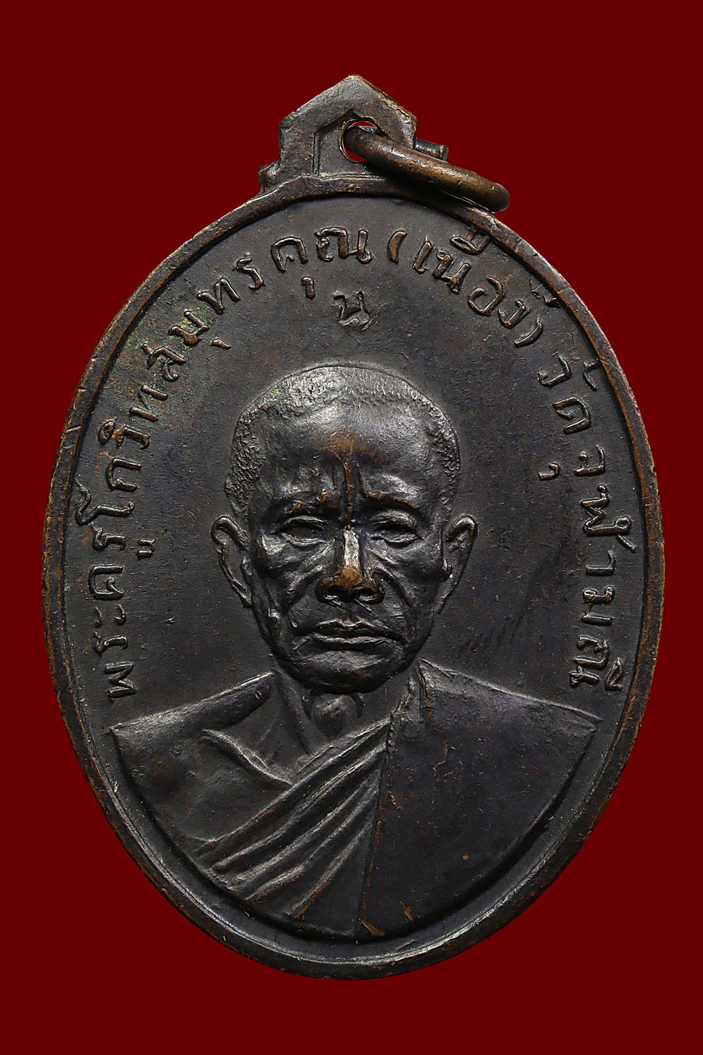 หลวงพ่อเนื่อง วัดจุฬามณี รุ่นแรก พิมพ์ น.หัว ปี 2511 เนื้อทองแดงรมดำ จังหวัดสมุทรสงคราม (KA1141)