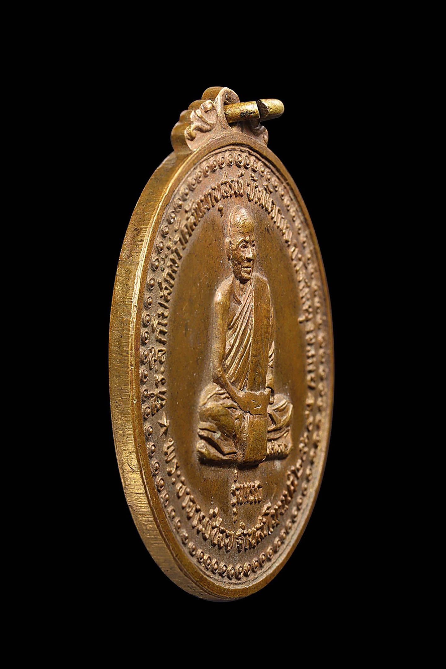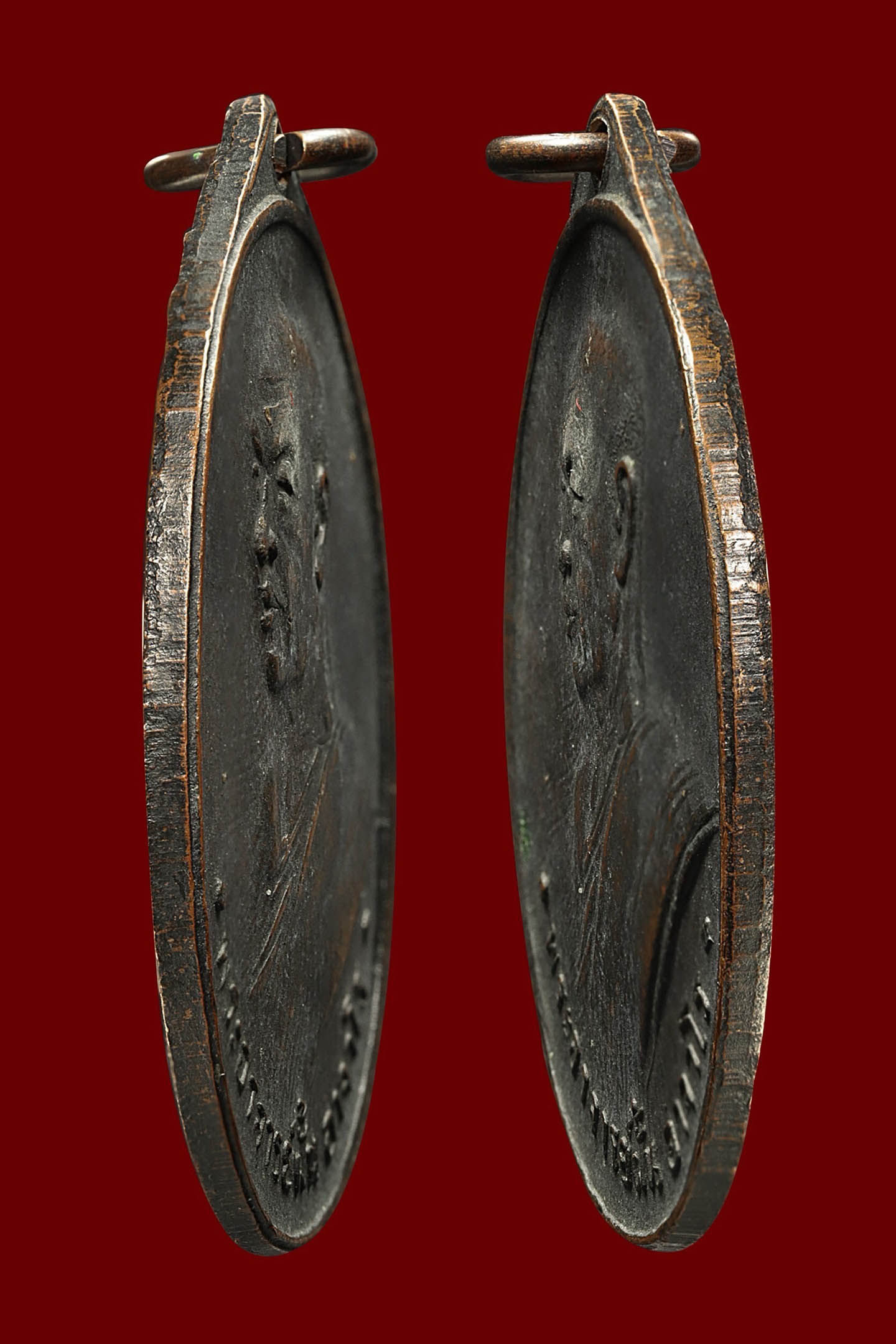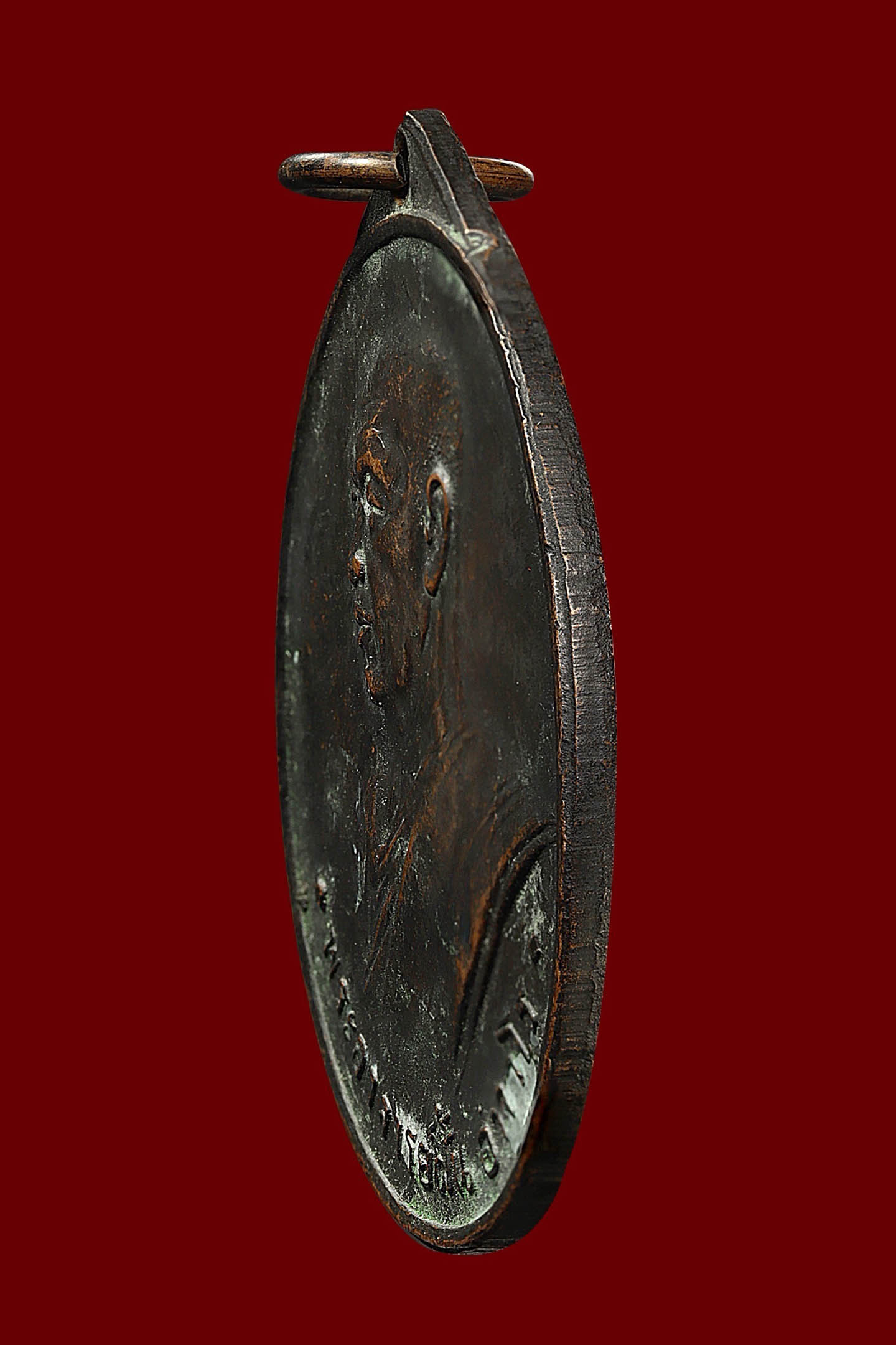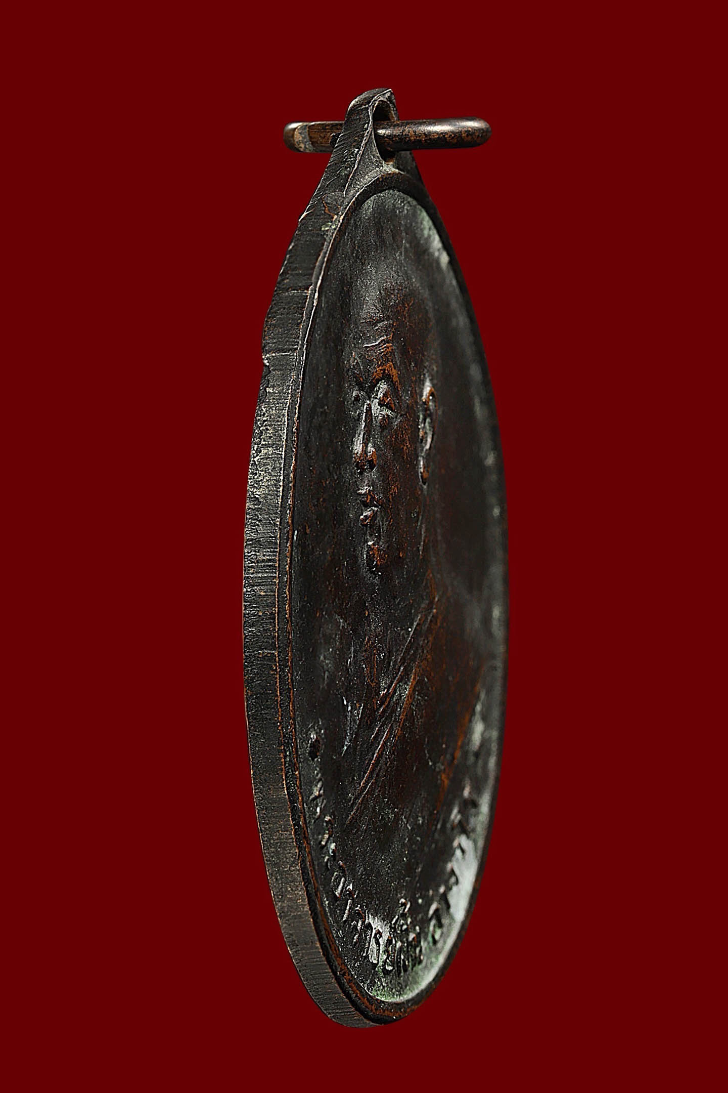 หลวงพ่อเนื่อง วัดจุฬามณี รุ่นแรก พิมพ์ น.หัว ปี 2511 เนื้อทองแดงรมดำ จังหวัดสมุทรสงคราม (KA1141)