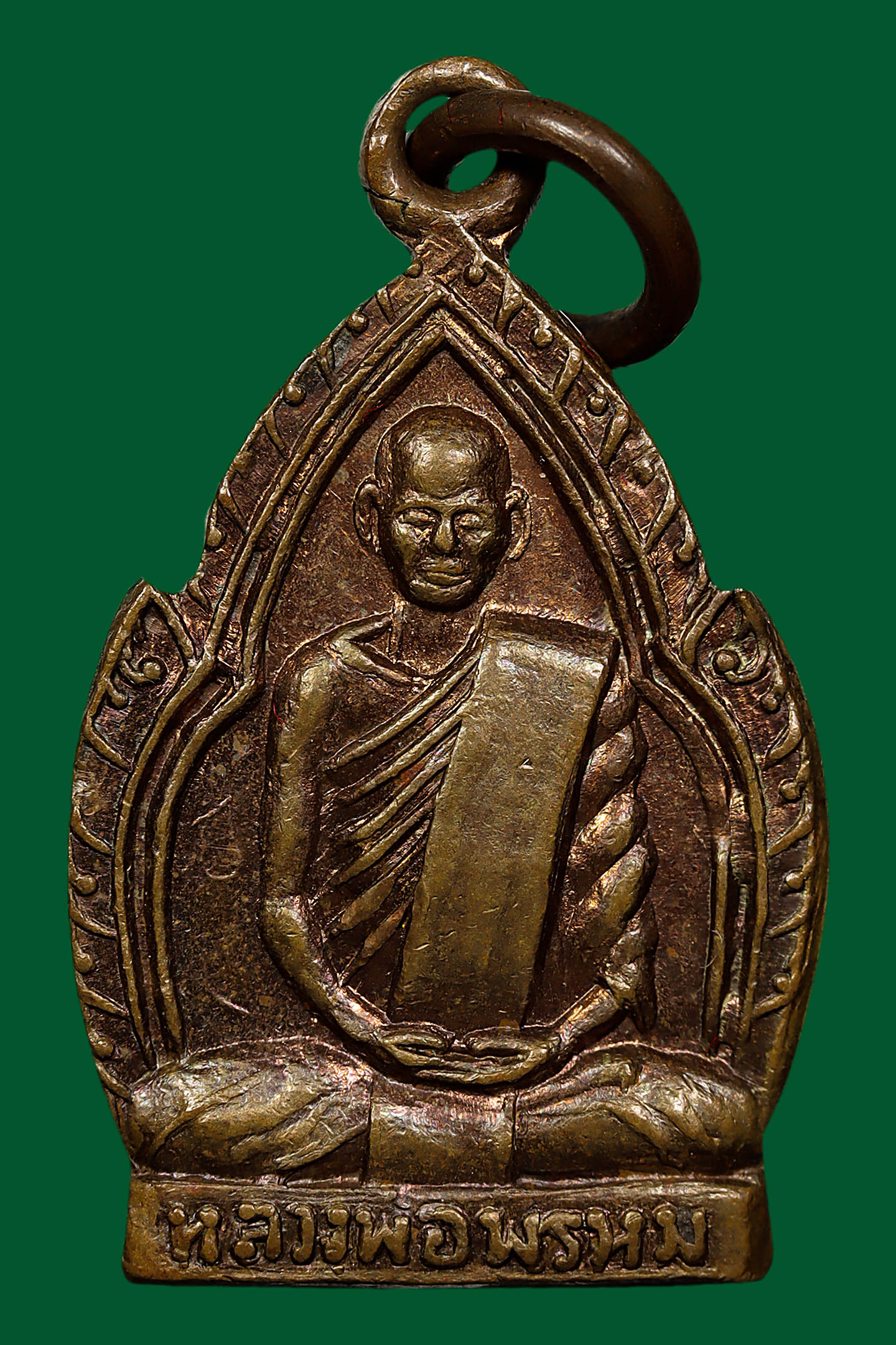 รูปหล่อปั้มหลวงปู่เขียว วัดหรงบล รุ่นแรก ปี 2513 เนื้อทองเหลืองรมดำ จังหวัดนครศรีธรรมราช (KA1160)