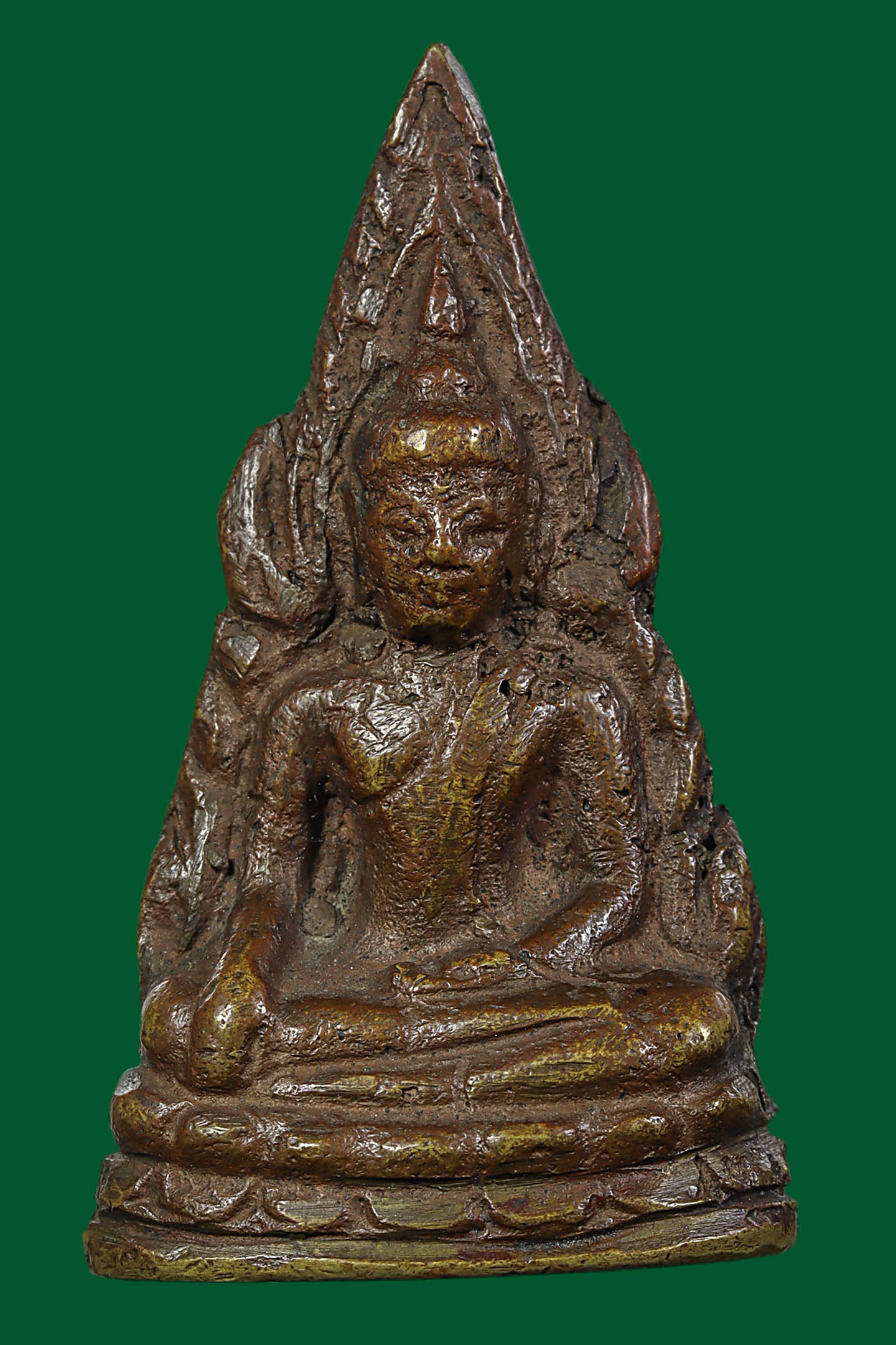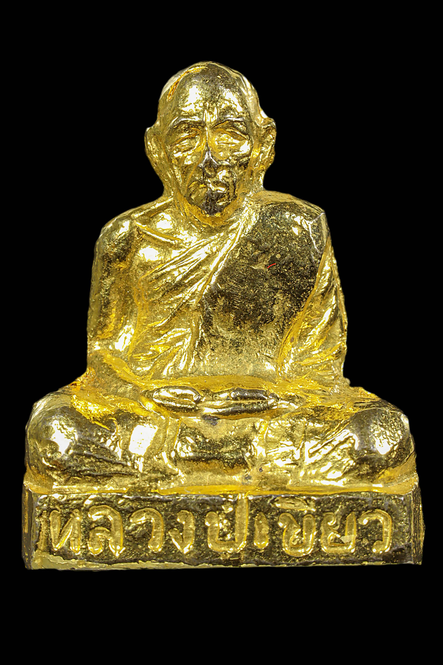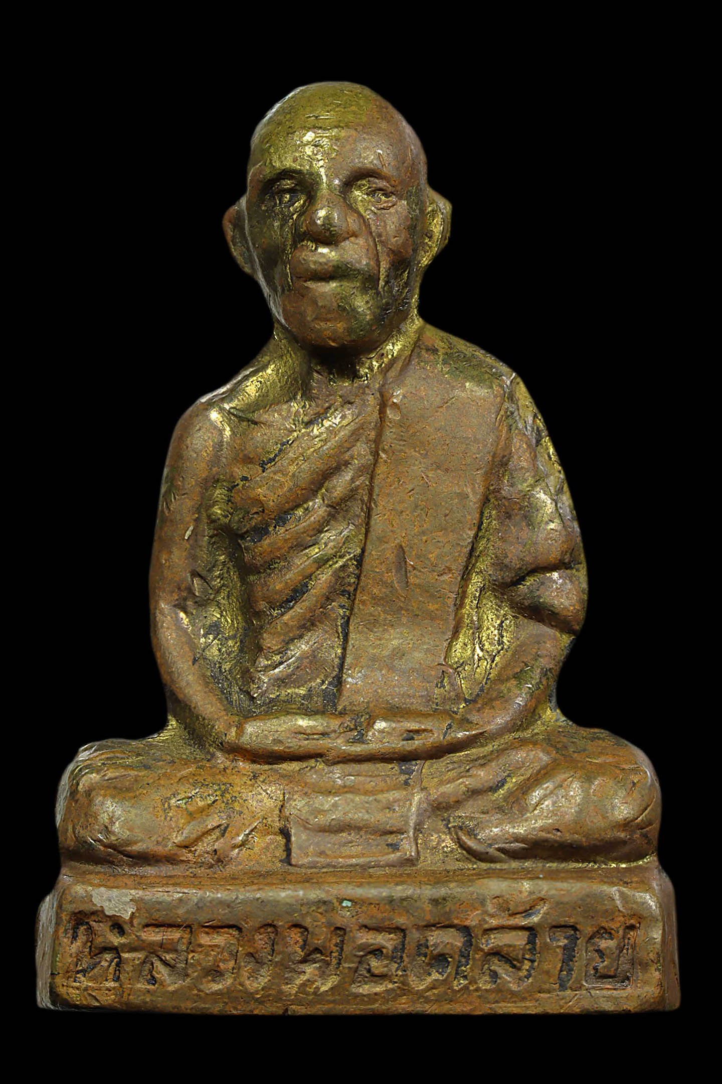 รูปหล่อปั้มหลวงปู่เขียว วัดหรงบล รุ่นแรก พิมพ์แจกกรรมการ ปี 2513 เนื้อทองเหลืองกะไหล่ทอง จังหวัดนครศรีธรรมราช (KA1161)