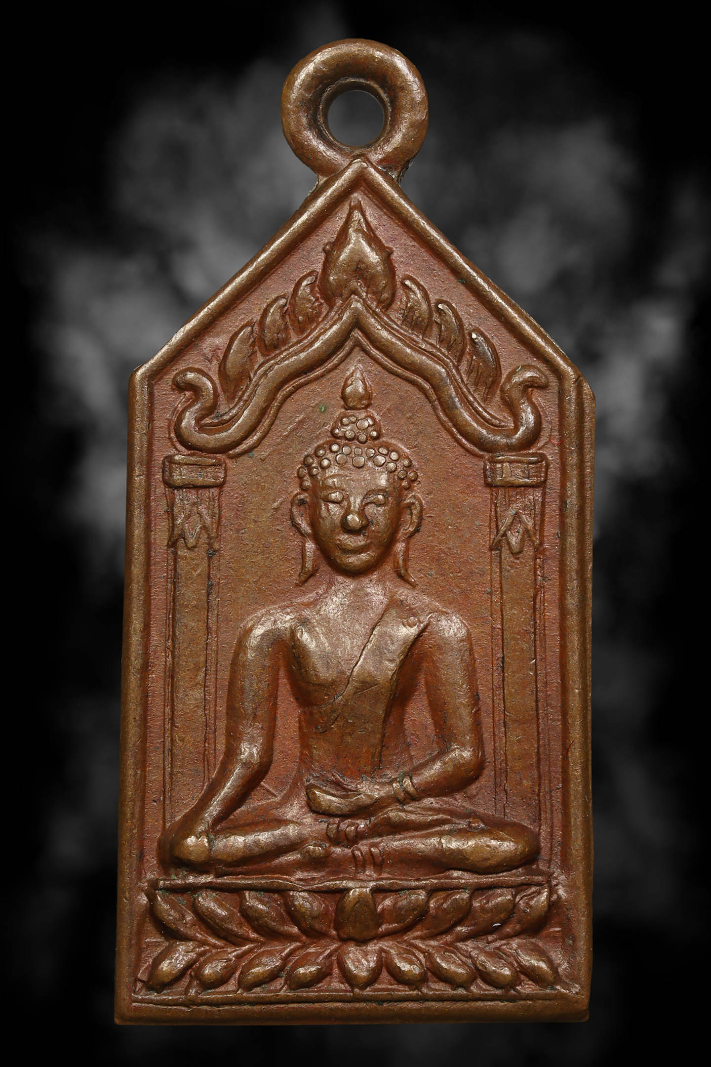 พระอธิการลา วัดโพธิ์ศรี รุ่นแรก ปี 2468 เนื้อทองแดงกะไหล่ทอง จังหวัดสิงห์บุรี (KA1017)