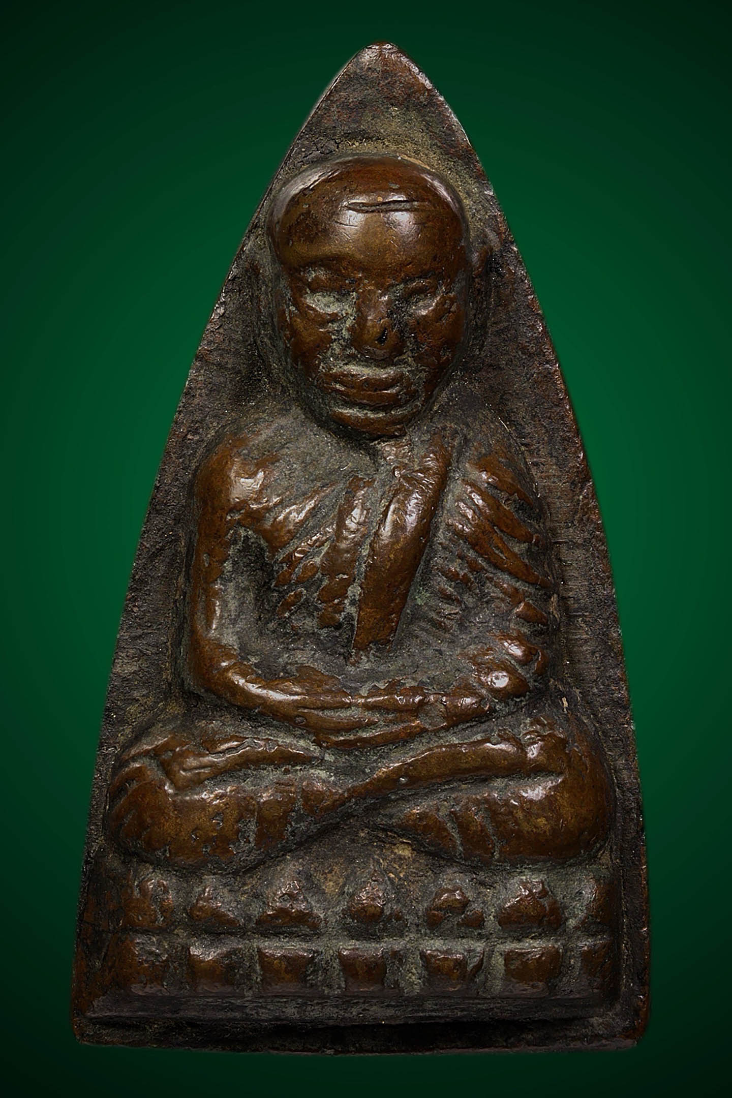 รูปหล่อปั้มหลวงปู่เขียว วัดหรงบล รุ่นแรก ปี 2513 เนื้อทองเหลืองรมดำ จังหวัดนครศรีธรรมราช (KA0926)