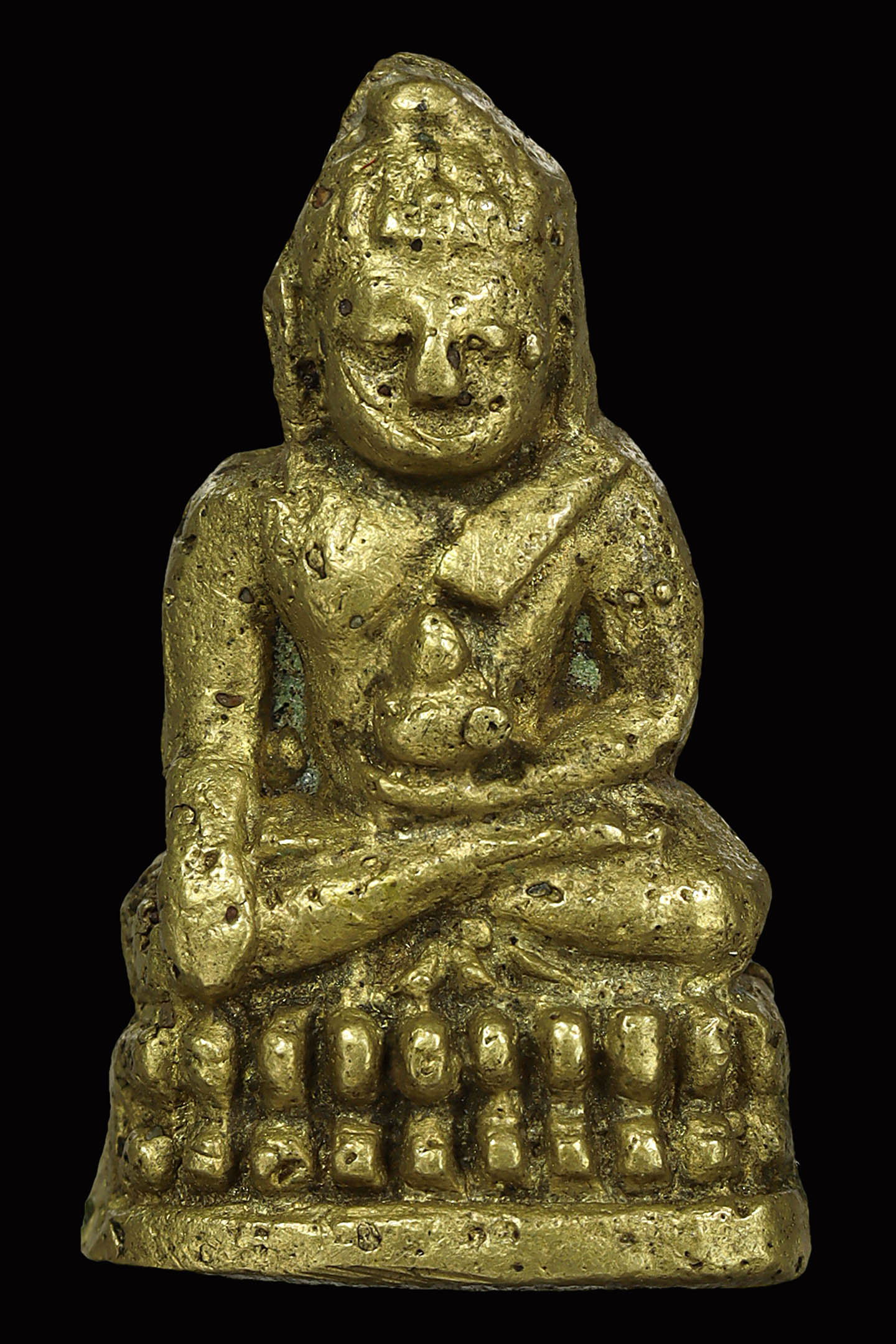 พระพุทธชินราชหลวงพ่อเงิน วัดดอนยายหอม รุ่นแรก พิมพ์เข่าลอย ปี 2487 เนื้อโลหะผสม จังหวัดนครปฐม (KA1006)