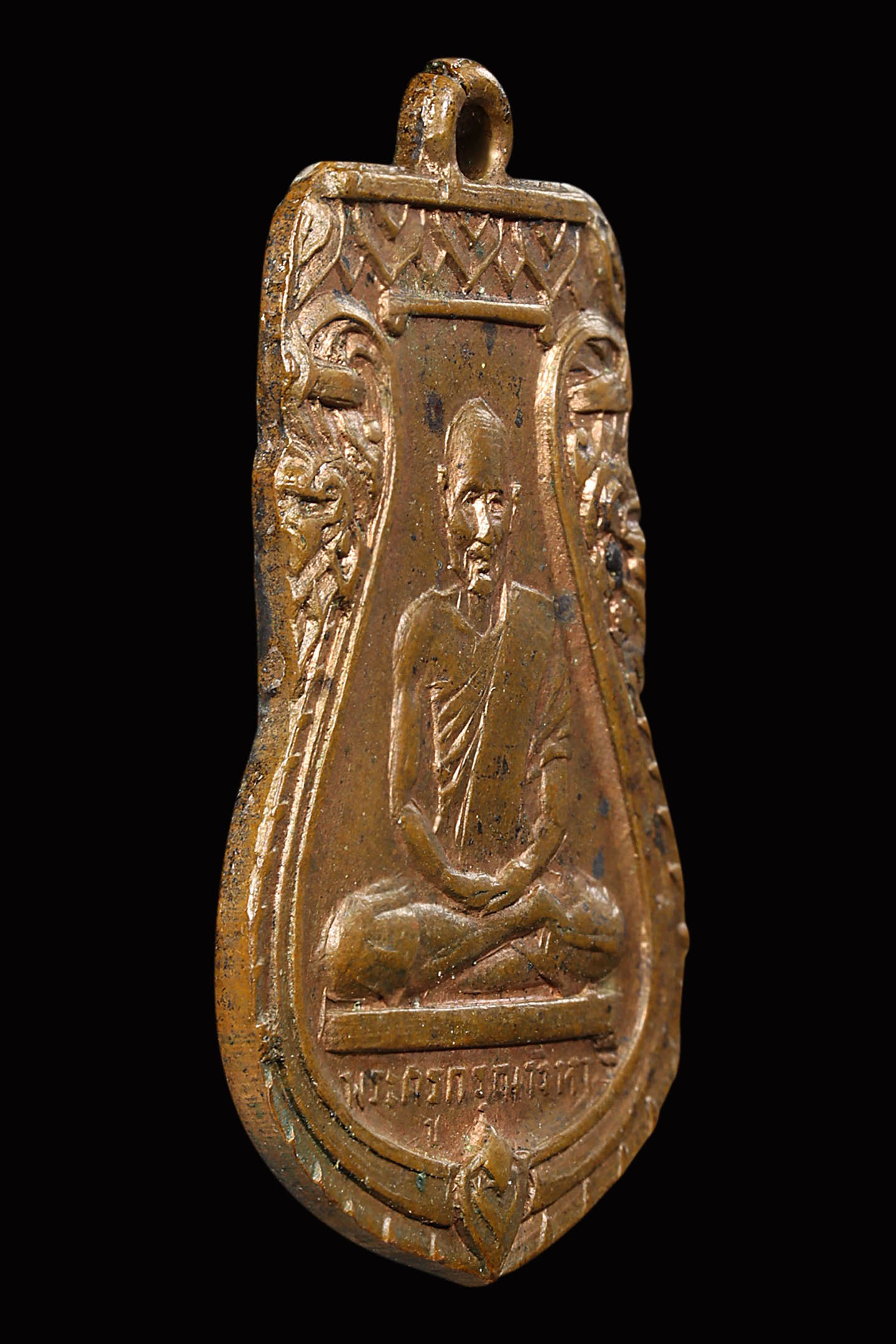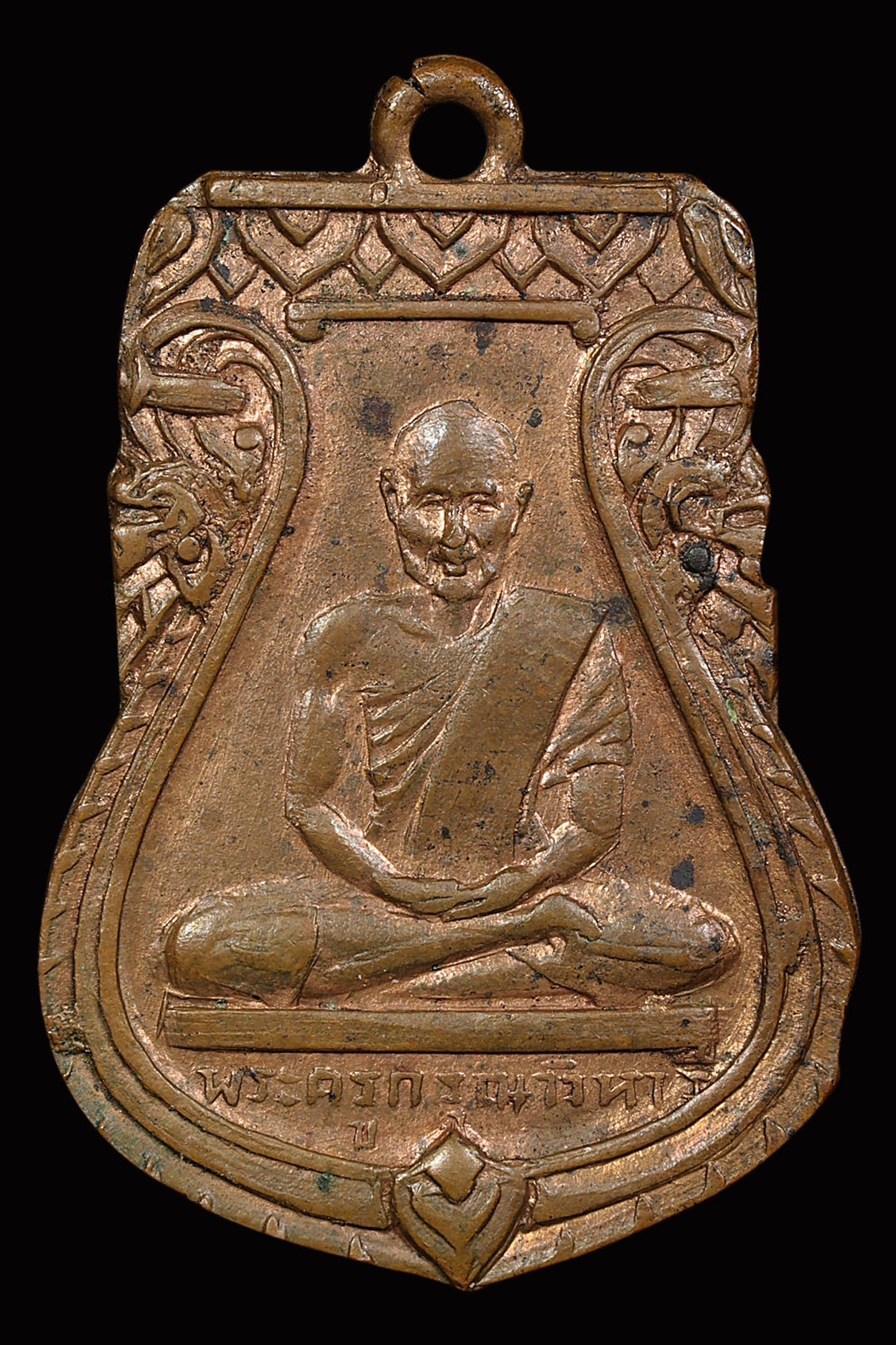 หลวงปู่ทวด วัดช้างให้ รุ่น 3 บล็อก 2 จุดประคตเต็ม ปี 2504 เนื้อทองแดงรมดำ จังหวัดปัตตานี (KA0851)