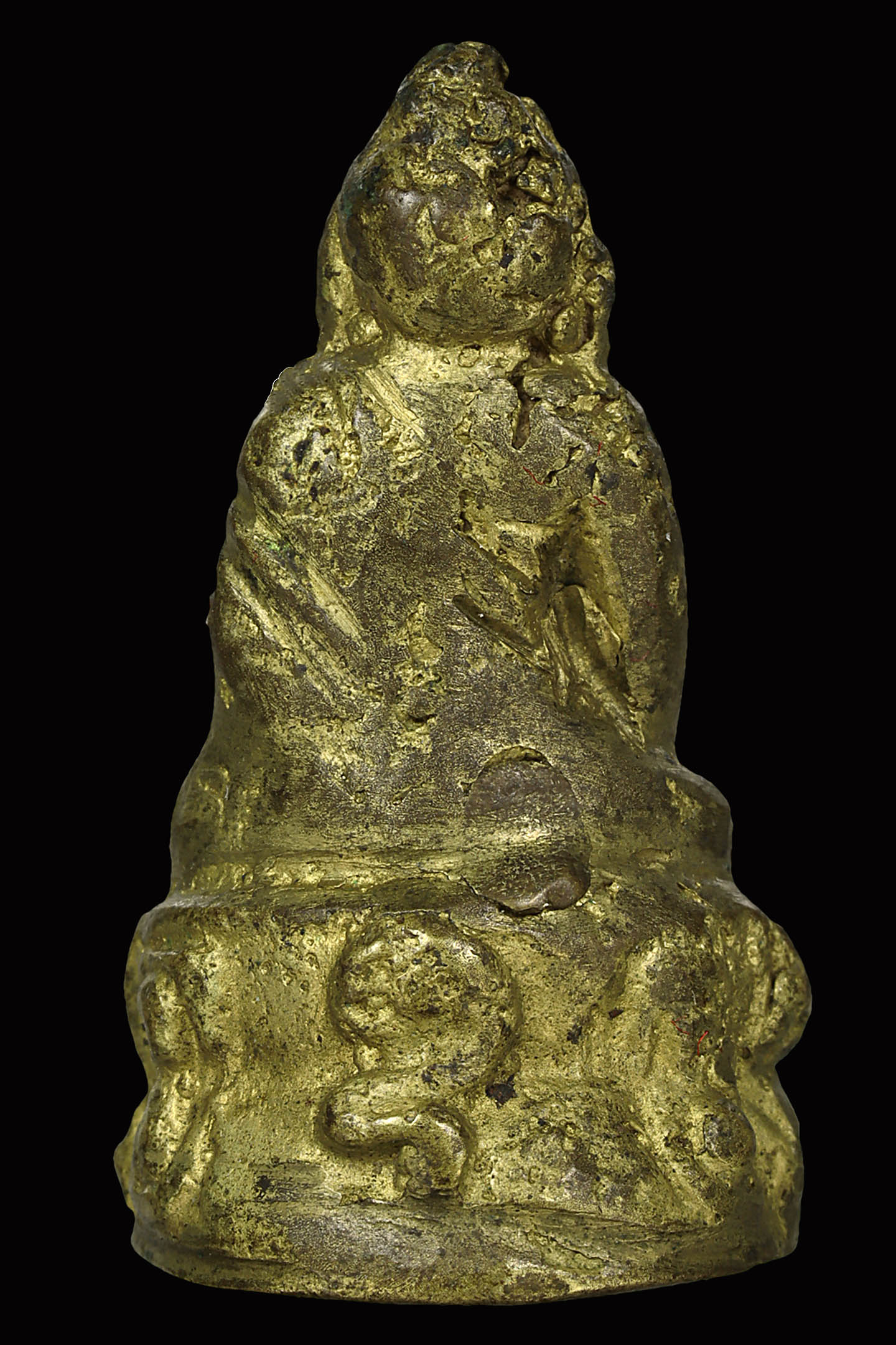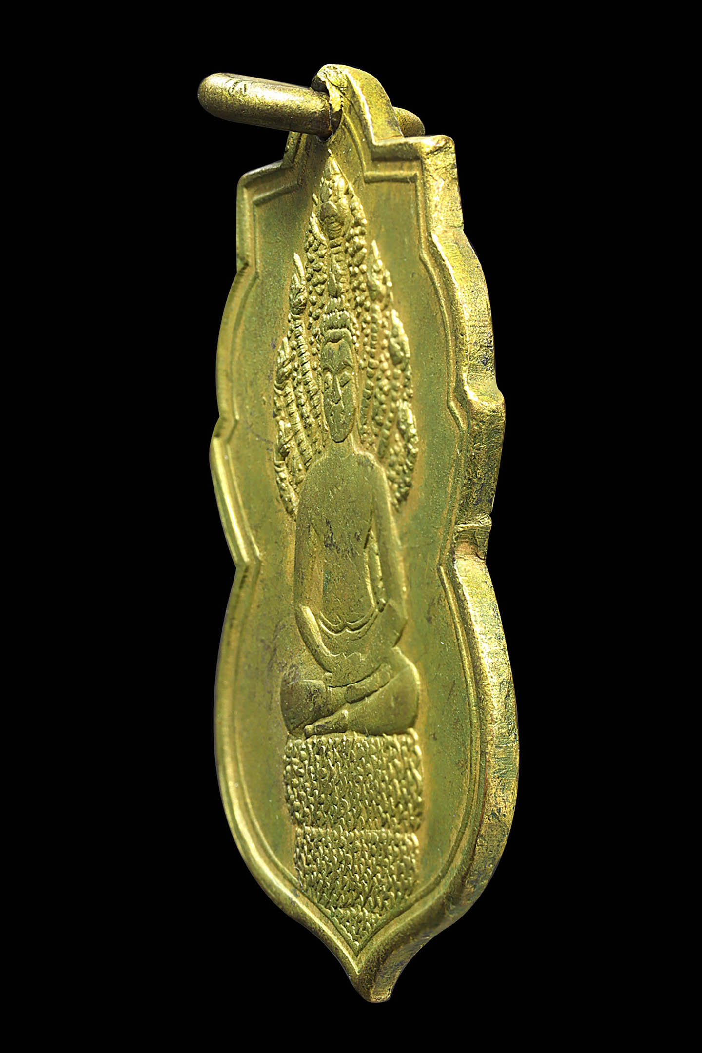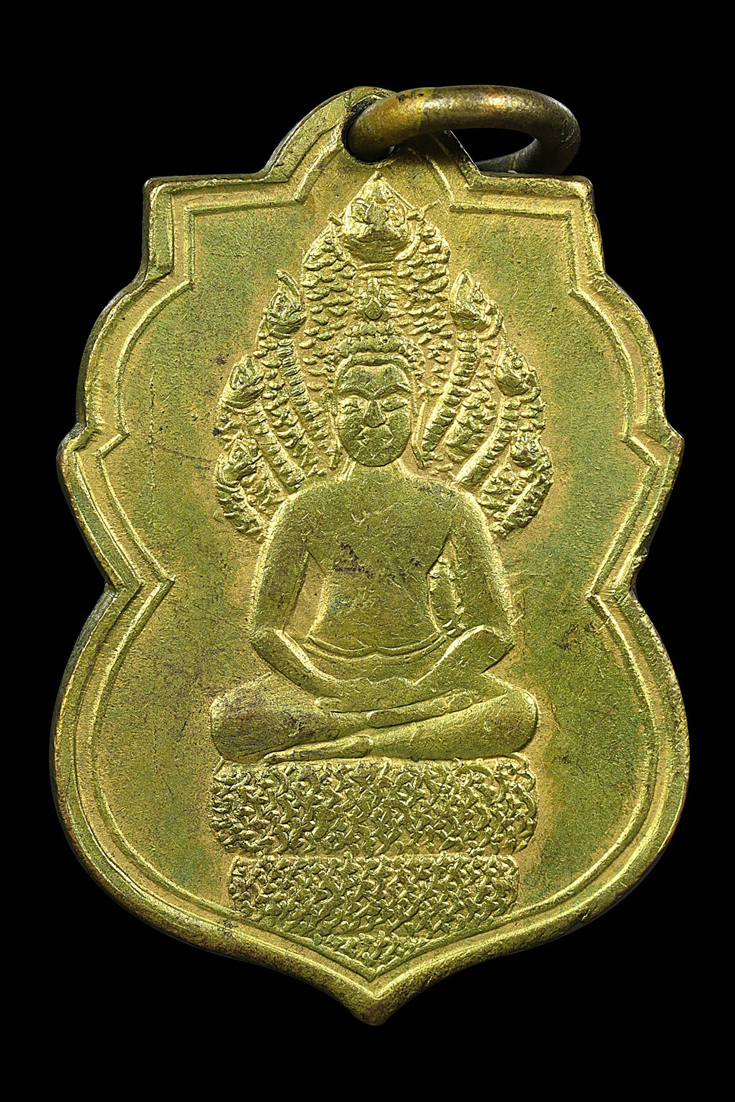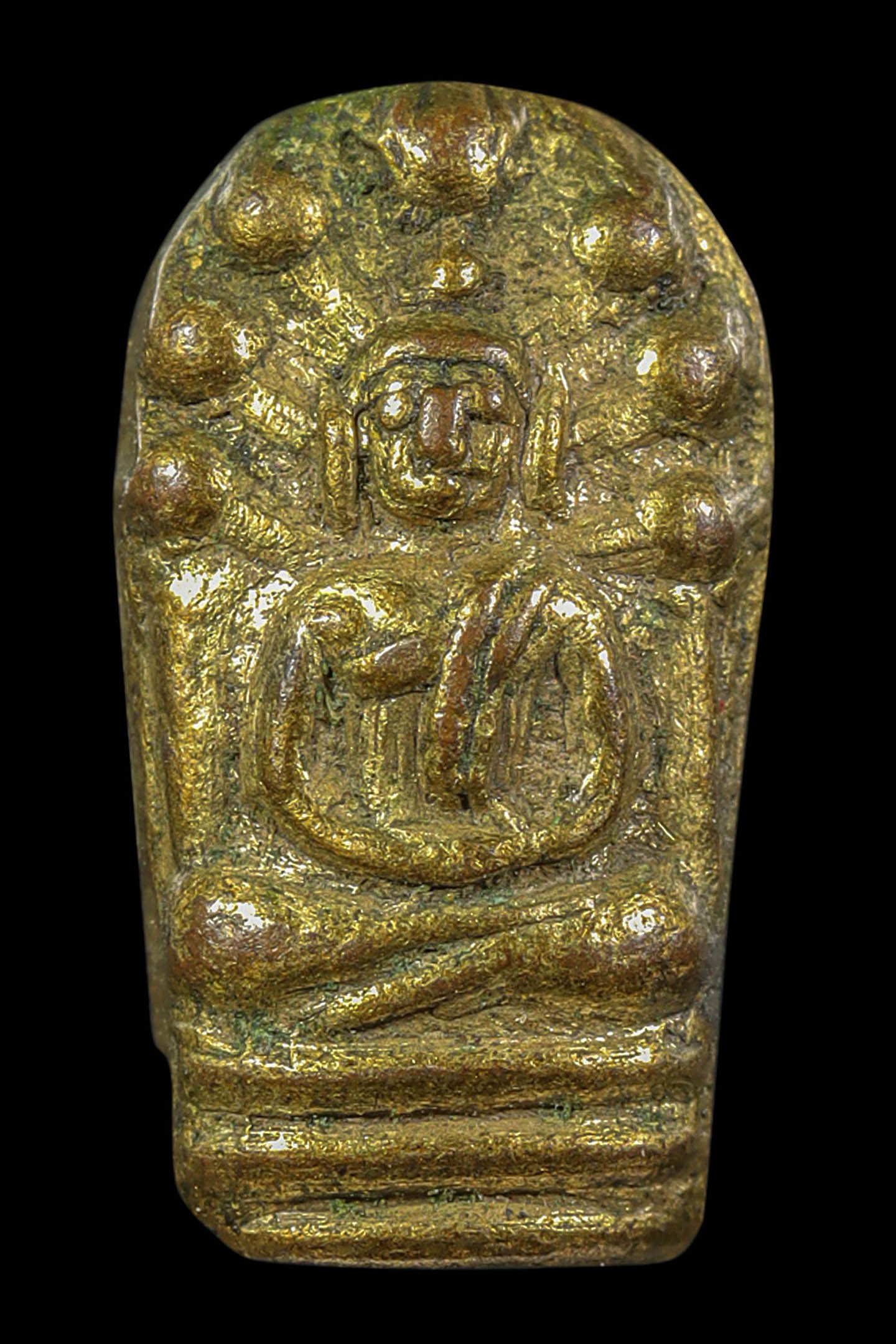 พระนาคปรกใบมะขามพุฒาจารย์นวม วัดอนงคาราม รุ่นแรก พิมพ์ฐาน 3 ชั้น ปี 2463 เนื้อทองแดงกะไหล่ทอง จังหวัดกรุงเทพมหานคร (KA0828)