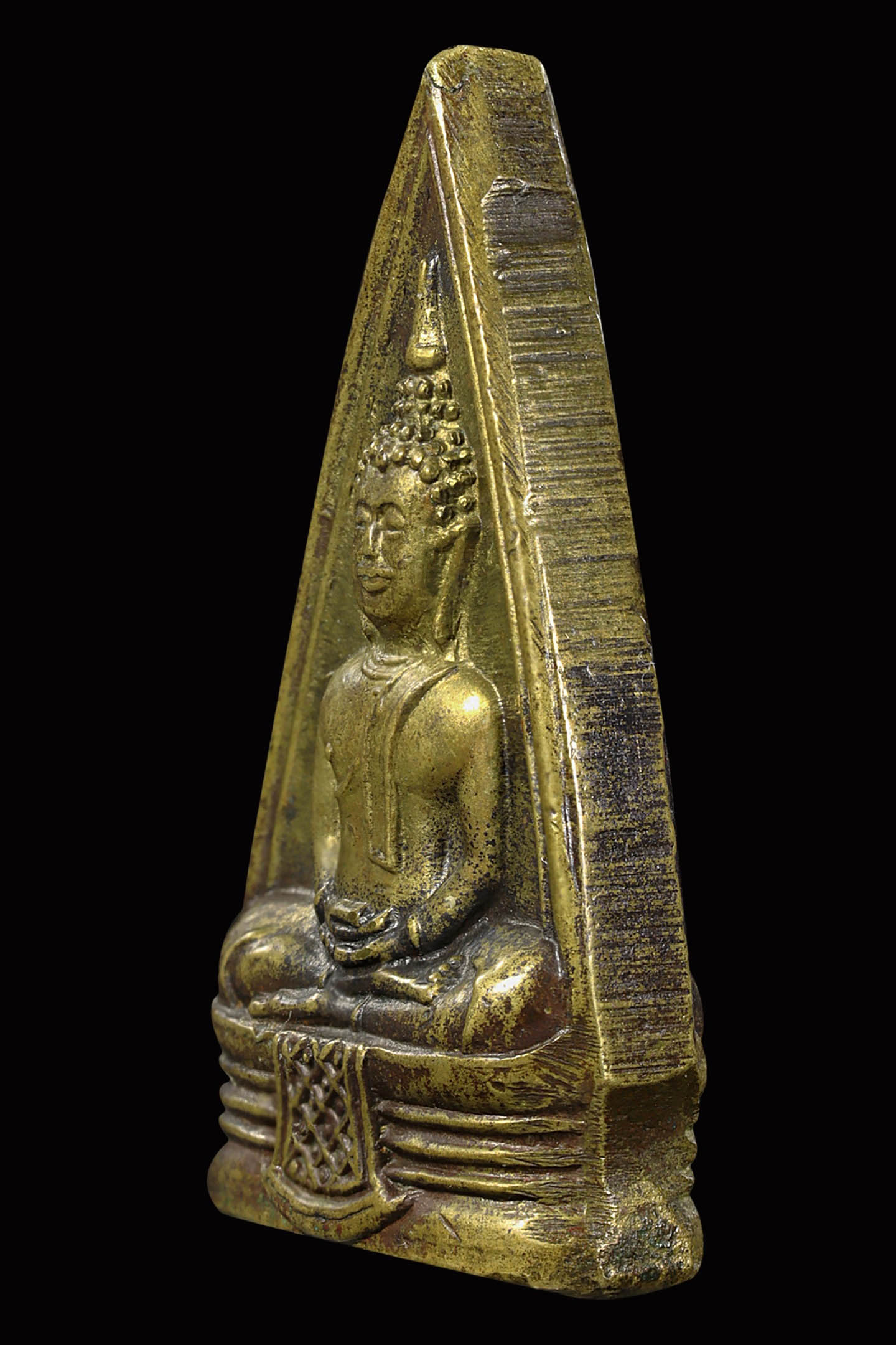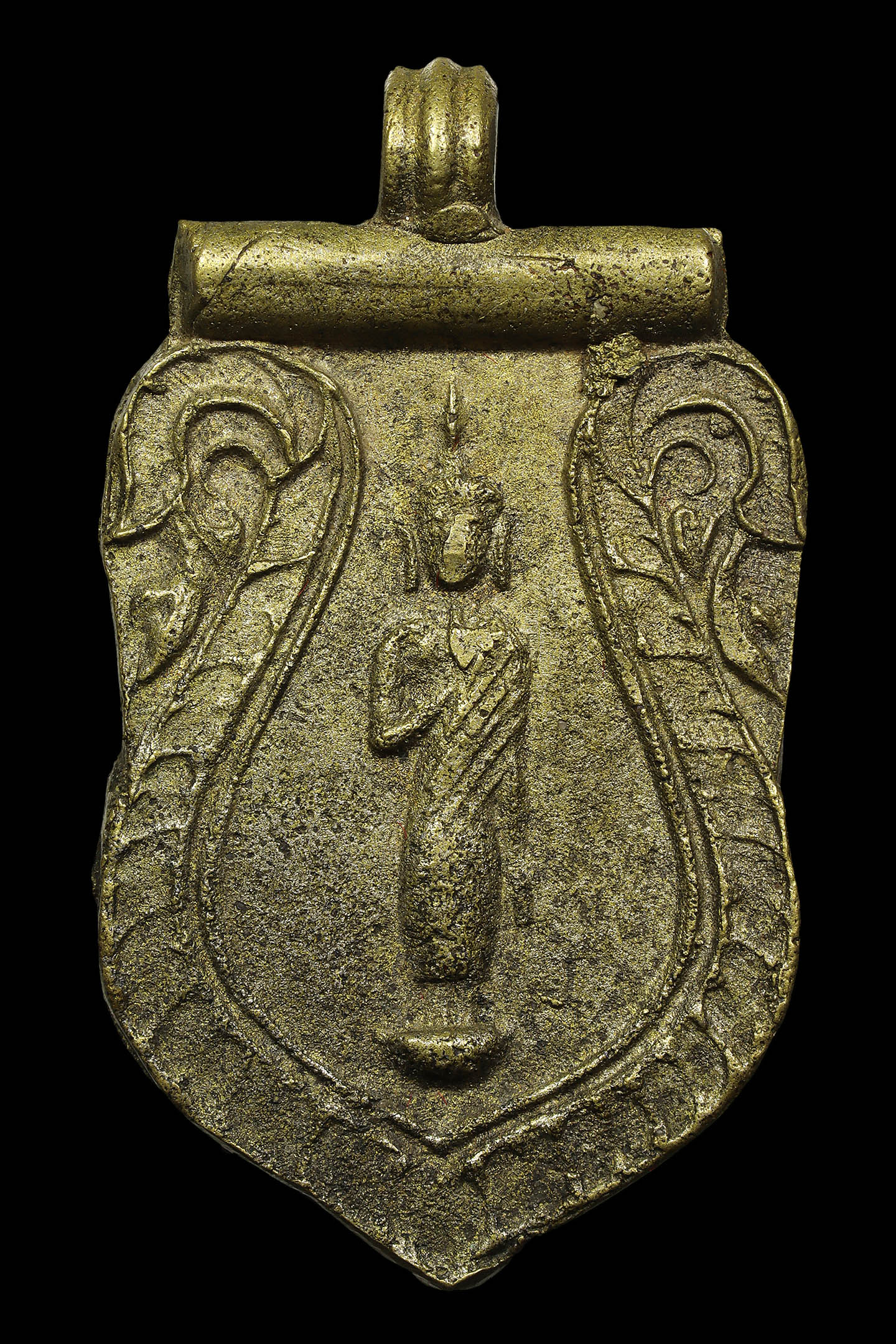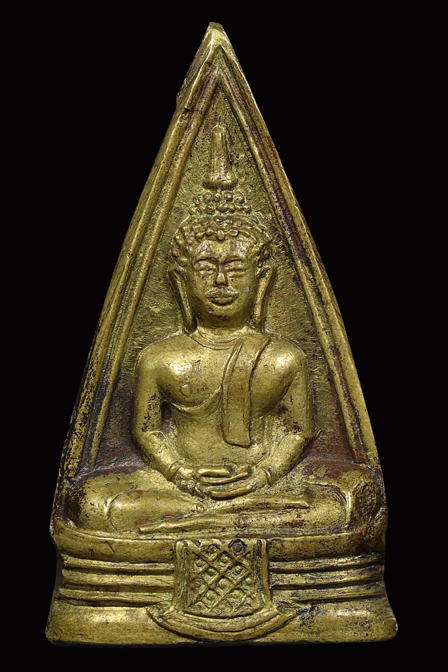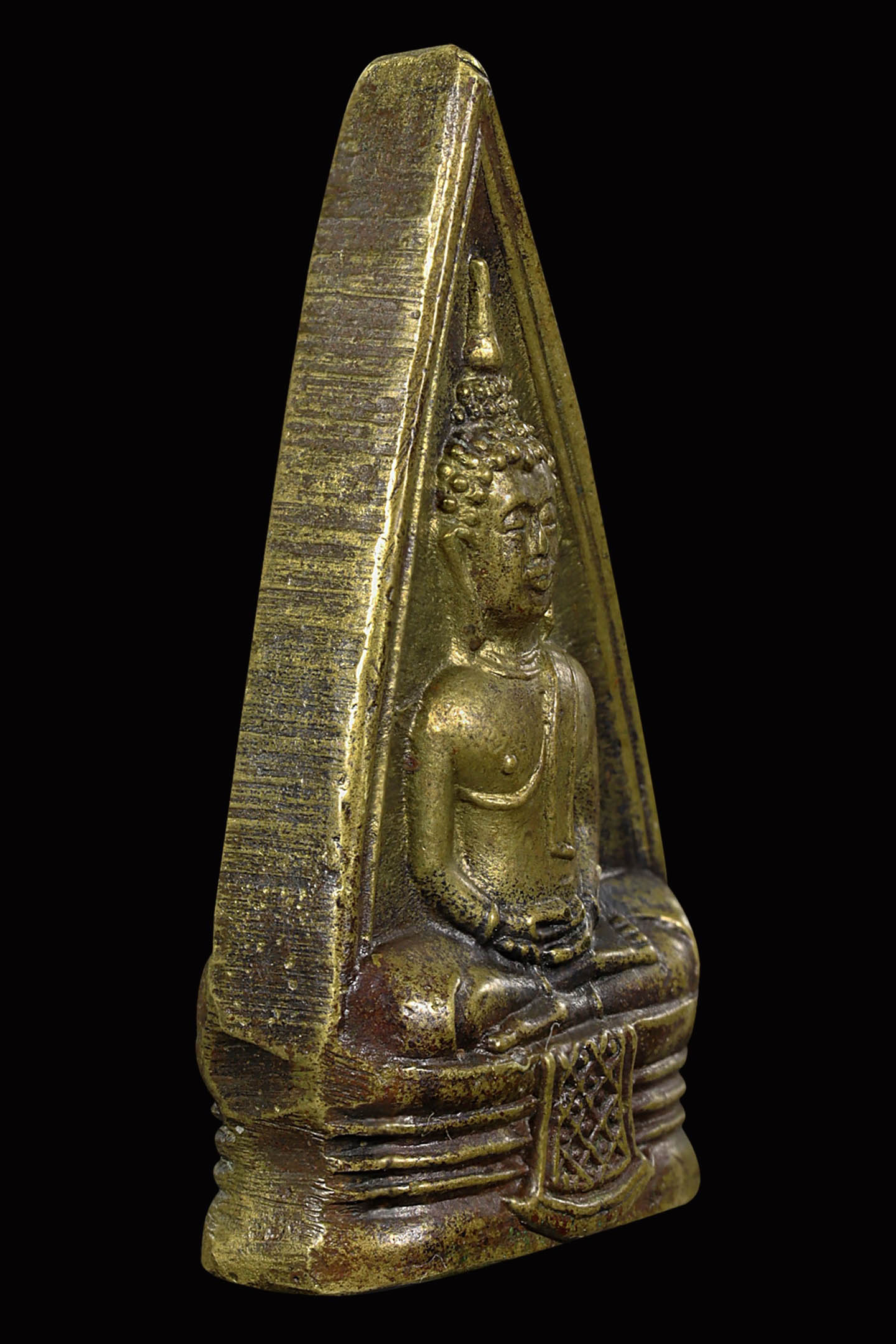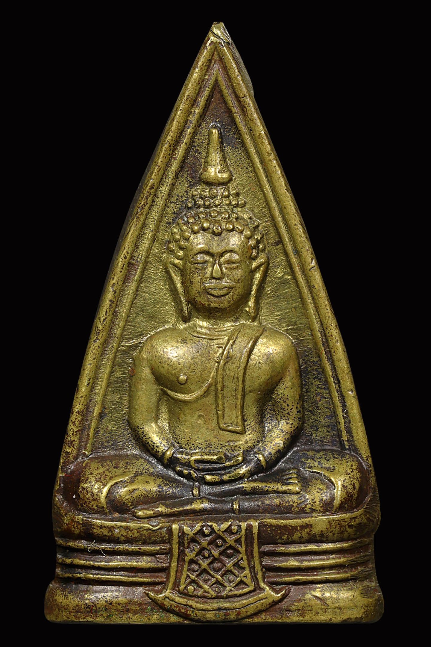 พระนาคปรกใบมะขามพุฒาจารย์นวม วัดอนงคาราม รุ่นแรก พิมพ์ฐาน 3 ชั้น ปี 2463 เนื้อทองแดงกะไหล่ทอง จังหวัดกรุงเทพมหานคร (KA0828)