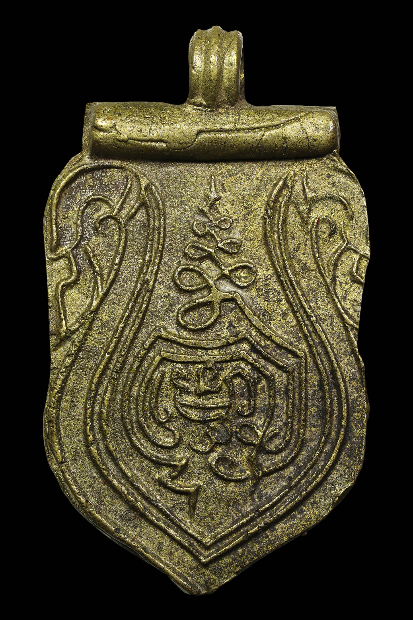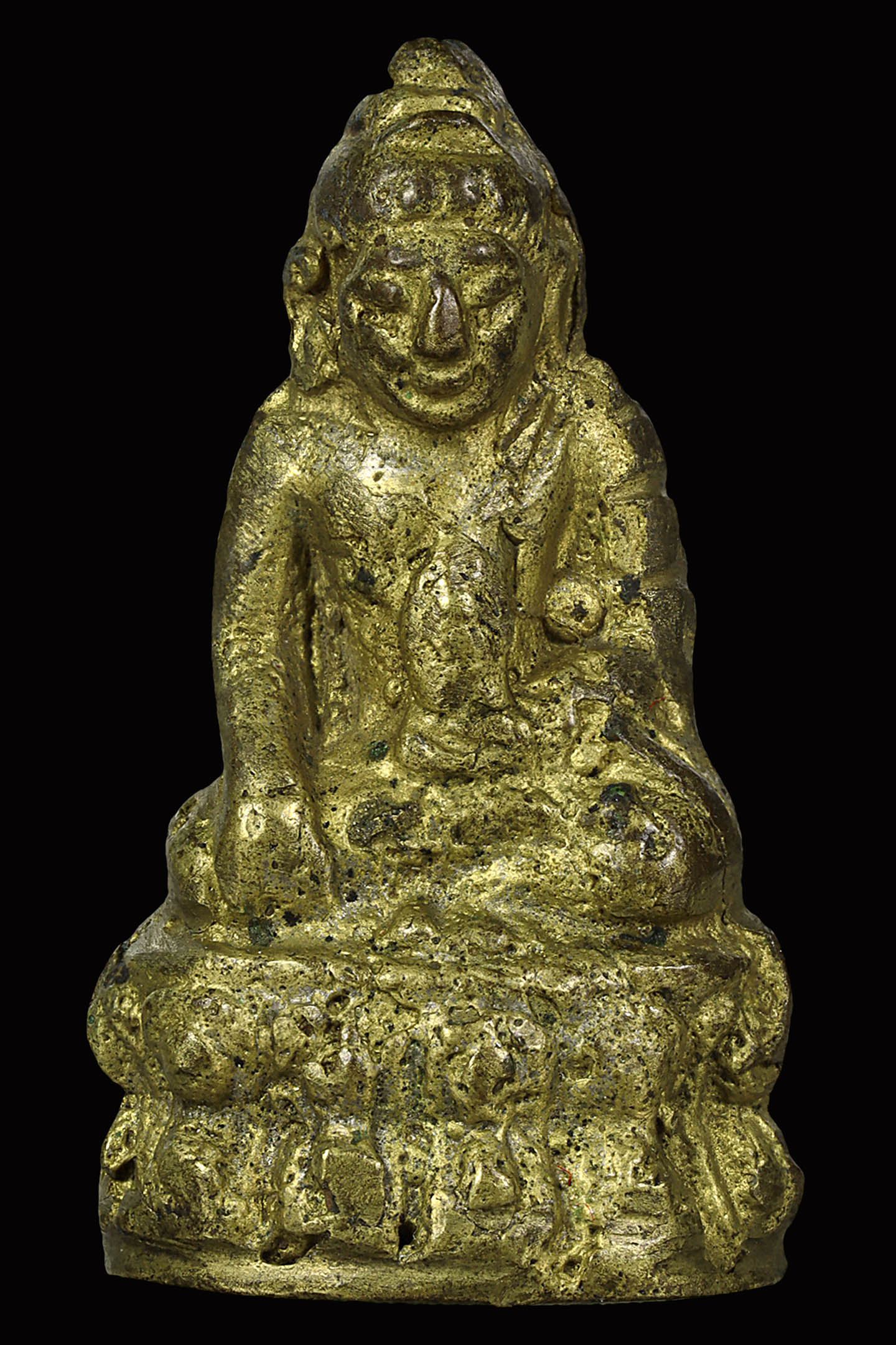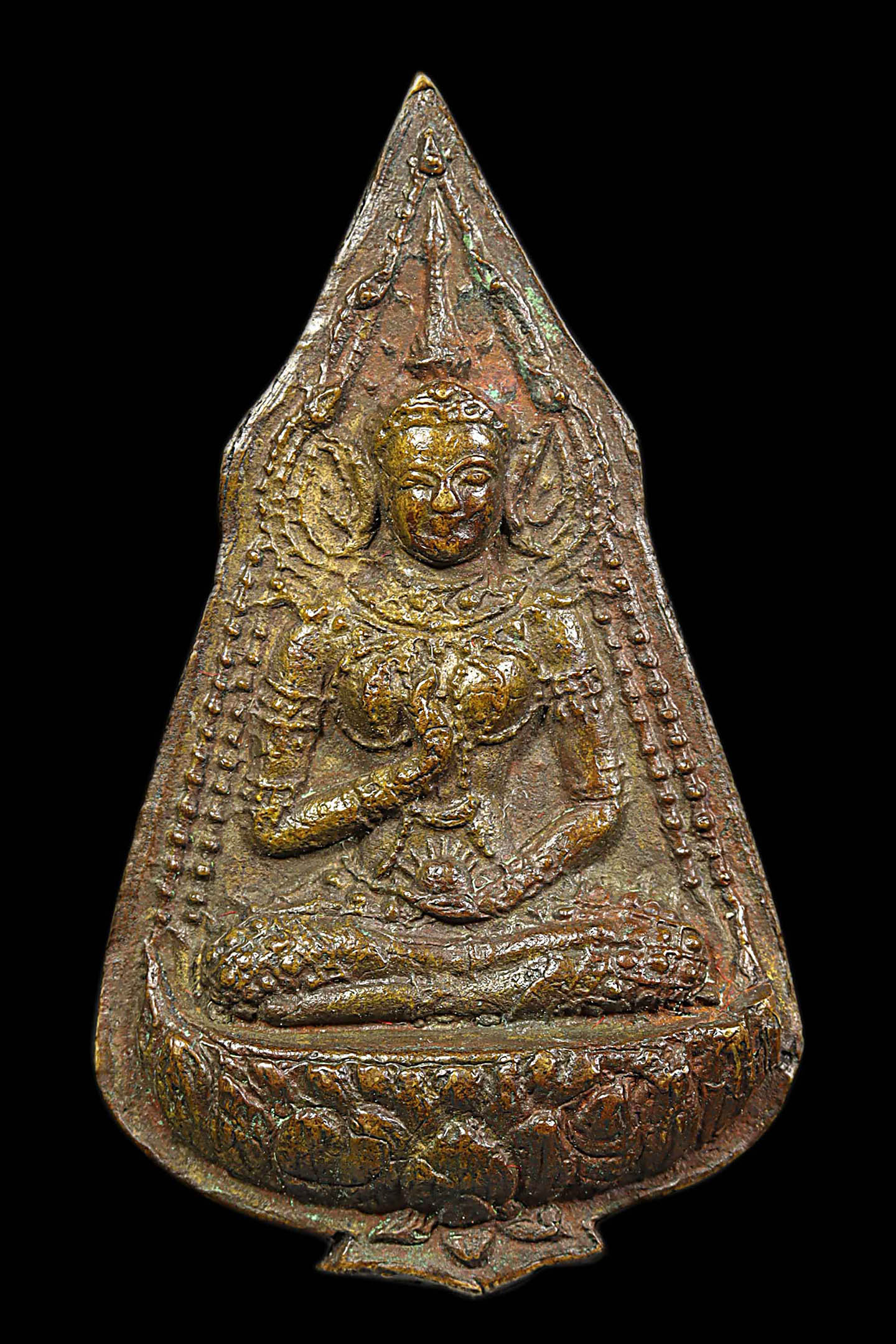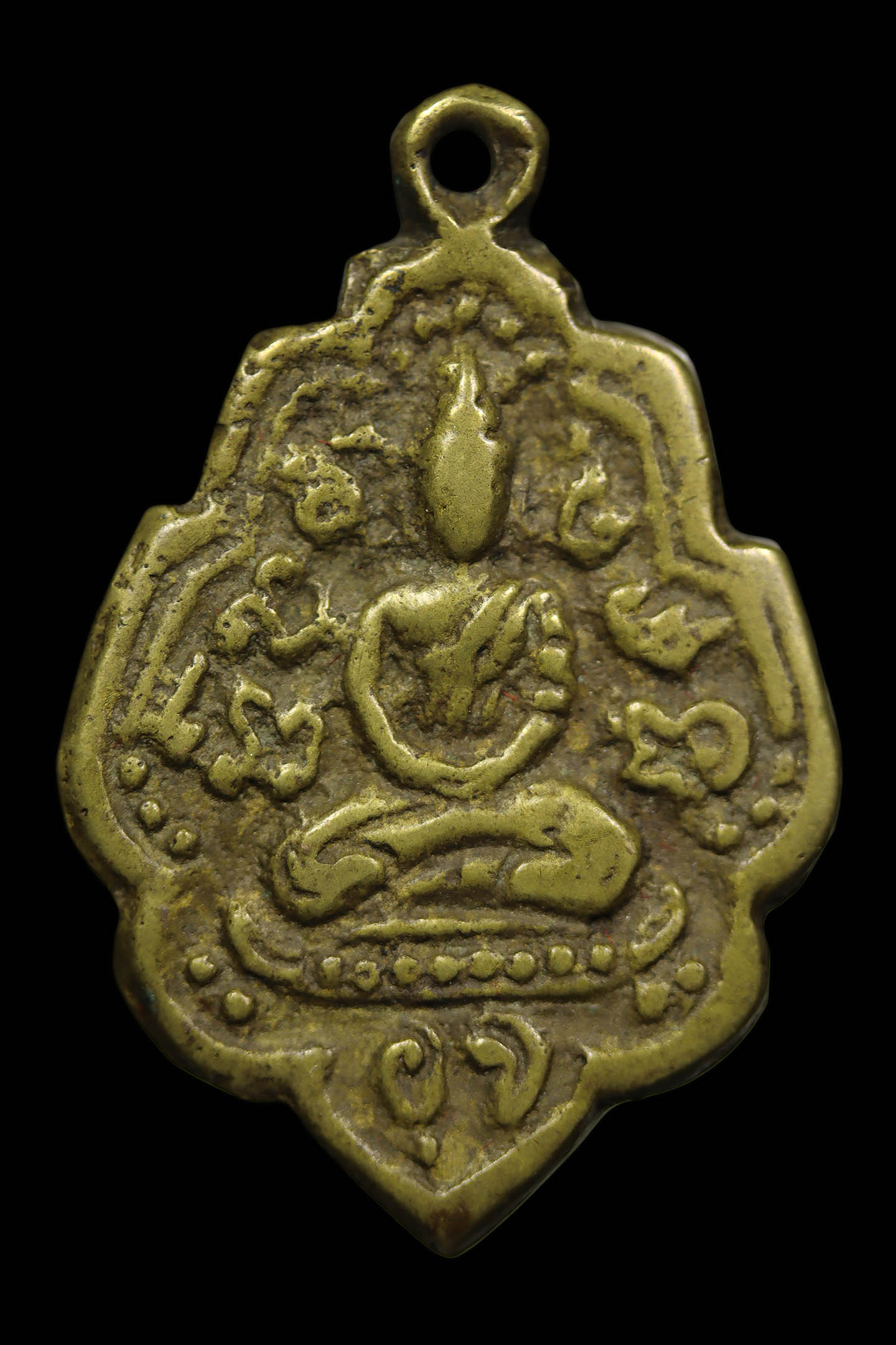 พระนาคปรกใบมะขามพุฒาจารย์นวม วัดอนงคาราม รุ่นแรก พิมพ์ฐาน 3 ชั้น ปี 2463 เนื้อทองแดงกะไหล่ทอง จังหวัดกรุงเทพมหานคร (KA0828)