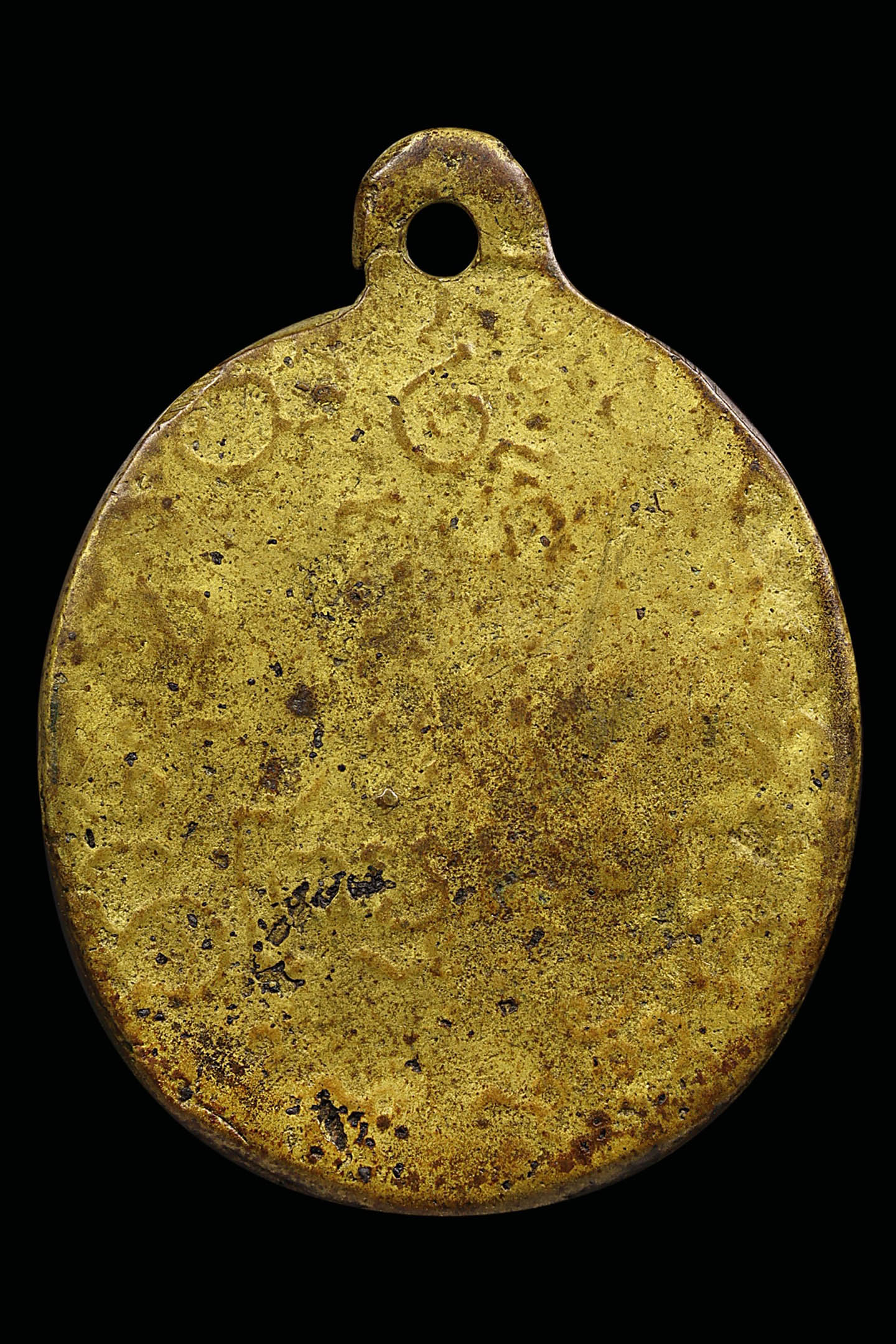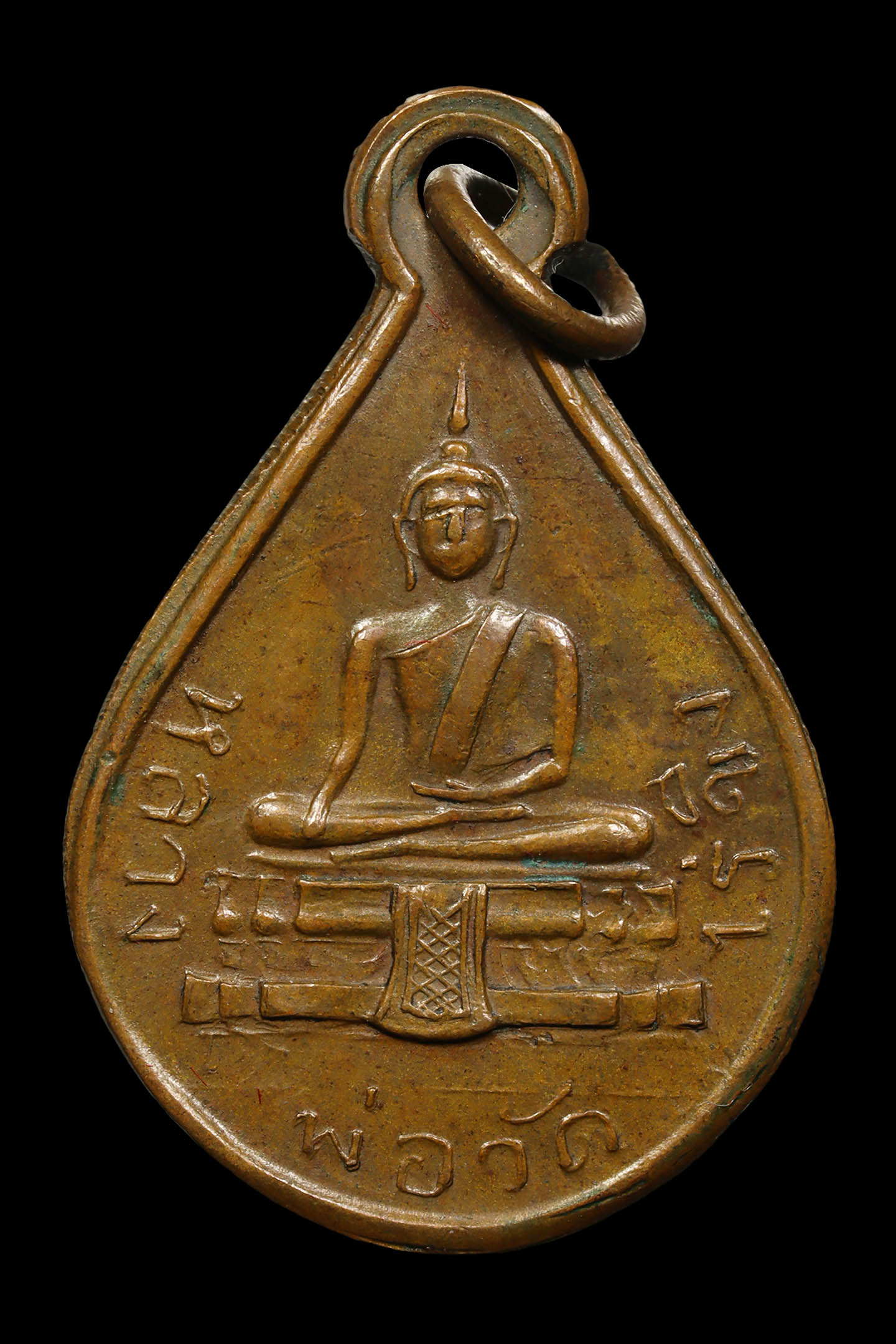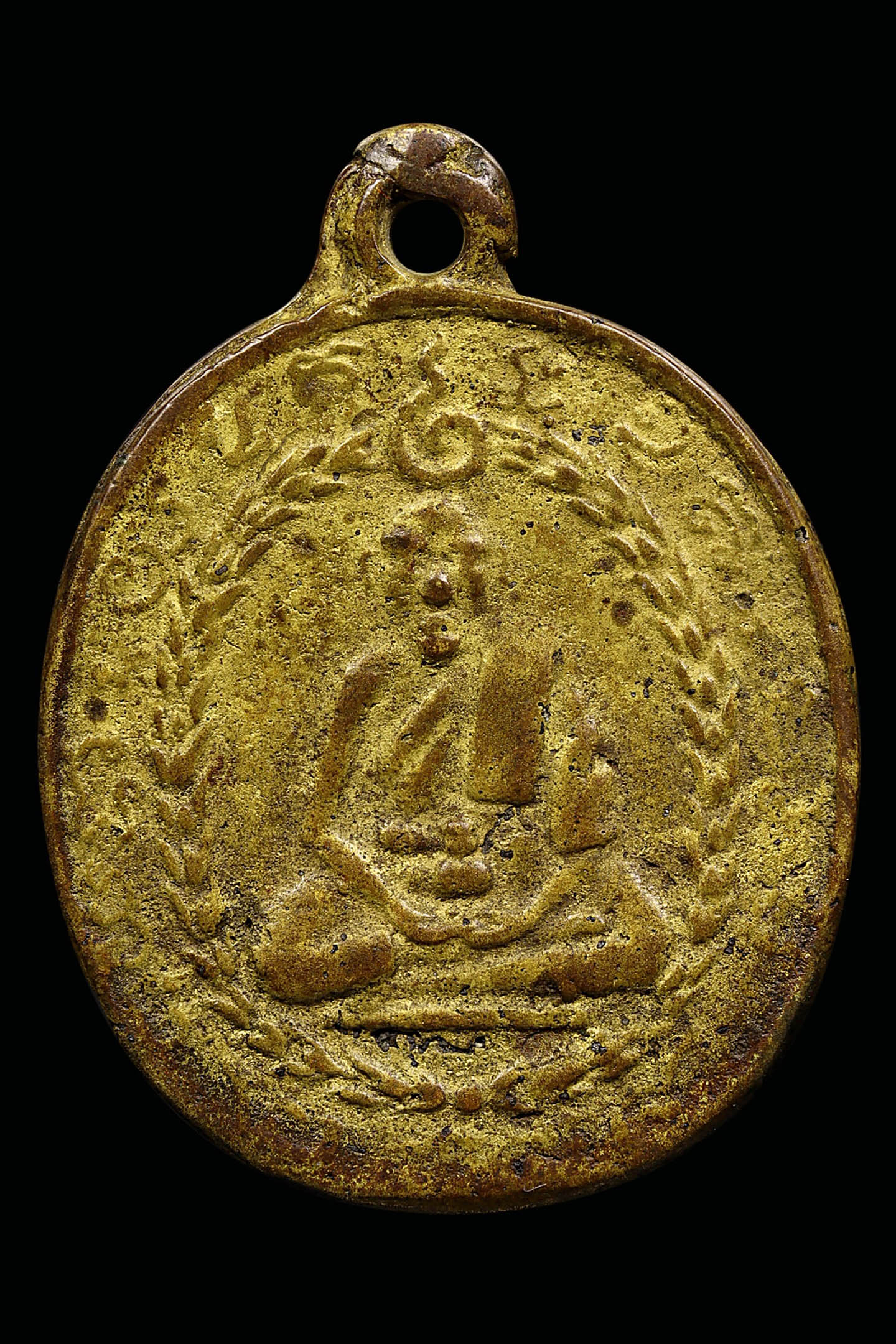 เหรียญหล่อหลวงพ่อแก้ว วัดพวงมาลัย รุ่นแรก พิมพ์เศียรแหลม ปี 2459 เนื้อโลหะผสม จังหวัดสมุทรสงคราม (KA0901)