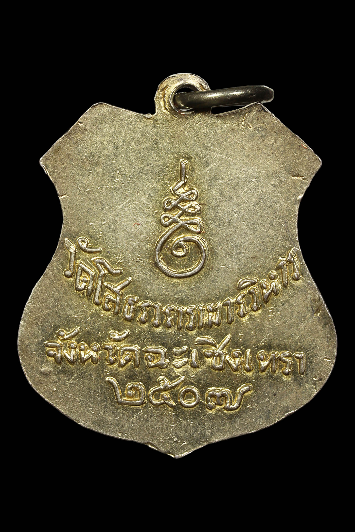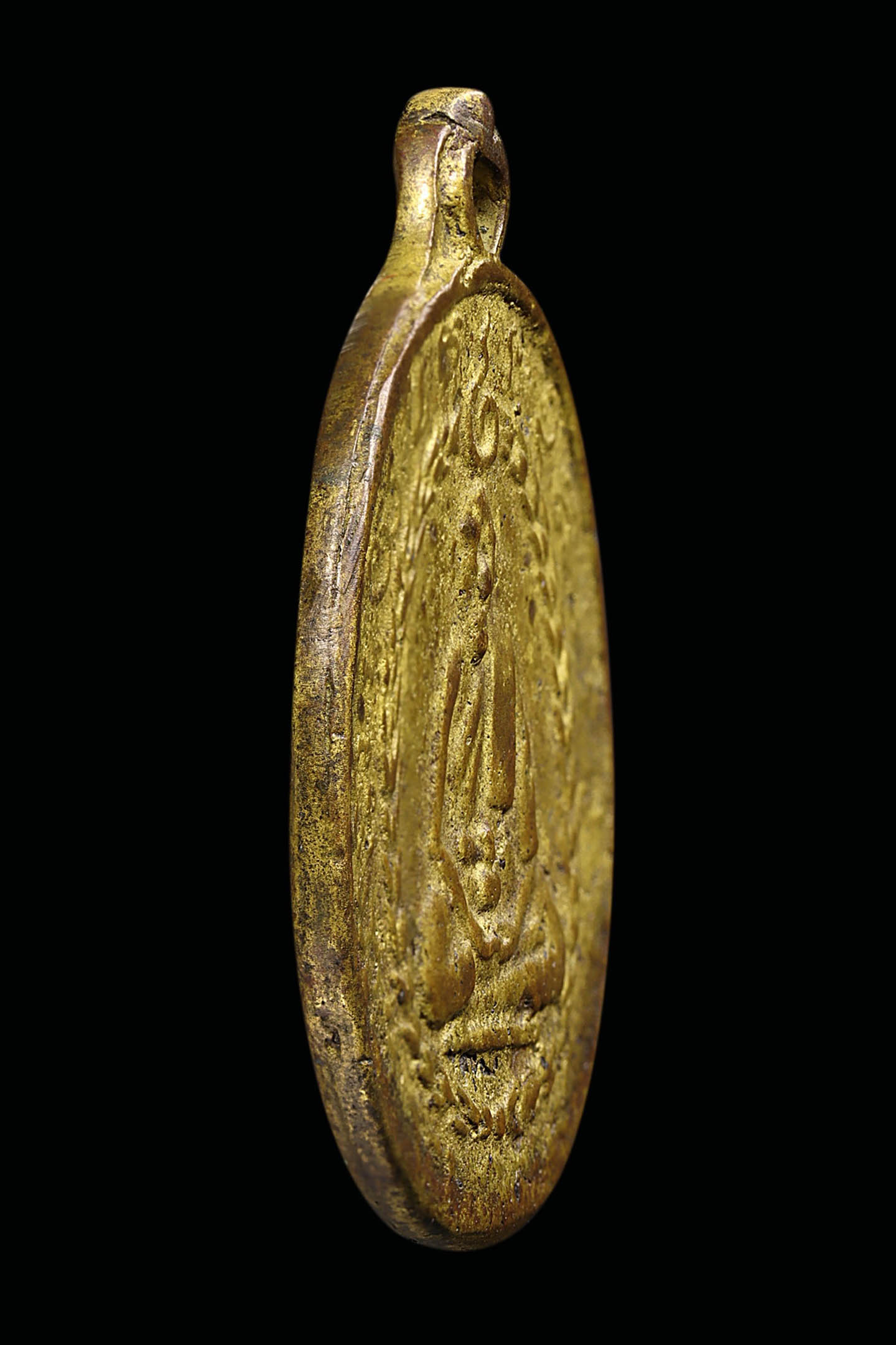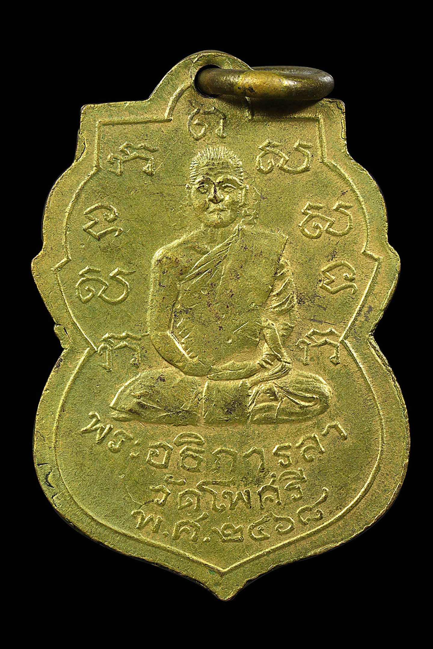 พระอธิการลา วัดโพธิ์ศรี รุ่นแรก ปี 2468 เนื้อทองแดงกะไหล่ทอง จังหวัดสิงห์บุรี (KA0829)