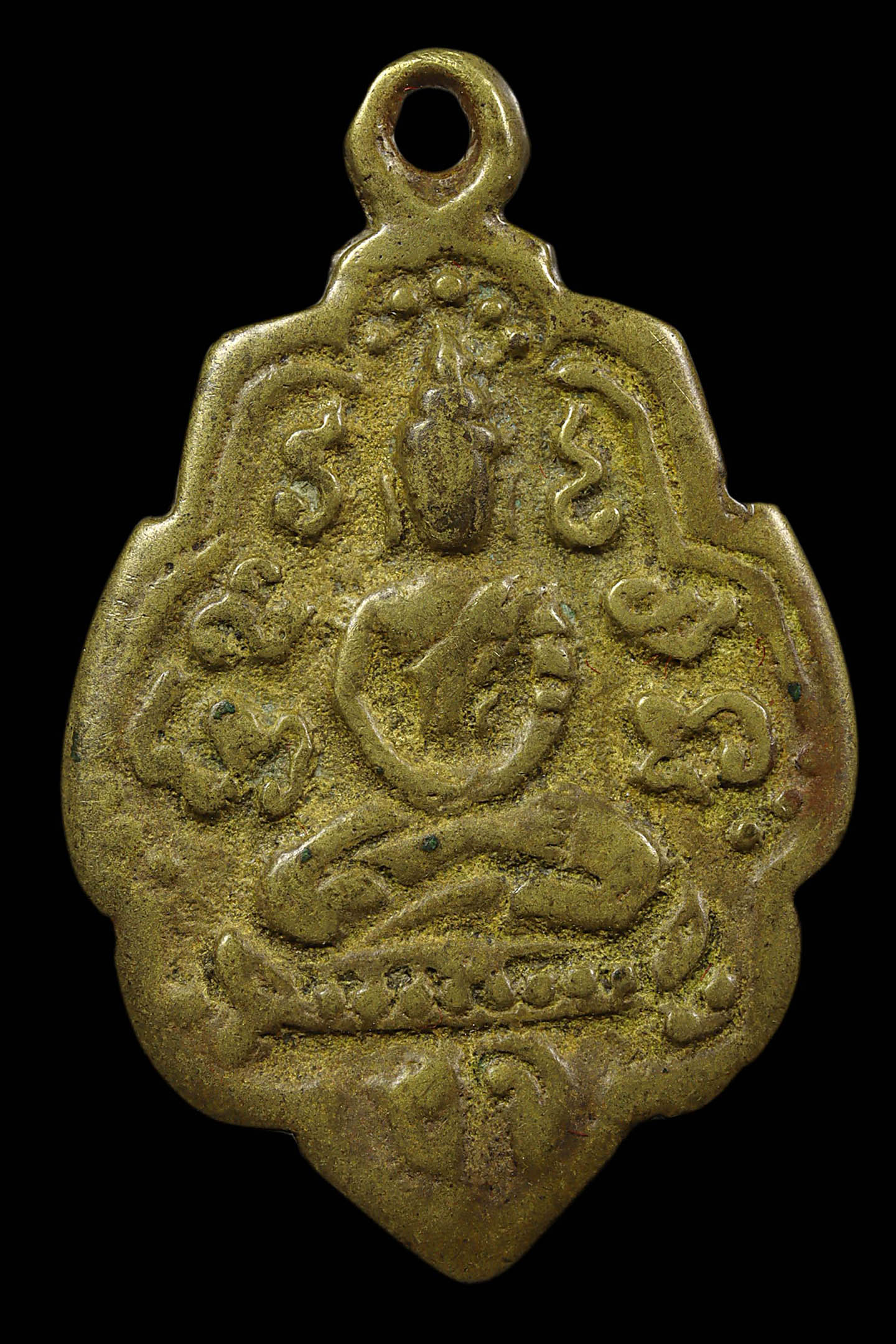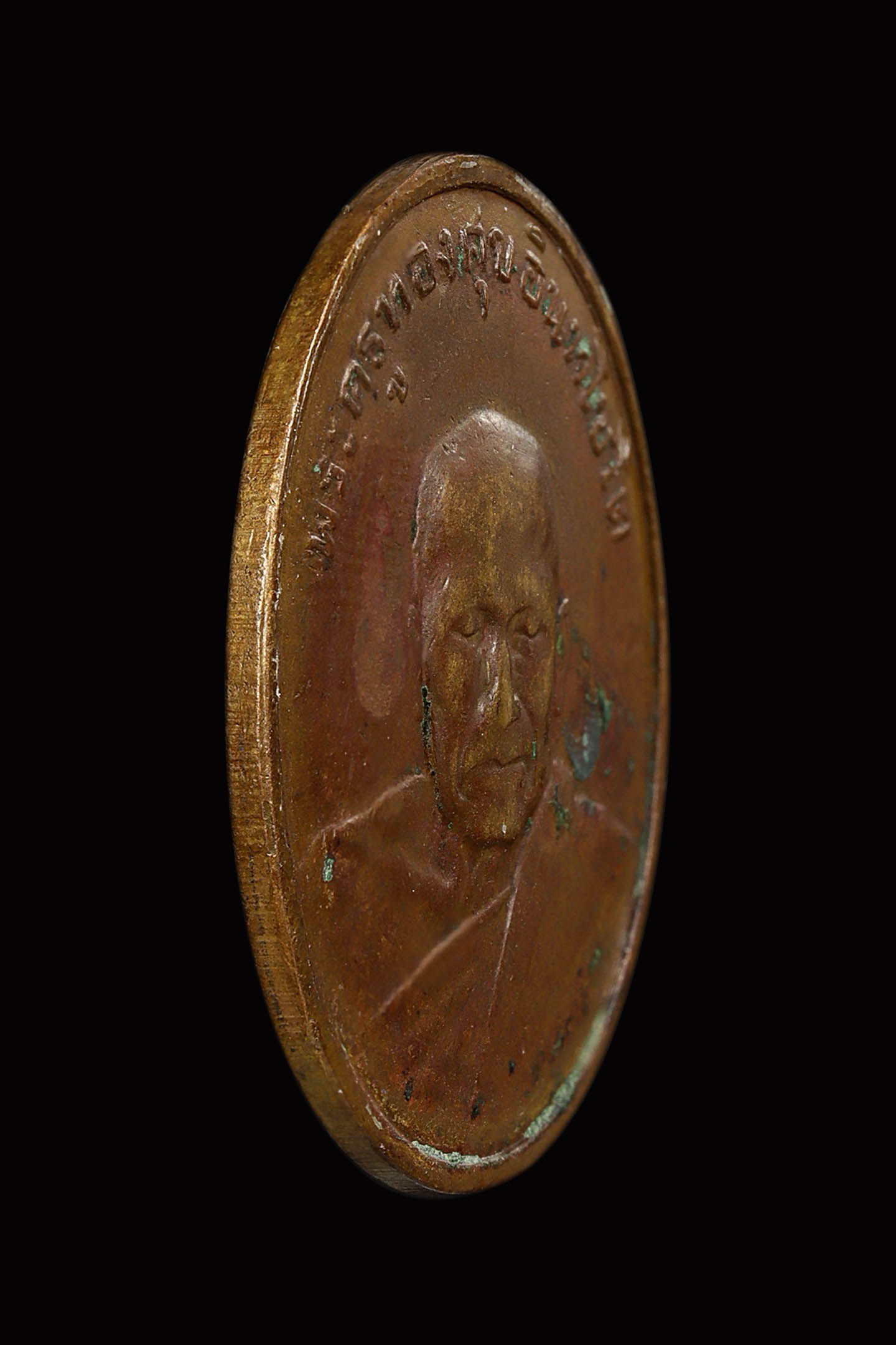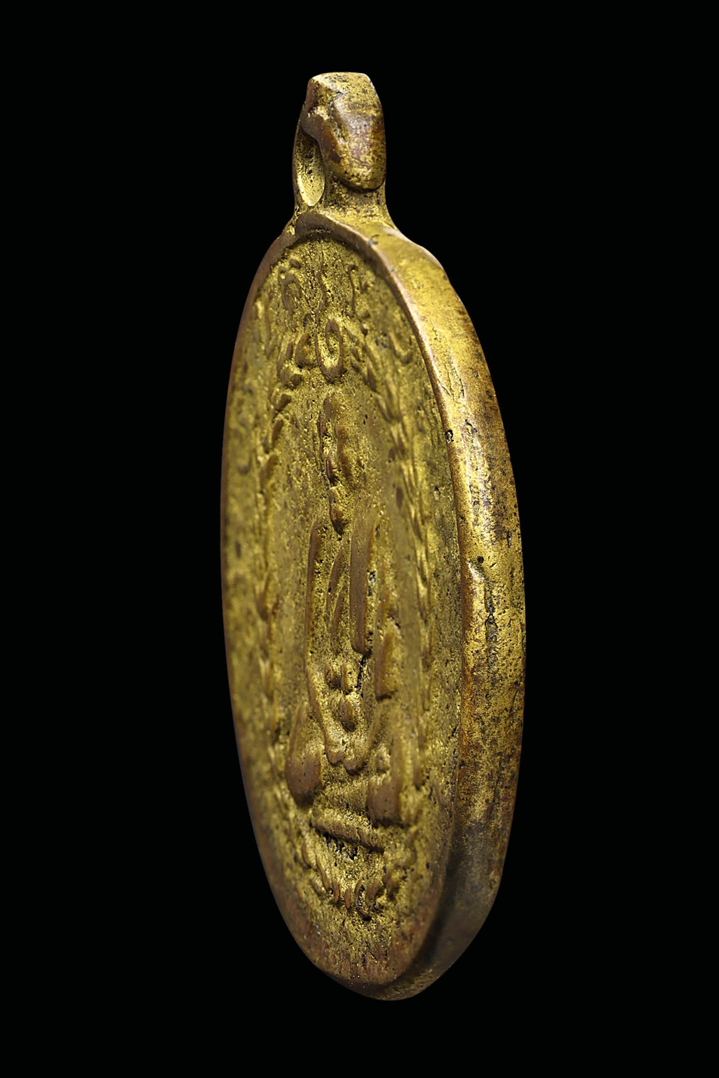 พระอธิการลา วัดโพธิ์ศรี รุ่นแรก ปี 2468 เนื้อทองแดงกะไหล่ทอง จังหวัดสิงห์บุรี (KA0829)