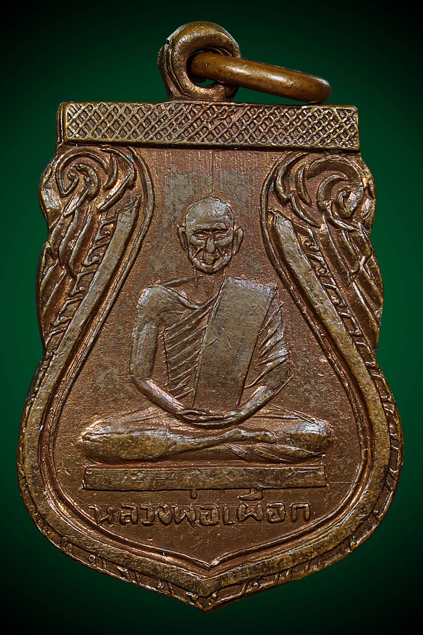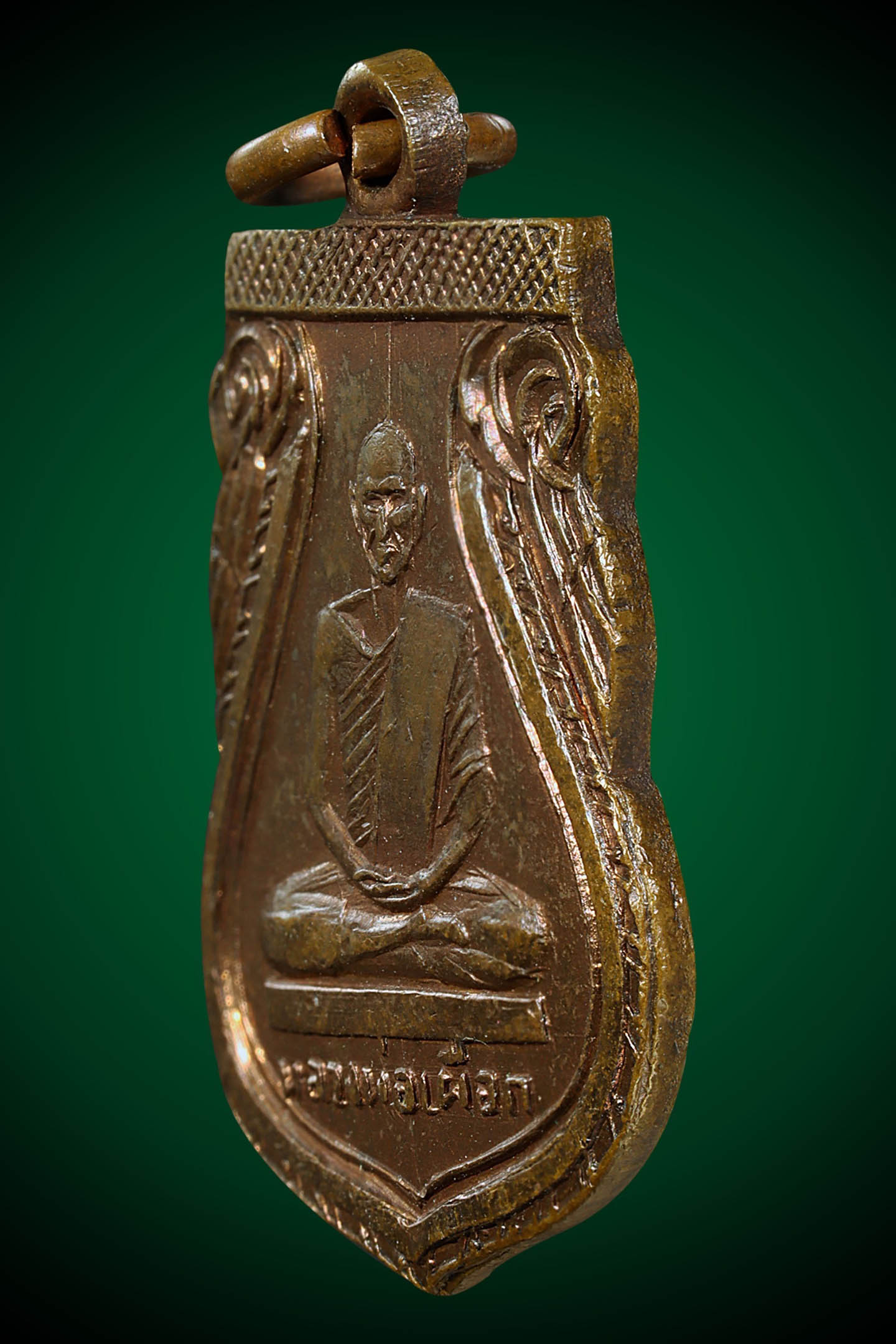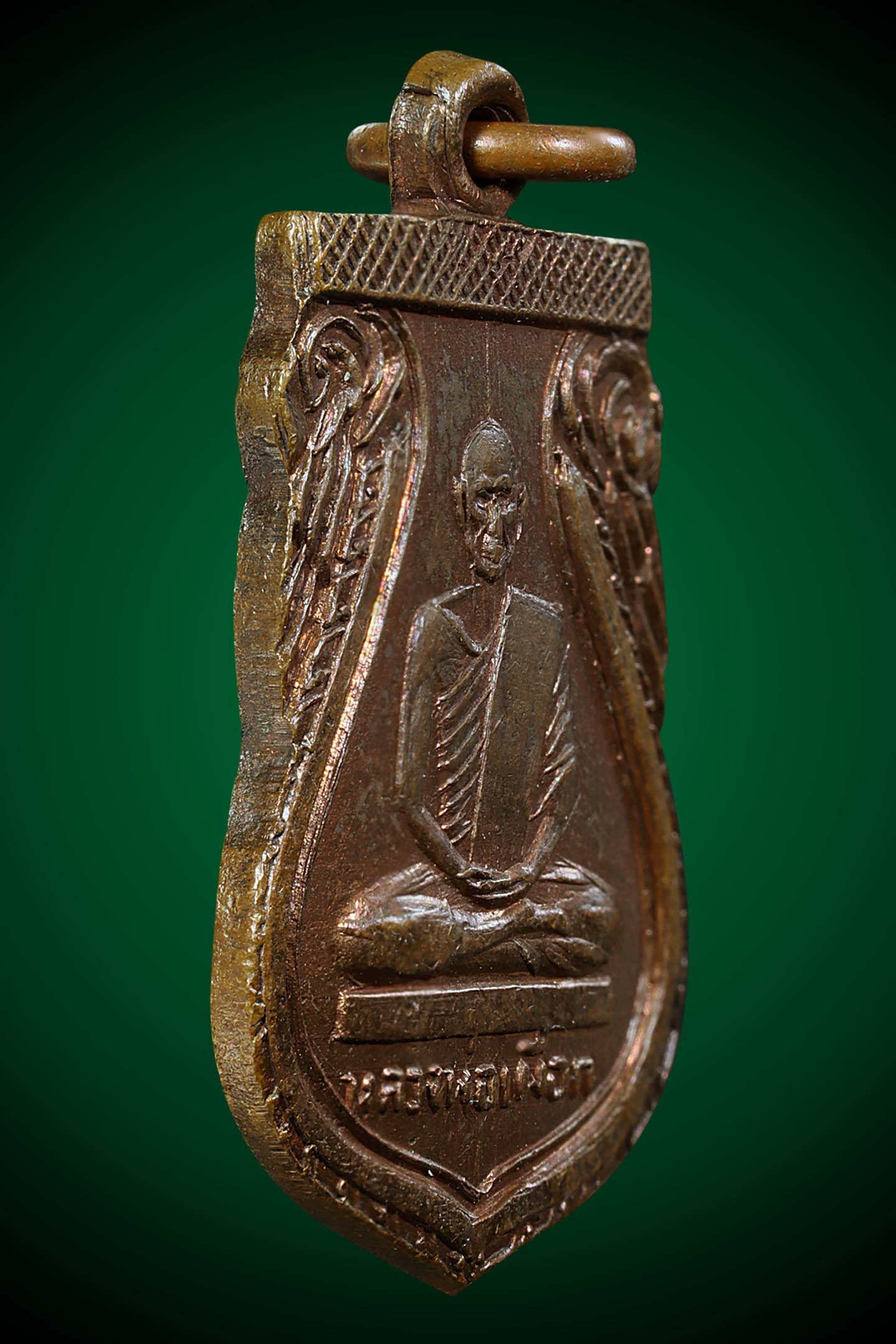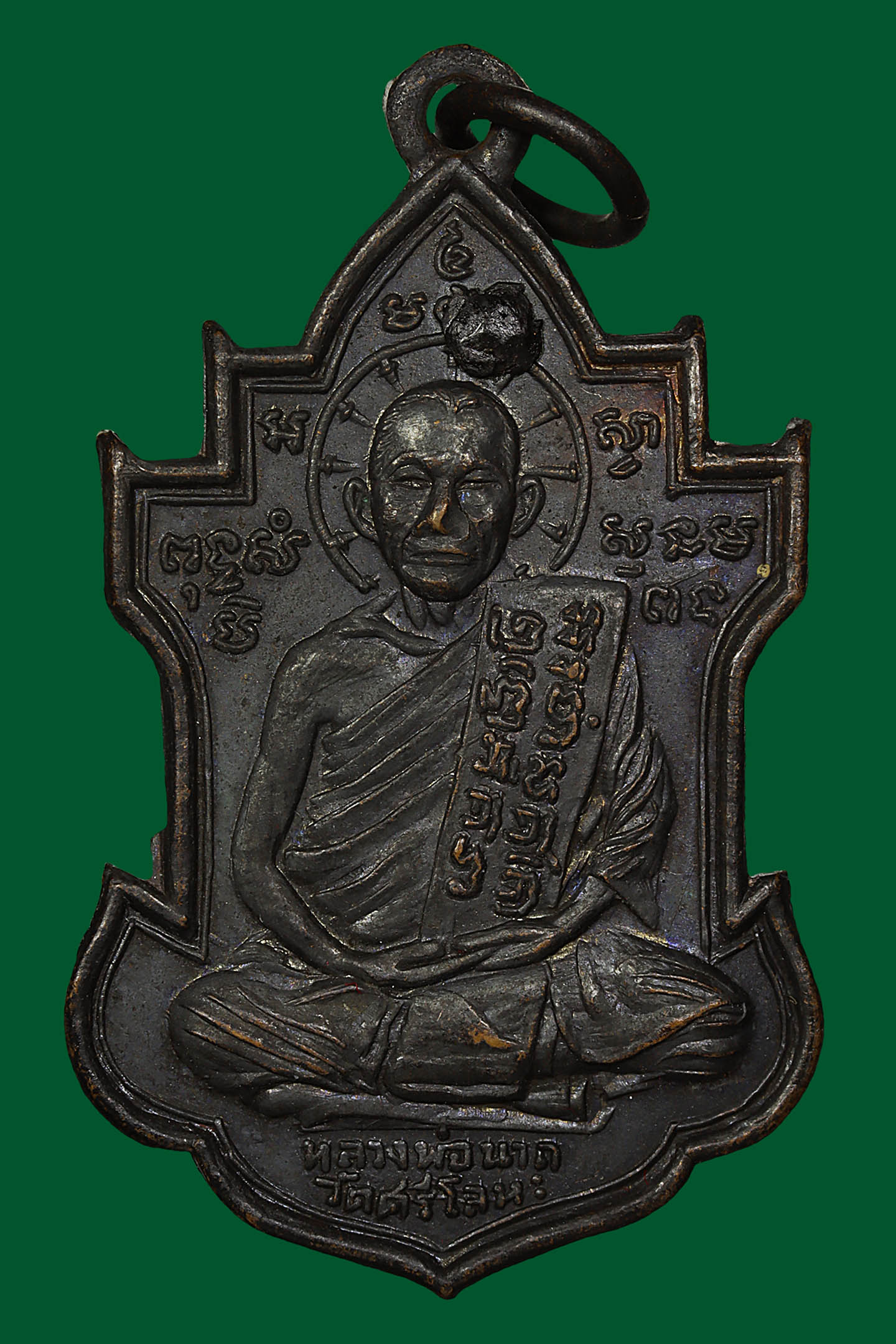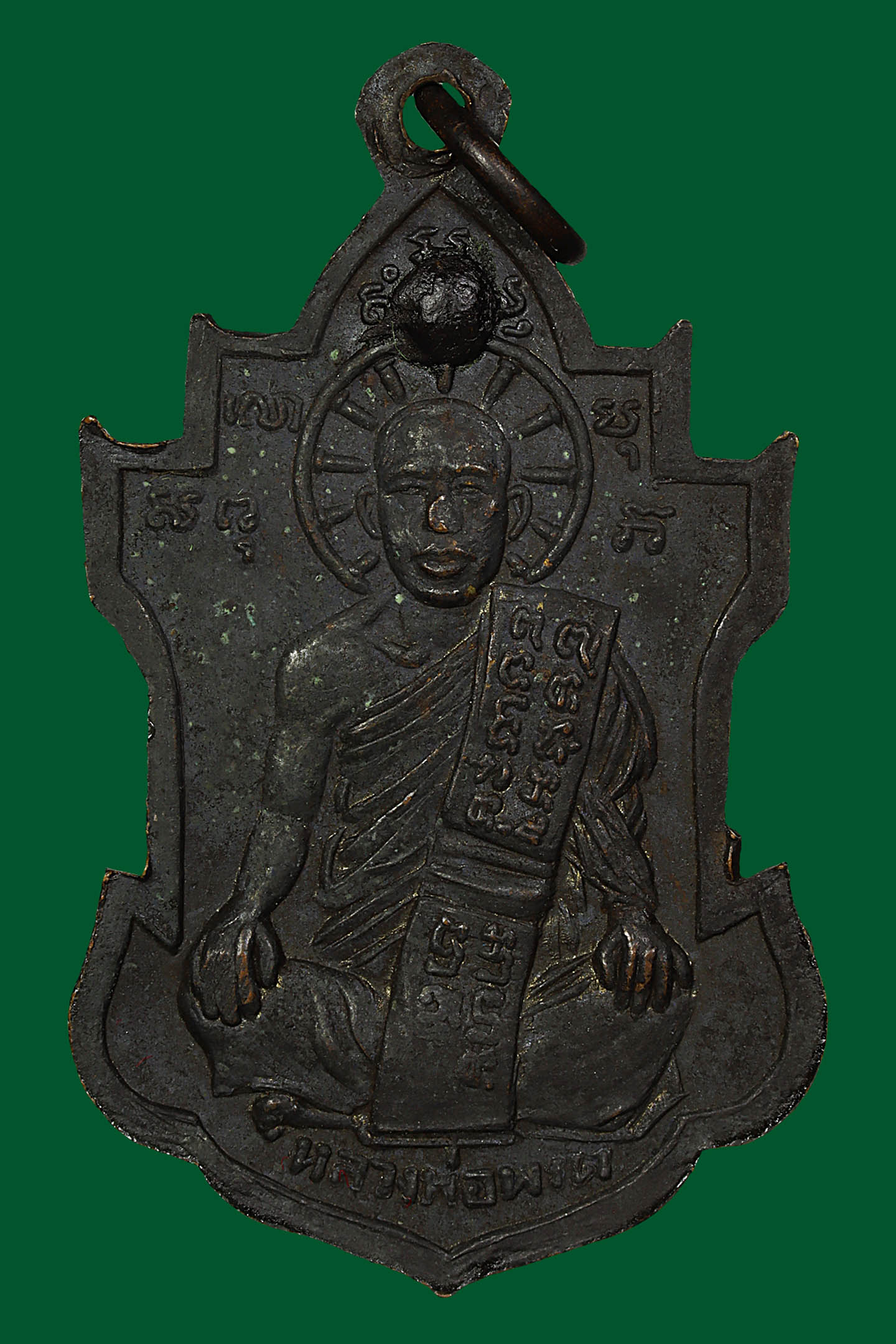 รูปหล่อปั้มหลวงปู่เขียว วัดหรงบล รุ่นแรก ปี 2513 เนื้อทองเหลืองรมดำ จังหวัดนครศรีธรรมราช (KA0738)