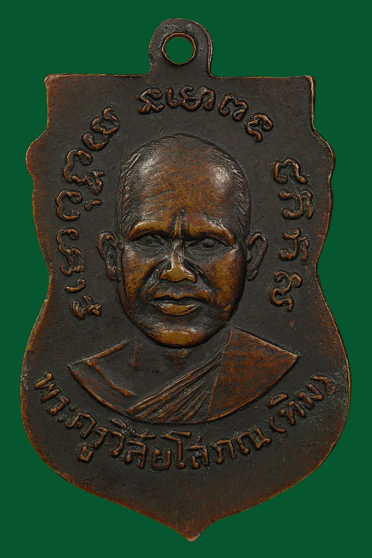 เหรียญหล่อหลวงพ่อแก้ว วัดพวงมาลัย รุ่นแรก พิมพ์เศียรแหลม ปี 2459 เนื้อโลหะผสม จังหวัดสมุทรสงคราม (KA0925)