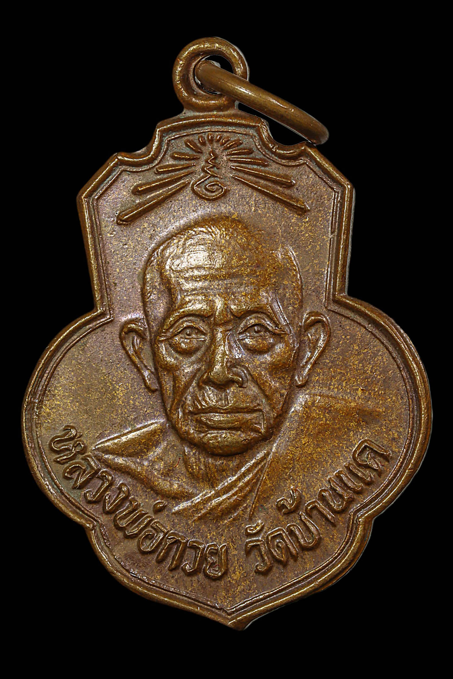 หลวงพ่อกวย วัดโฆสิตาราม รุ่นยกช่อฟ้าศาลาวัดเดิมบาง บล็อกไหล่จุด ปี 2515 เนื้อทองแดง จังหวัดชัยนาท (KA0905)