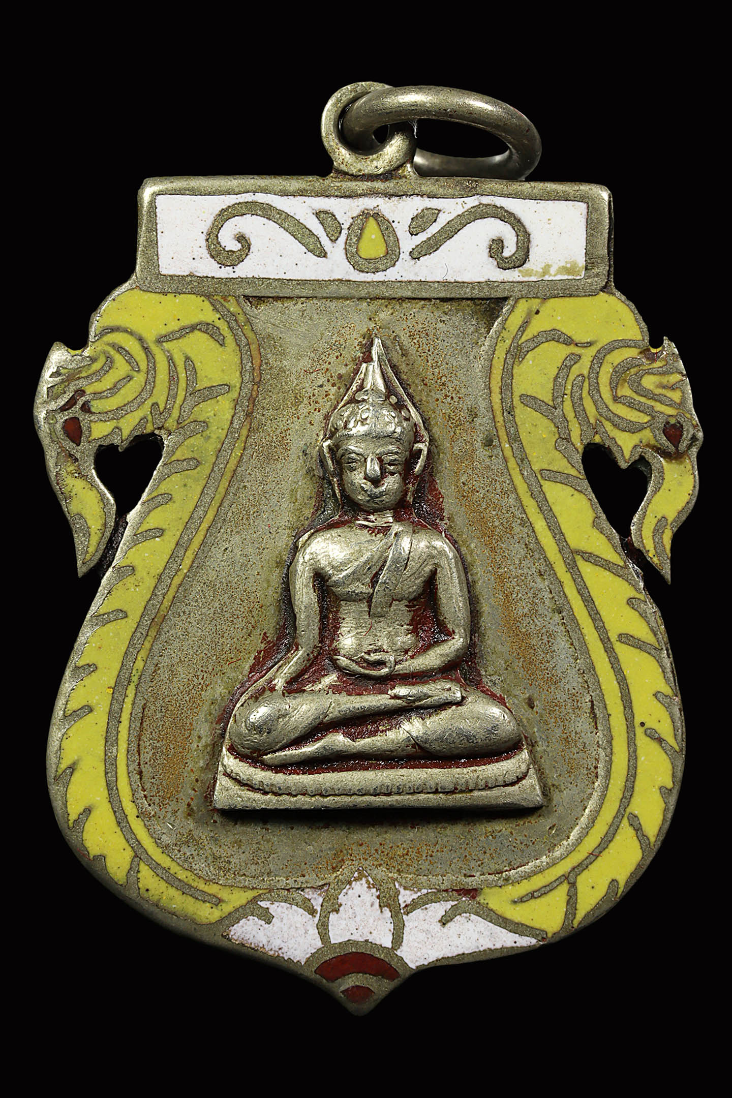 เหรียญเสมาฉลุหลวงพ่อวัดไร่ขิง ปี 2509 เนื้ออัลปาก้าลงยา จังหวัดนครปฐม (KA0767)