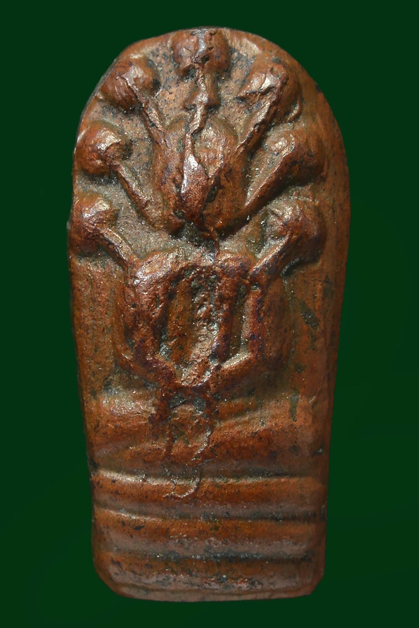พระนาคปรกใบมะขามพุฒาจารย์นวม วัดอนงคาราม รุ่นแรก พิมพ์ฐาน 3 ชั้น บล็อกแตก ปี 2463 เนื้อทองแดง จังหวัดกรุงเทพมหานคร (KA0751)