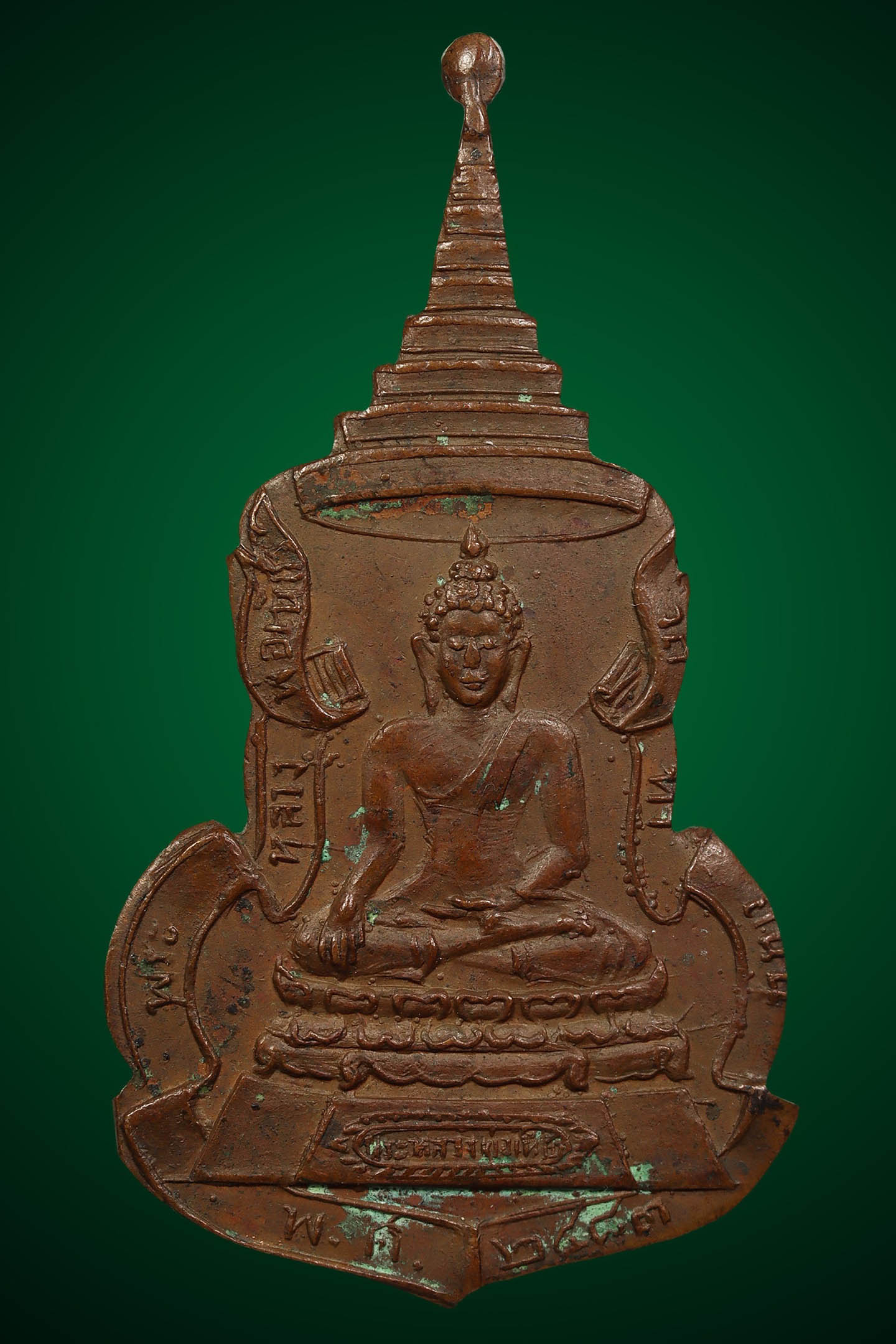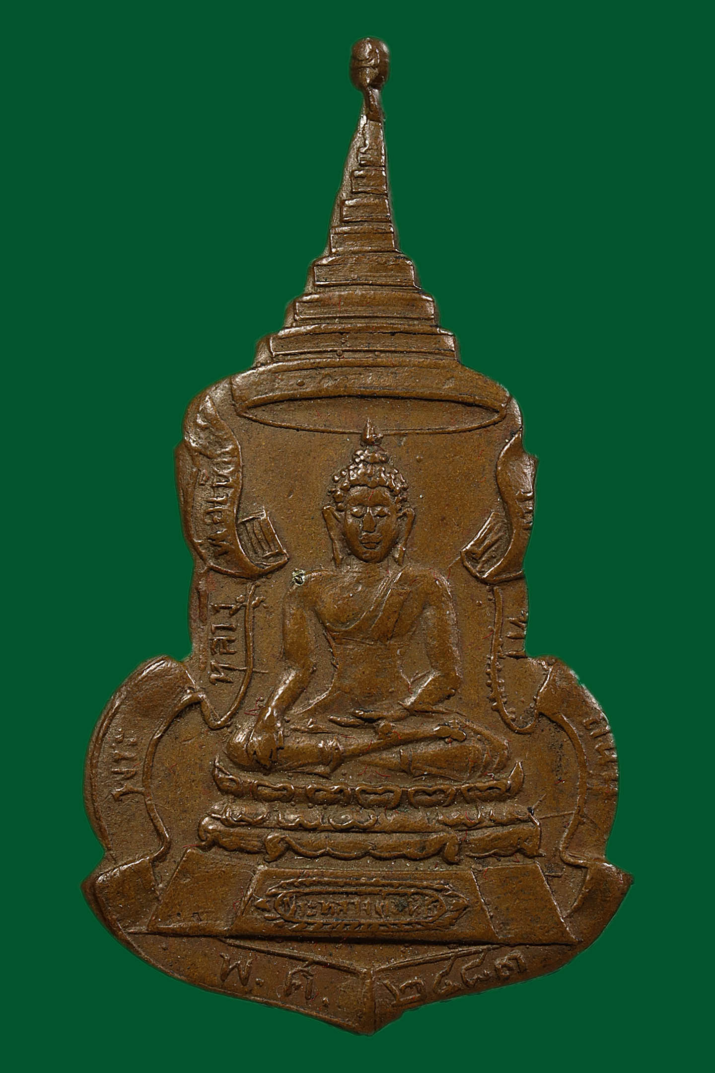เข็มกลัดหลวงพ่อเพชร วัดท่าถนน พิมพ์กนกใน ปี 2483 เนื้อทองแดง จังหวัดอุตรดิตถ์ (KA0545)