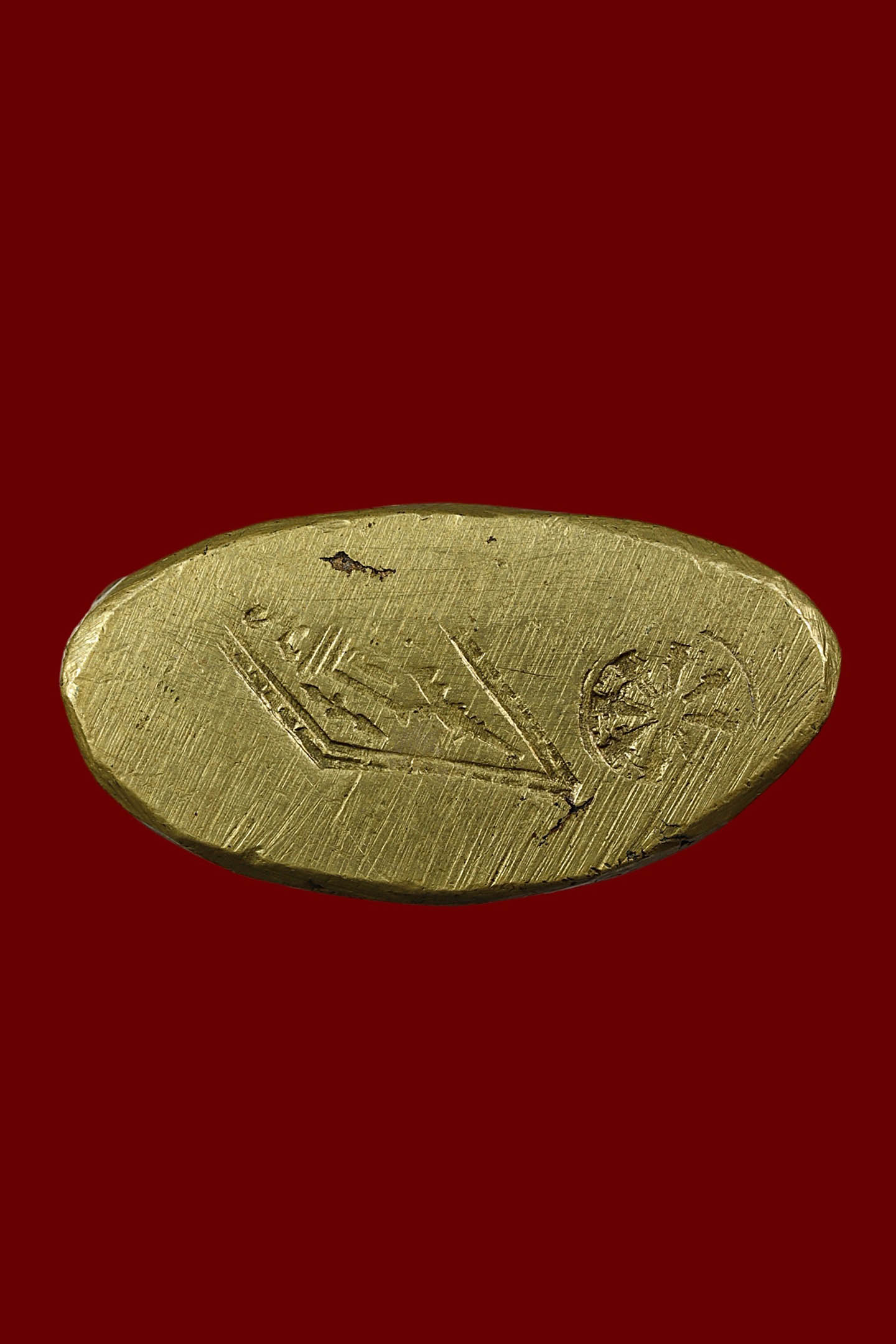 เม็ดแตงหลวงปู่ทวด วัดช้างให้ บล็อกหน้าผาก 3 เส้น ปีกกาหูขีด ปี 2508 เนื้ออัลปาก้าชุบนิเกิ้ล จังหวัดปัตตานี (KA0711)