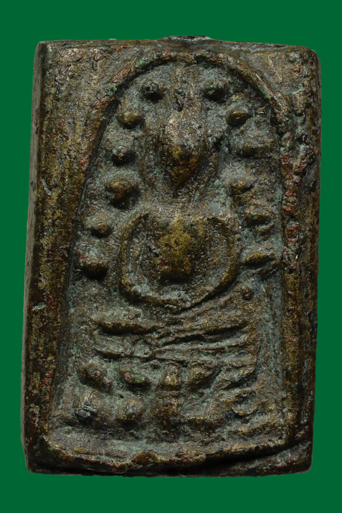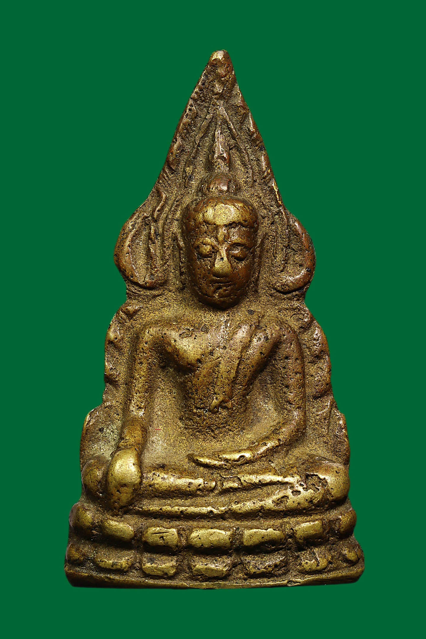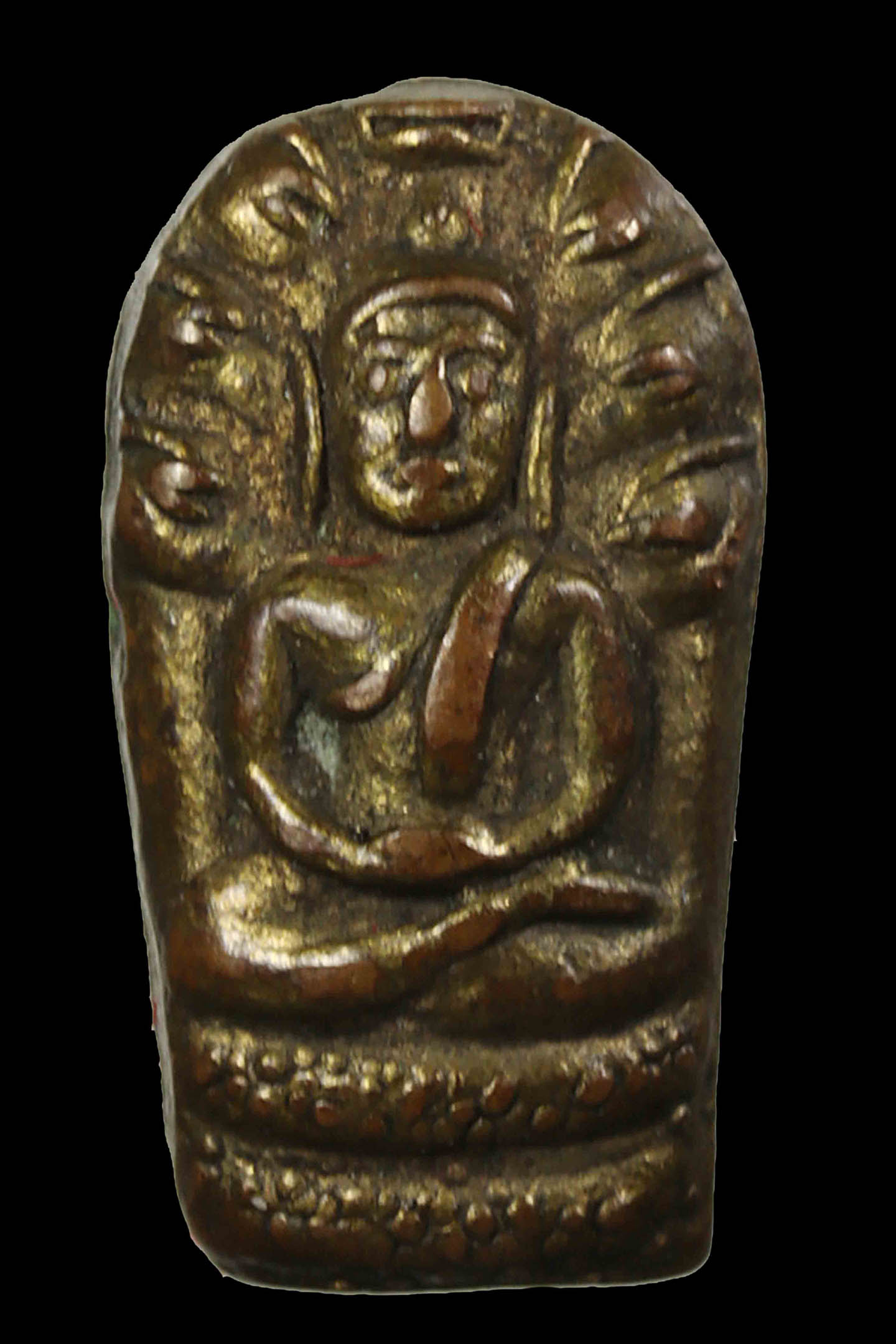 พระนาคปรกใบมะขามพุฒาจารย์นวม วัดอนงคาราม รุ่นแรก พิมพ์ฐาน 2 ชั้น ปี 2463 เนื้อทองแดงกะไหล่ทอง จังหวัดกรุงเทพมหานคร (KA0605)