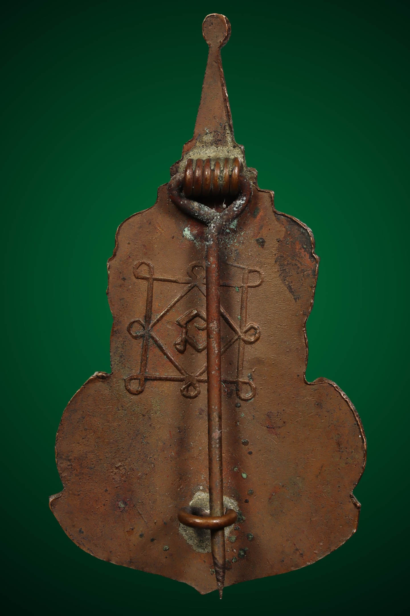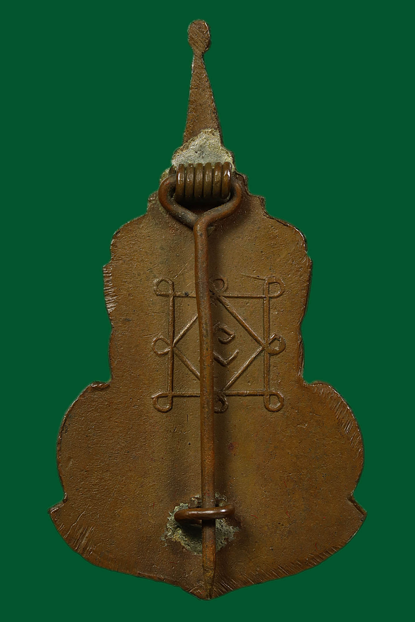 เข็มกลัดหลวงพ่อเพชร วัดท่าถนน พิมพ์กนกใน ปี 2483 เนื้อทองแดง จังหวัดอุตรดิตถ์ (KA0685)