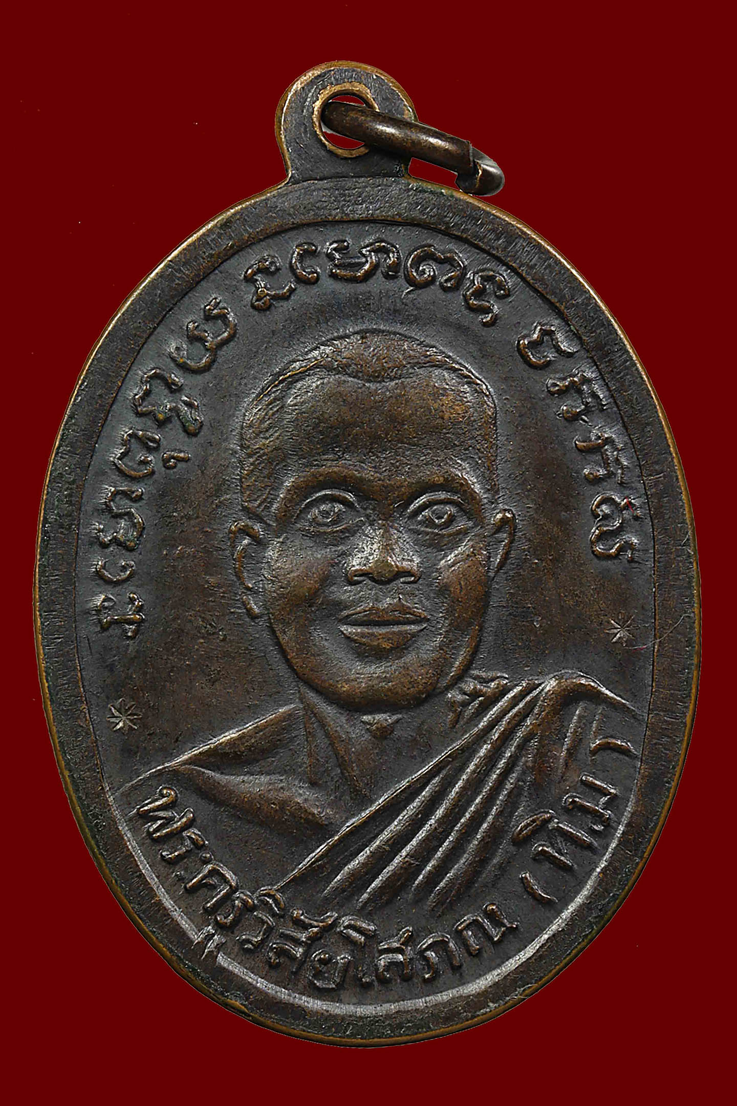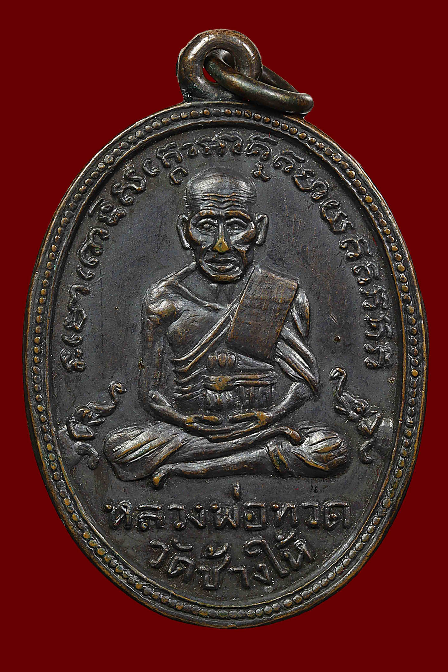 เหรียญหลวงพ่อแดง วัดเขาบันไดอิฐ รุ่นแรก ปี 2503 เนื้อทองแดงรมดำ จังหวัดเพชรบุรี