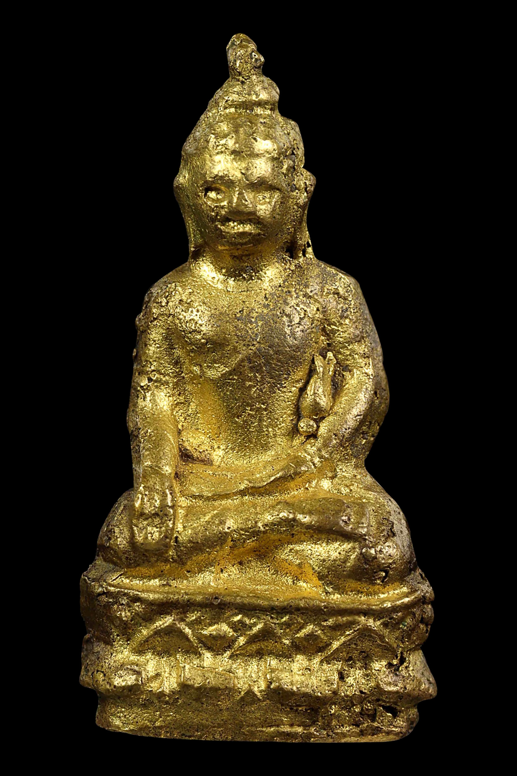 เหรียญหล่อพระพุทธ หลวงพ่อรุ่ง วัดท่ากระบือ พิมพ์สามเหลี่ยม ปี 2491 เนื้อโลหะผสม จังหวัดสมุทรสาคร