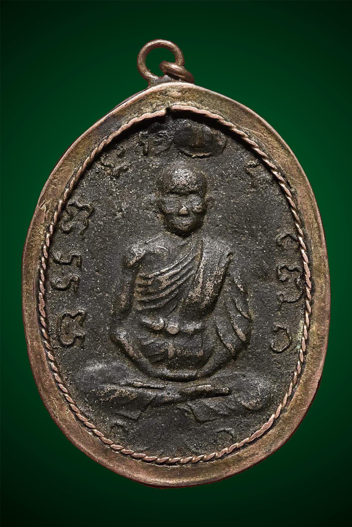 เหรียญหลวงพ่อแดง วัดเขาบันไดอิฐ รุ่นแรก ปี 2503 เนื้อทองแดงรมดำ จังหวัดเพชรบุรี