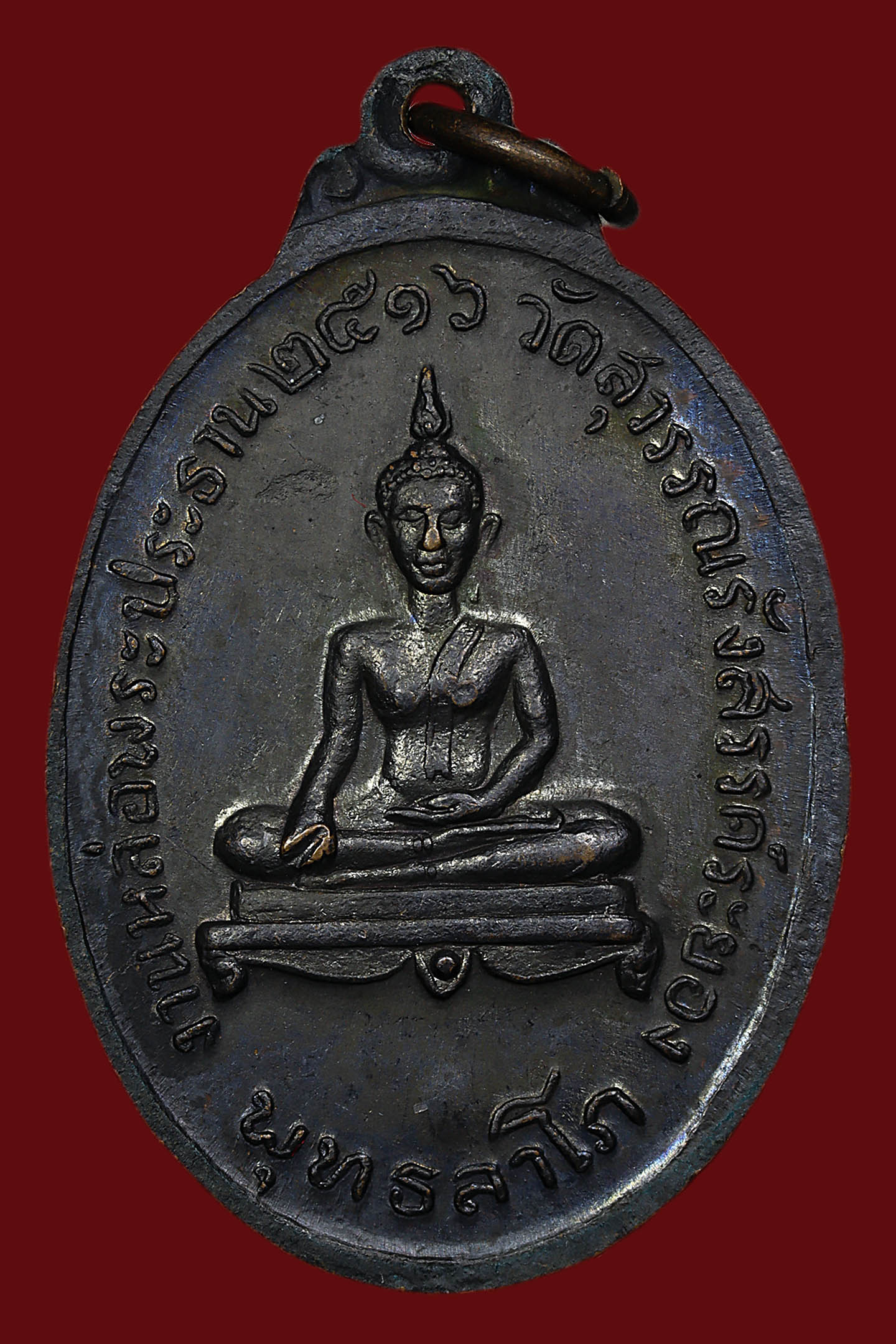 เหรียญหลวงพ่อแดง วัดเขาบันไดอิฐ รุ่นแรก ปี 2503 เนื้อทองแดงรมดำ จังหวัดเพชรบุรี