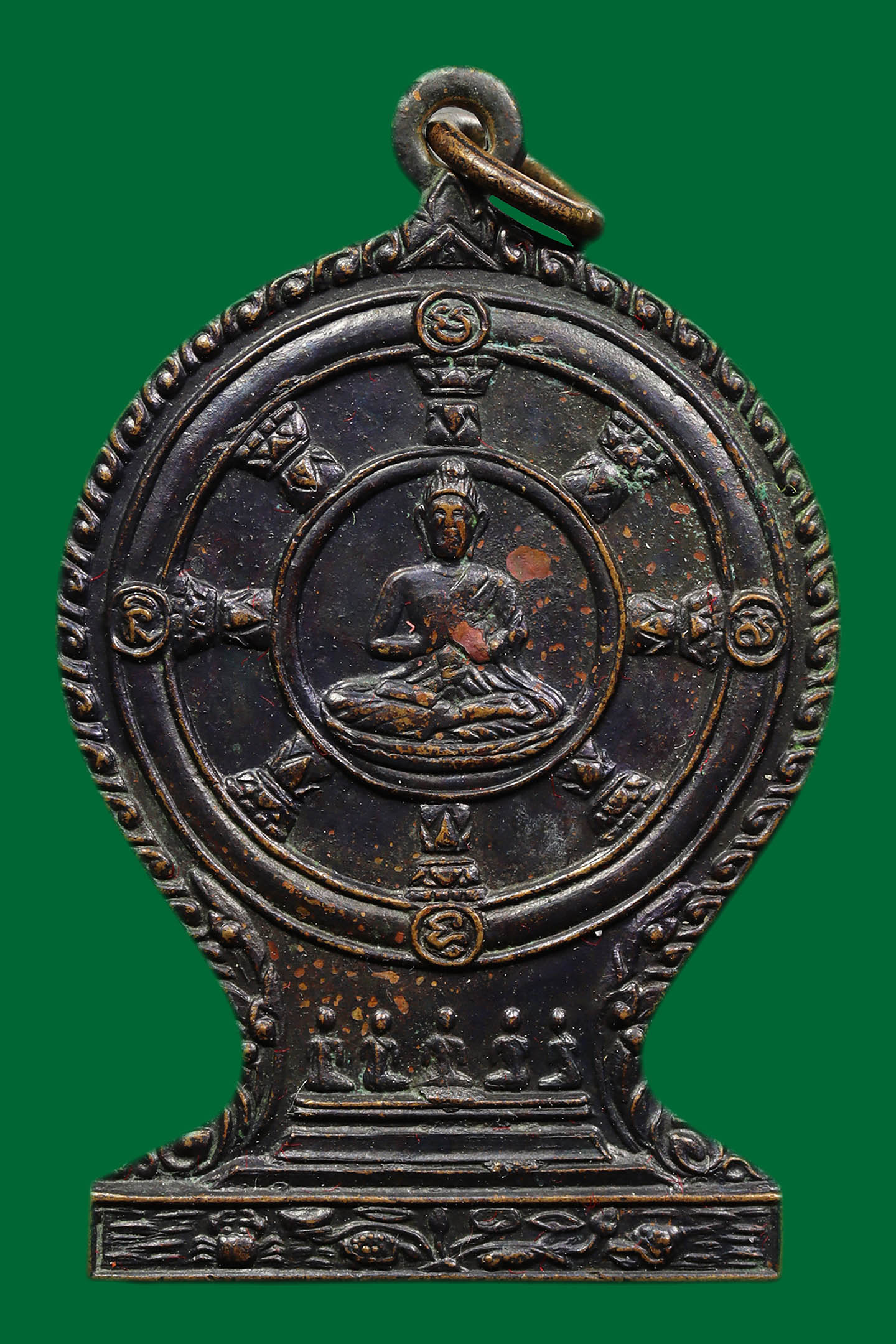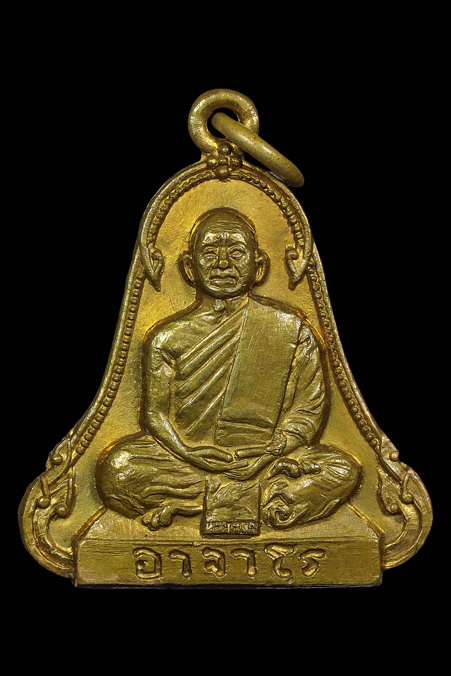 เหรียญหล่อหลวงพ่อแก้ว วัดพวงมาลัย รุ่นแรก พิมพ์เศียรโล้น ปี 2459 เนื้อโลหะผสม จังหวัดสมุทรสงคราม (KA1409)