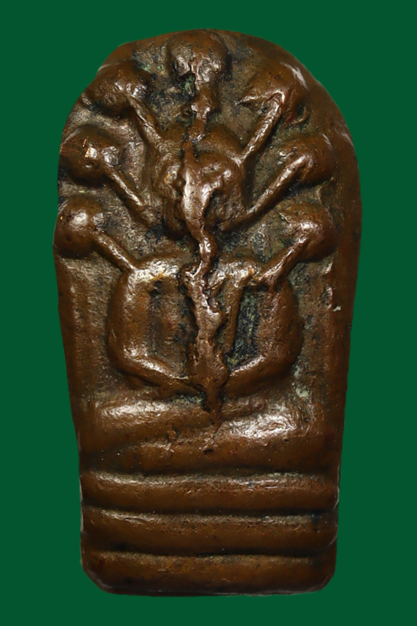 พระนาคปรกใบมะขามพุฒาจารย์นวม วัดอนงคาราม รุ่นแรก พิมพ์ฐาน 3 ชั้น บล็อกแตก ปี 2463 เนื้อทองแดง จังหวัดกรุงเทพมหานคร (KA1376)