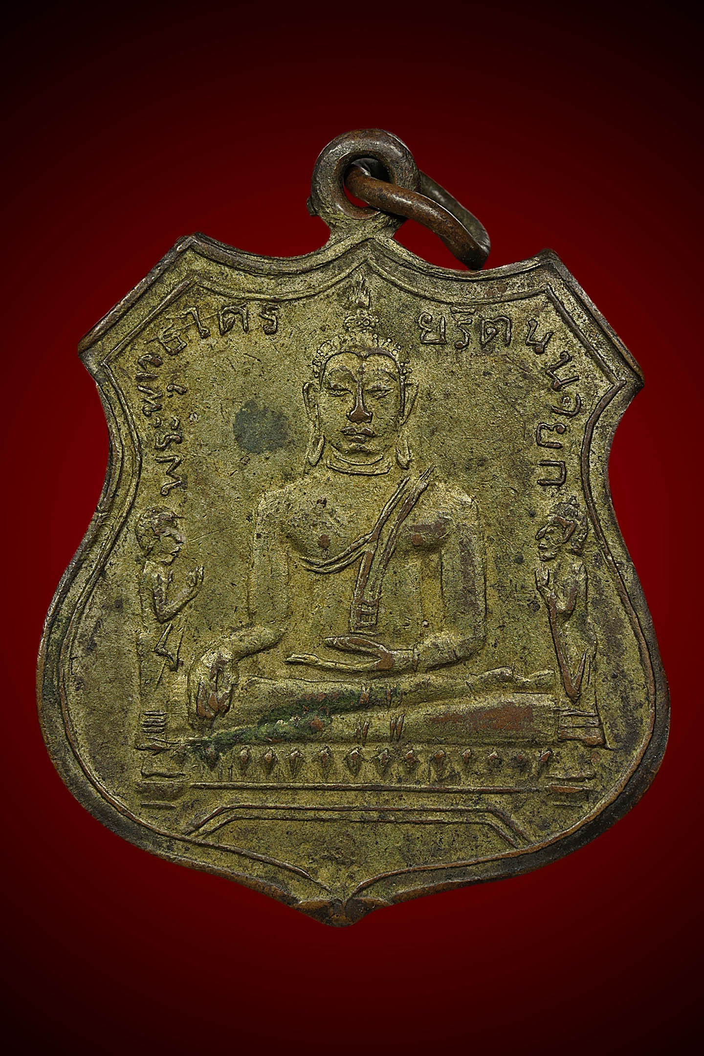 พระพุทธชินราชหลวงพ่อเงิน วัดดอนยายหอม รุ่นแรก พิมพ์เข่าลอย ปี 2487 เนื้อโลหะผสม จังหวัดนครปฐม (KA1395)