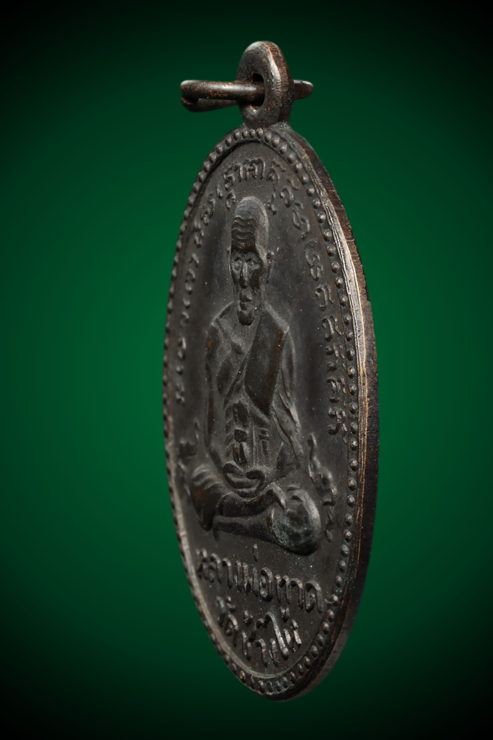เหรียญหลวงปู่ทวด รุ่น 2 บล็อกไม้มลาย ปี 2502 เนื้อทองแดงรมดำ จังหวัดปัตตานี